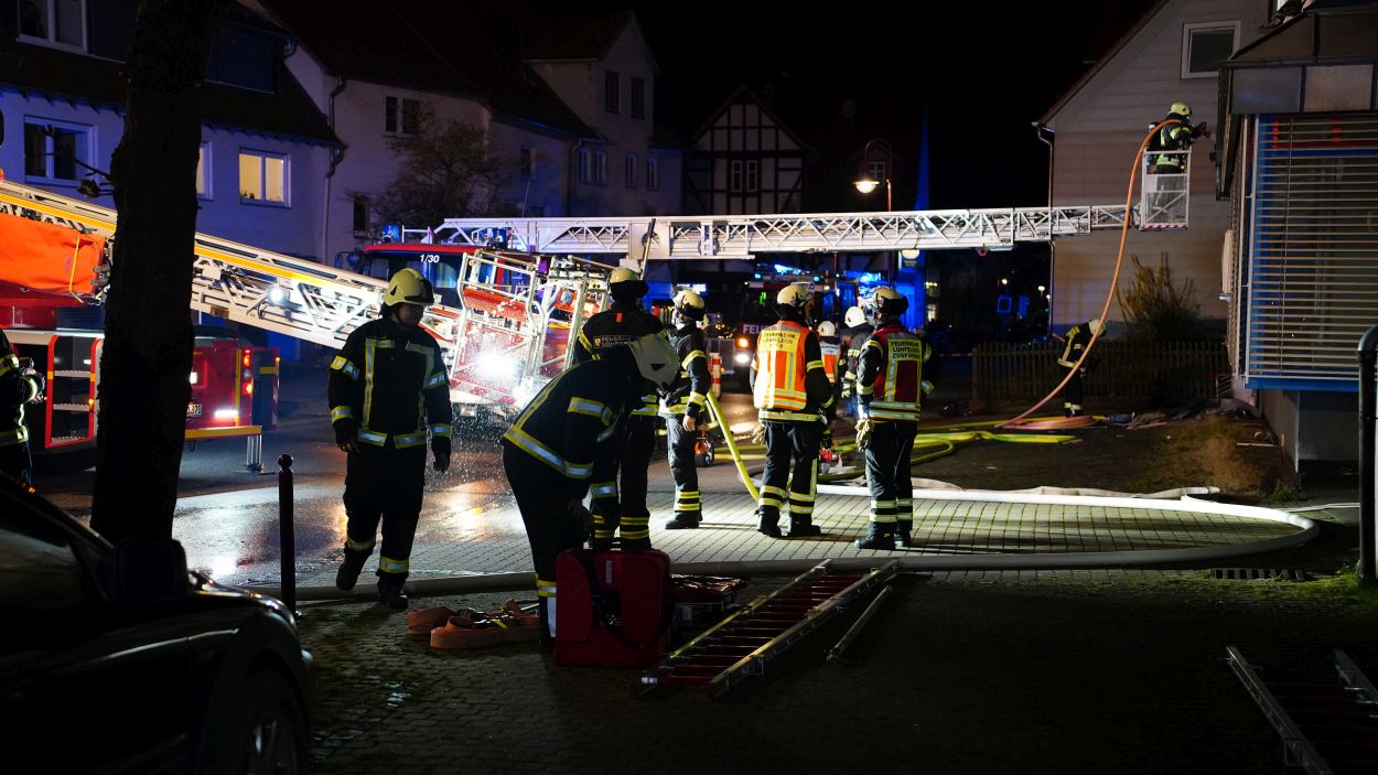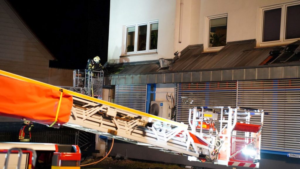 Kaufungen – Zu einem Brand kam es am Dienstagabend in der Kaufunger Innenstadt. Als die ersten Einsatzkräfte gegen 20.45 Uhr in der Leipziger Straße eintrafen, drang Qualm aus einem Dachvorsprung. Da es sich um ein Wohn- und Geschäftshaus handelt, wurde das Gebäude evakuiert. Mithilfe der Drehleiter wurde das Dach geöffnet. Zusätzlich wurde die Drehleiter aus Lohfelden alarmiert, um das Dach an mehreren Stellen zu öffnen und abzulöschen. Gegen 22 Uhr waren die Löscharbeiten beendet und die rund 40 Einsatzkräfte konnten die Einsatzstelle zurückbauen und einrücken. Die Wohnungen über dem Geschäft waren nicht betroffen, somit konnten die Bewohner noch in der Nacht wieder zurück in ihre Wohnungen. Die Polizei geht derzeit von einem technischen Defekt in der Stromverteilung aus, was dann zu einem Schmorbrand führte. Bereits kurz vor Praxisschluss kam es zu einem Stromausfall im Geschäft. Wenige Stunden später bemerkte dann ein Fußgänger die Rauchentwicklung im Vordach.