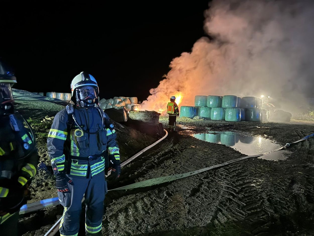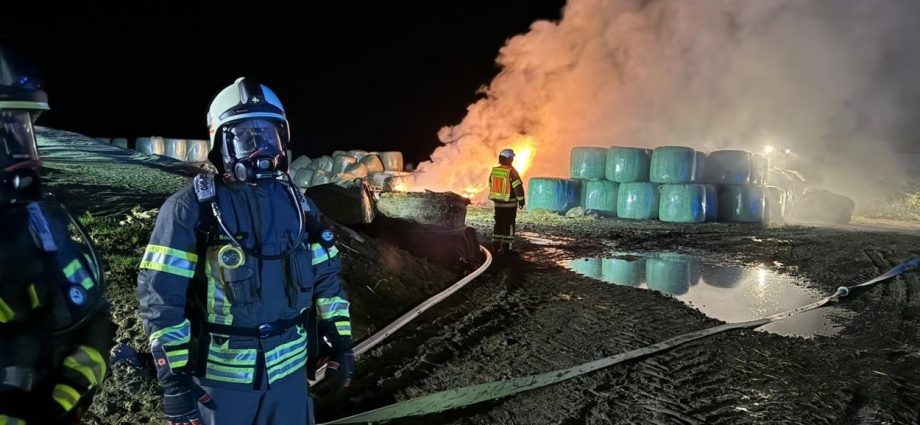 Niestetal – Zum Brand von Strohballen auf einem landwirtschaftlichen Hof in der Verlängerung des Obelwegs in Niestetal-Sandershausen wurden die Feuerwehr und die Polizei am Sonntagabend gegen 21:40 Uhr gerufen. Bereits auf der Anfahrt war ein Feuerschein und starke Rauchentwicklung sichtbar. Ein Übergreifen des Brandes auf einen nahegelegenen Kuhstall konnten die Einsatzkräfte der Feuerwehr verhindern. Bei den Löscharbeiten wurde festgestellt, dass rund 30 Strohballen gebrannt hatten. Nachdem die Brandermittler der Polizei die Brandstelle am Montag begutachtet hatten, wurden rund 100 betroffene Rundballen festgestellt. Bei den Löscharbeiten wurde eine Einsatzkraft durch Rauchgase leicht verletzt. Nach bisherigem Stand der Ermittlungen geht die Polizei von einer vorsätzlichen Brandstiftung aus. Hinweise auf das Motiv des oder der unbekannten Täter liegen bislang noch nicht vor. Das Feuer war mutmaßlich im Zeitraum zwischen 19:00 Uhr und der Mitteilungszeit gelegt worden. Neben der Feuerwehr Niestetal waren auch die Feuerwehren aus Nieste, Lohfelden, Kaufungen, Helsa, Baunatal, Freiwillige Feuerwehr Kassel und die Berufsfeuerwehr Kassel mit 85 Einsatzkräften.