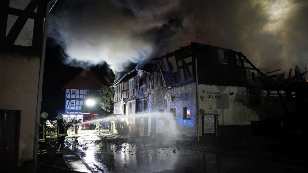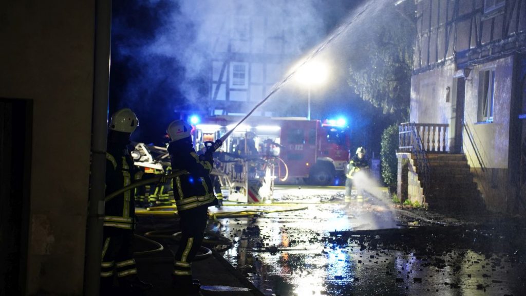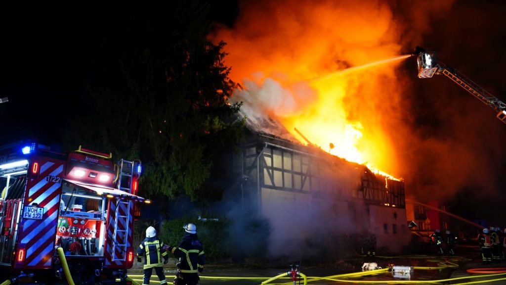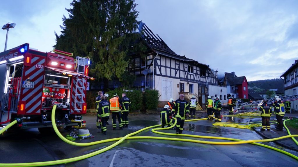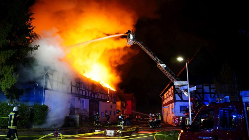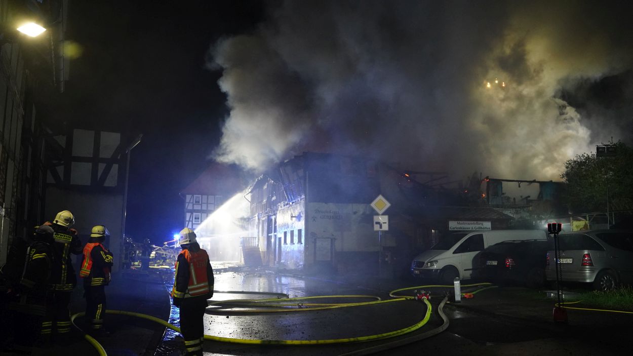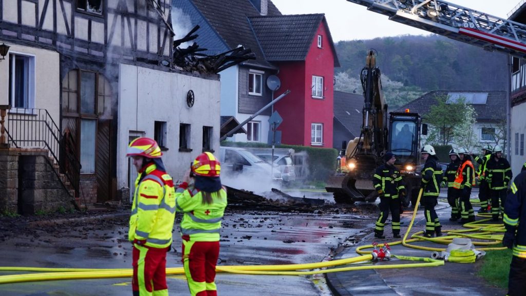 Wolfhagen – Zu einem Großbrand kam es in der Nacht auf Mittwoch im Wolfhager Ortsteil Nothfelden. Als die ersten Einsatzkräfte um kurz nach 3 Uhr eintrafen, stand das Fachwerkhaus mit einer Drechslerei im Vollbrand. Der starke Funkenflug sorgte am Anfang für eine Gefahr für umliegende Gebäude. Zur Unterstützung wurde die Feuerwehr Bad Arolsen mit einer zweiten Drehleiter dazu alarmiert. Zusätzlich wurden mehrere Riegelstellungen aufgebaut, um ein Ausbreiten der Flammen zu verhindern. Durch die massive Brandausbreitung war ein Innenangriff im Gebäude nicht mehr möglich. Ein Übergreifen der Flammen auf weitere Gebäude konnte trotz der engen Bebauung verhindert werden. Bei den Nachlöscharbeiten kam auch ein Bagger zu Hilfe, um das Gebäude nach und nach abzutragen. So konnten die Feuerwehr auch die Glutnester im Gebäude bekämpfen. Rund 140 Einsatzkräfte sind im Einsatz. Laut Einsatzleiter Sebastian Swoboda werden die Nachlöscharbeiten noch den ganzen Tag andauern. Verletzt wurde niemand. Wie es zum Brand kommen konnte, ist derzeit noch unklar. Es wird nach berichtet.