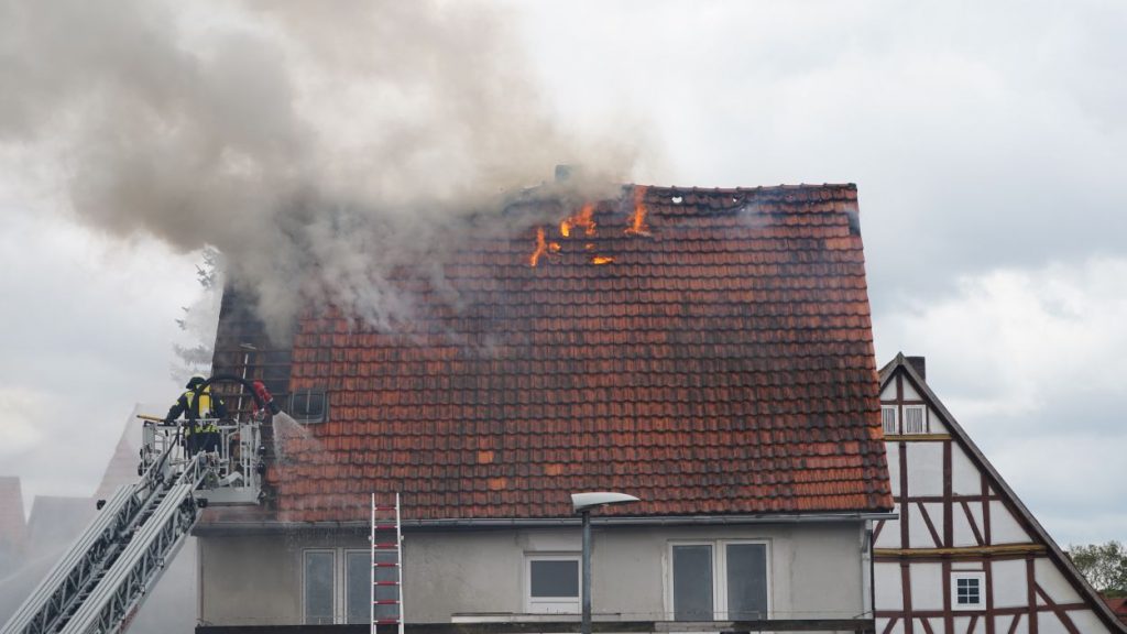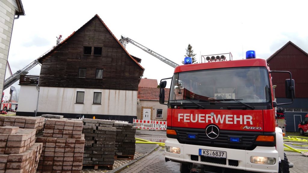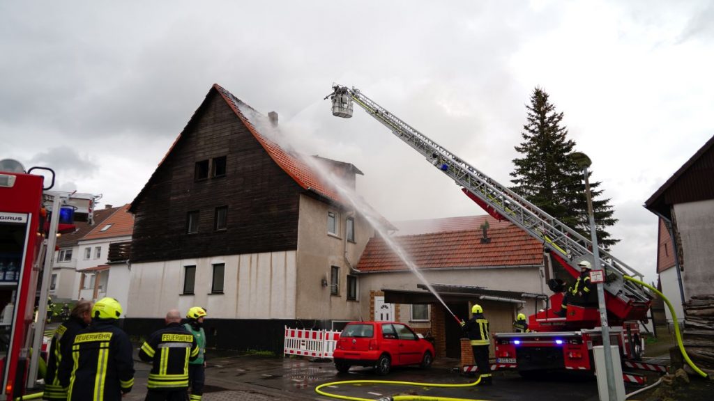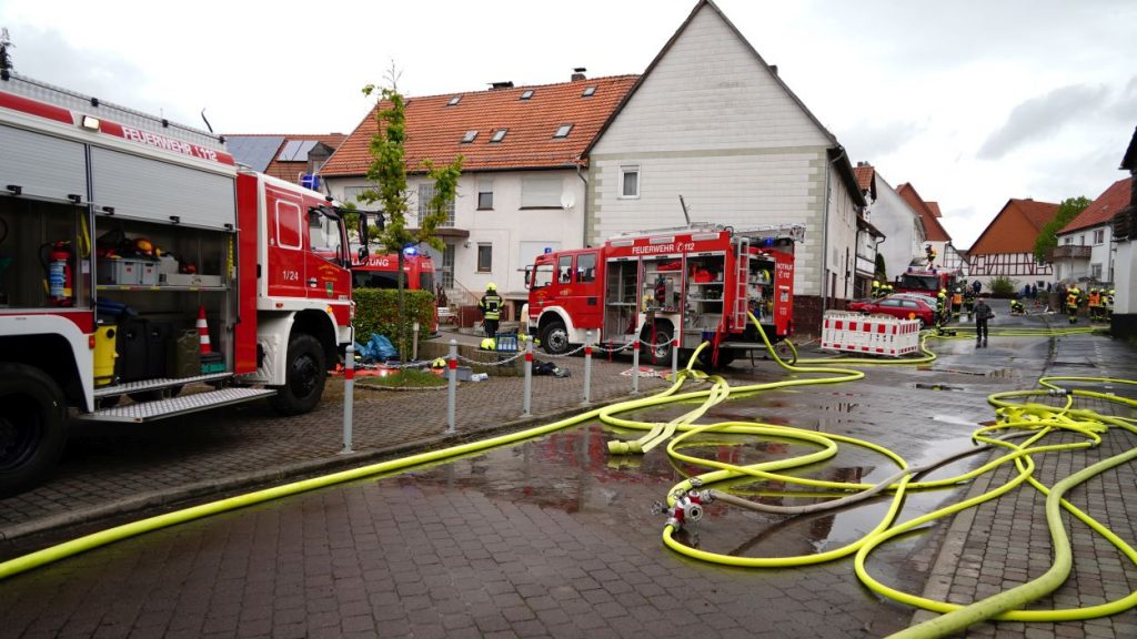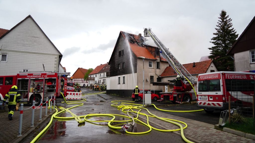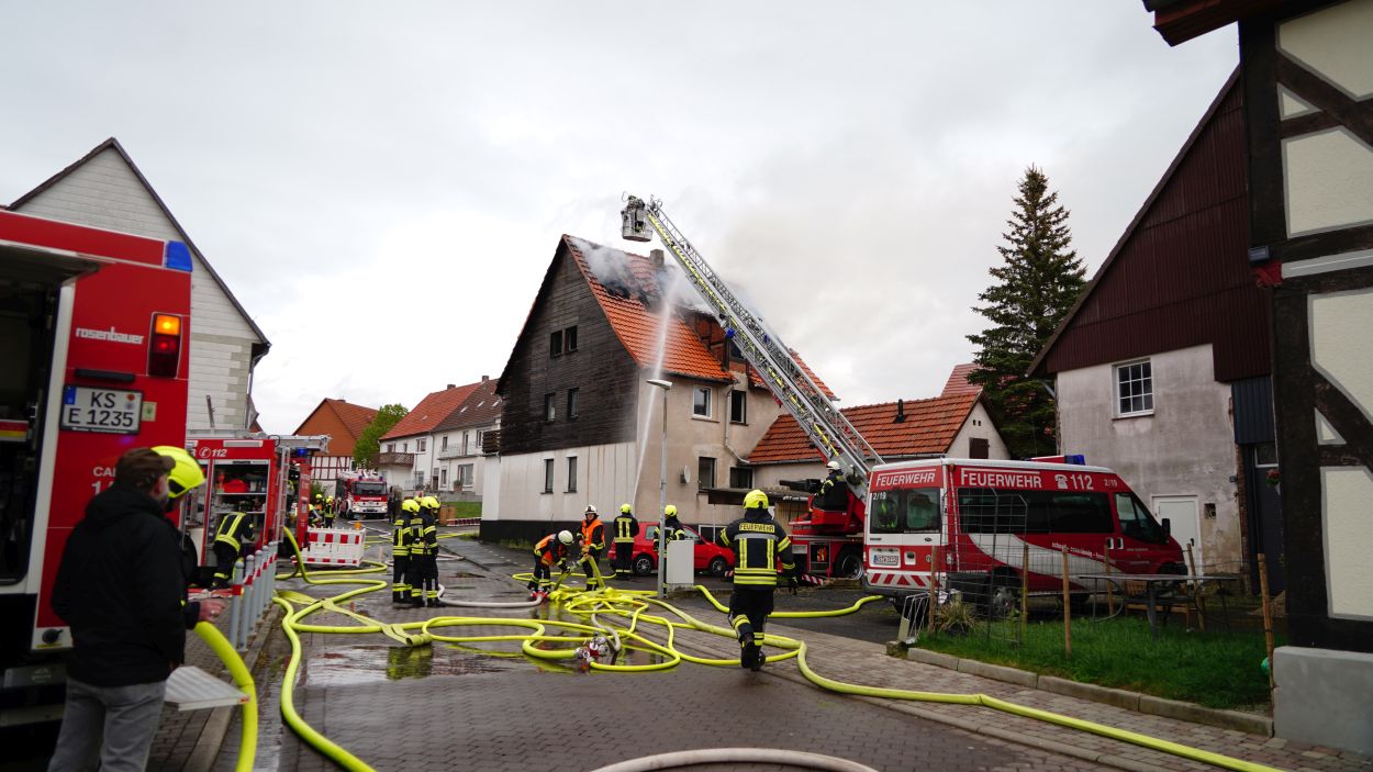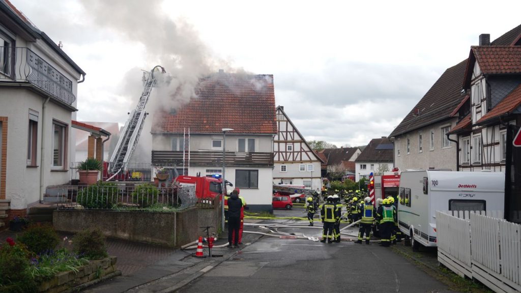Calden – Am Donnerstag kam es in der Ortslage von Calden zu einem Dachstuhlbrand. Als die ersten Einsatzkräfte gegen 11 Uhr eintrafen, war bereits eine starke Rauchentwicklung erkennbar. Das Wohnhaus ist derzeit unbewohnt und somit waren zur Brandzeit keine Personen mehr im Gebäude. Aus Sicherheitsgründen musste die Feuerwehr den Innenangriff abbrechen, da bereits die ersten Deckenteile herabstürzten. Um an die Glutnester im Dach besser heranzukommen, wurde die Drehleiter aus Immenhausen und Hofgeismar dazu alarmiert. Mit ihrer Hilfe konnte das Dach von beiden Seiten geöffnet werden. Auch eine Drohne mit Wärmebildkamera wurde eingesetzt, um die Drehleiterbesatzung die Glutnester besser zeigen zu können. Rund 70 Einsatzkräfte waren mehrere Stunden im Einsatz. Die Brandursache ist noch unklar, verletzt wurde niemand.