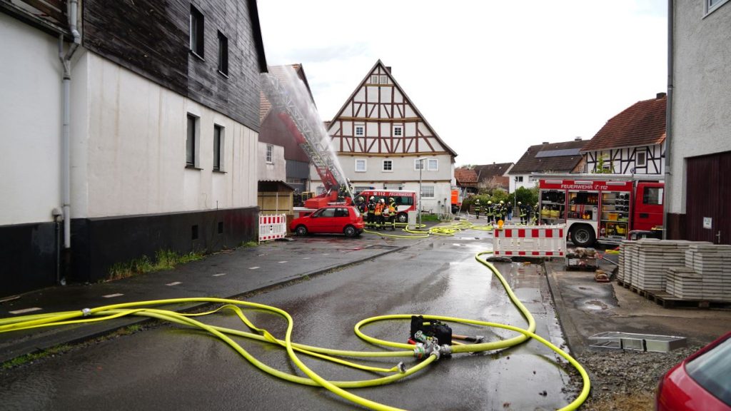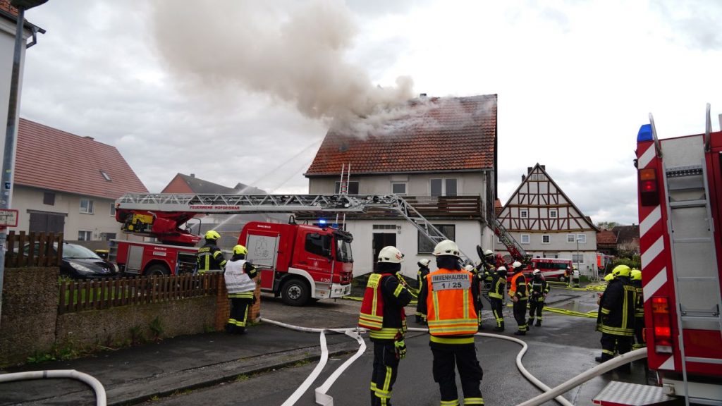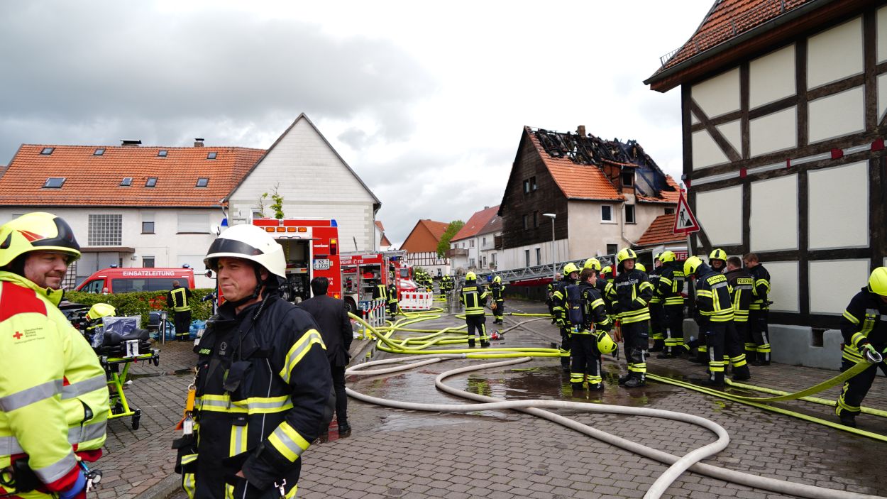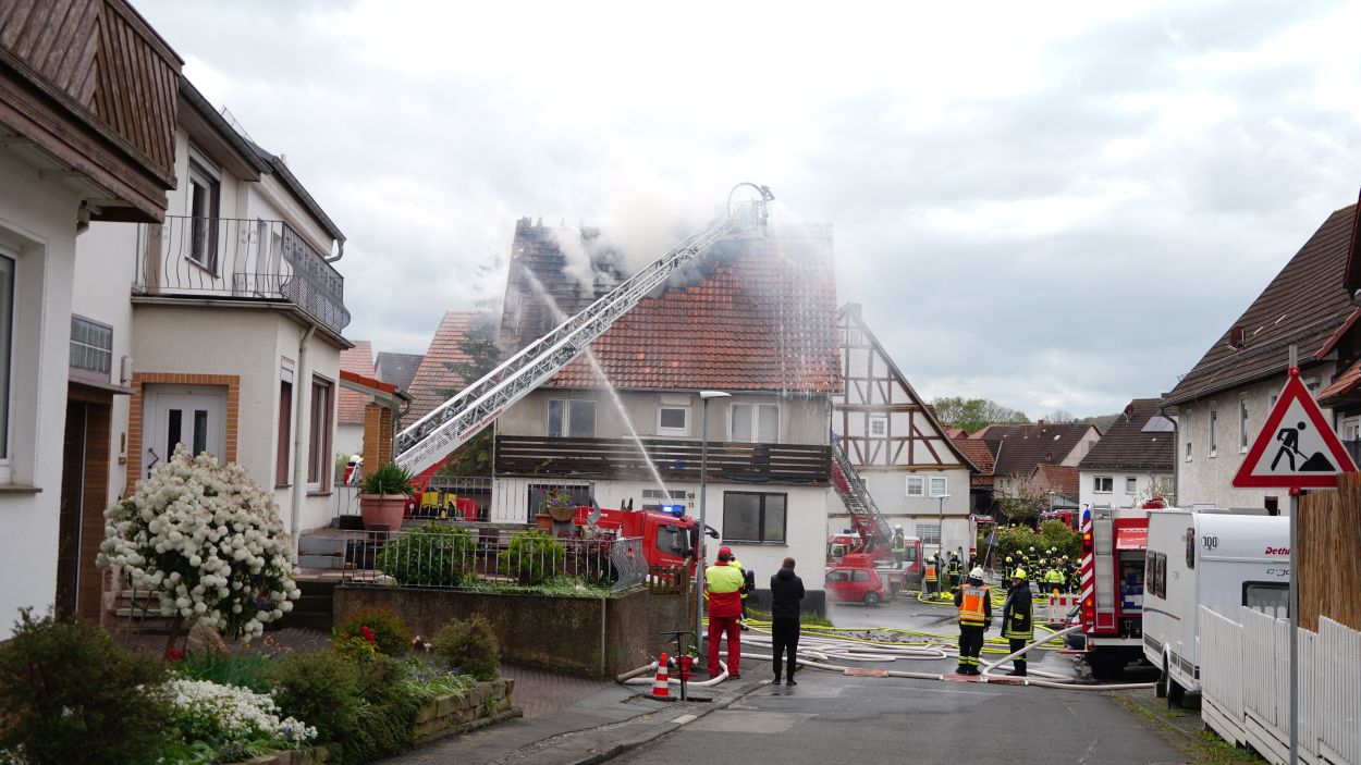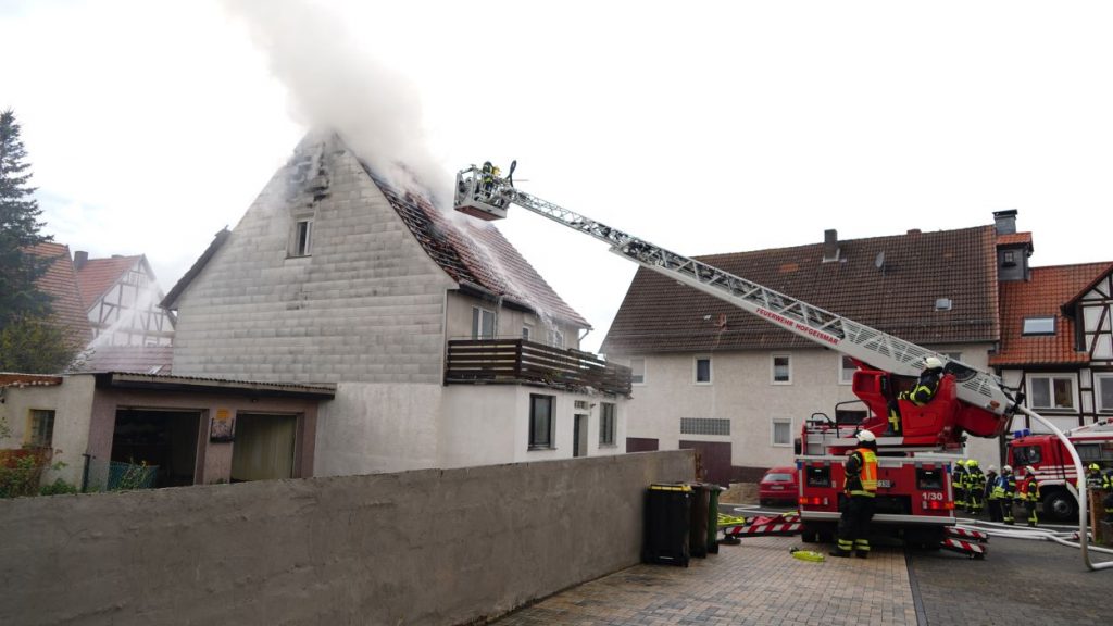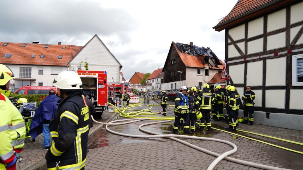 Calden – Am Donnerstag kam es in der Ortslage von Calden zu einem Dachstuhlbrand. Als die ersten Einsatzkräfte gegen 11 Uhr eintrafen, war bereits eine starke Rauchentwicklung erkennbar. Das Wohnhaus ist derzeit unbewohnt und somit waren zur Brandzeit keine Personen mehr im Gebäude. Aus Sicherheitsgründen musste die Feuerwehr den Innenangriff abbrechen, da bereits die ersten Deckenteile herabstürzten. Um an die Glutnester im Dach besser heranzukommen, wurde die Drehleiter aus Immenhausen und Hofgeismar dazu alarmiert. Mit ihrer Hilfe konnte das Dach von beiden Seiten geöffnet werden. Auch eine Drohne mit Wärmebildkamera wurde eingesetzt, um die Drehleiterbesatzung die Glutnester besser zeigen zu können. Rund 70 Einsatzkräfte waren mehrere Stunden im Einsatz. Die Brandursache ist noch unklar, verletzt wurde niemand.