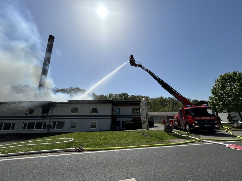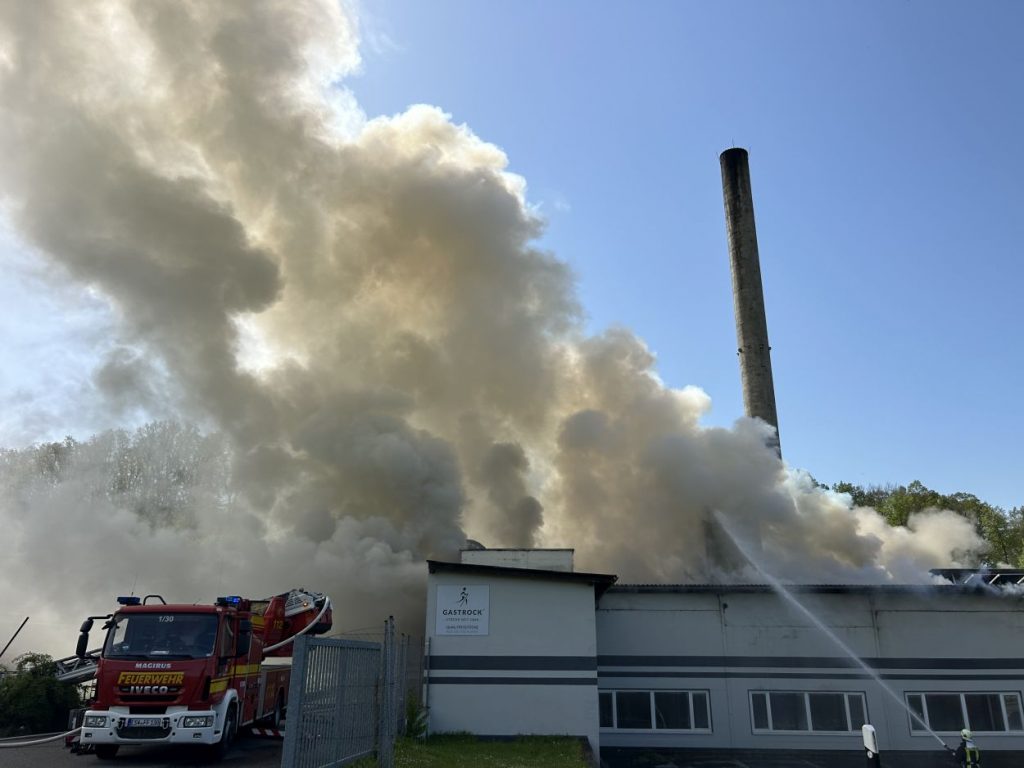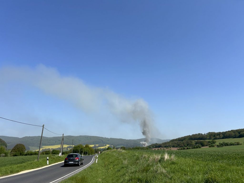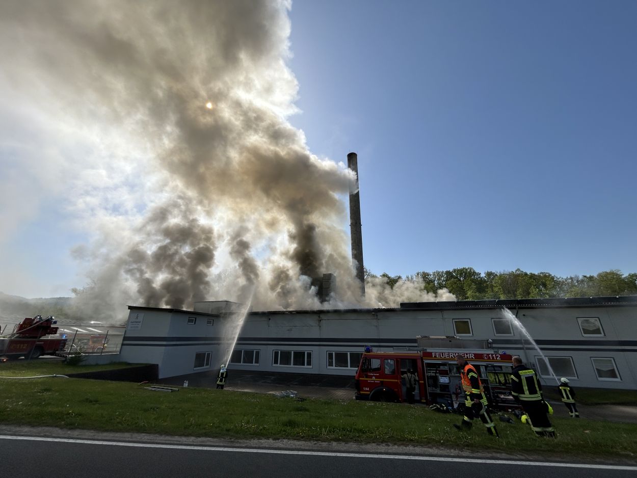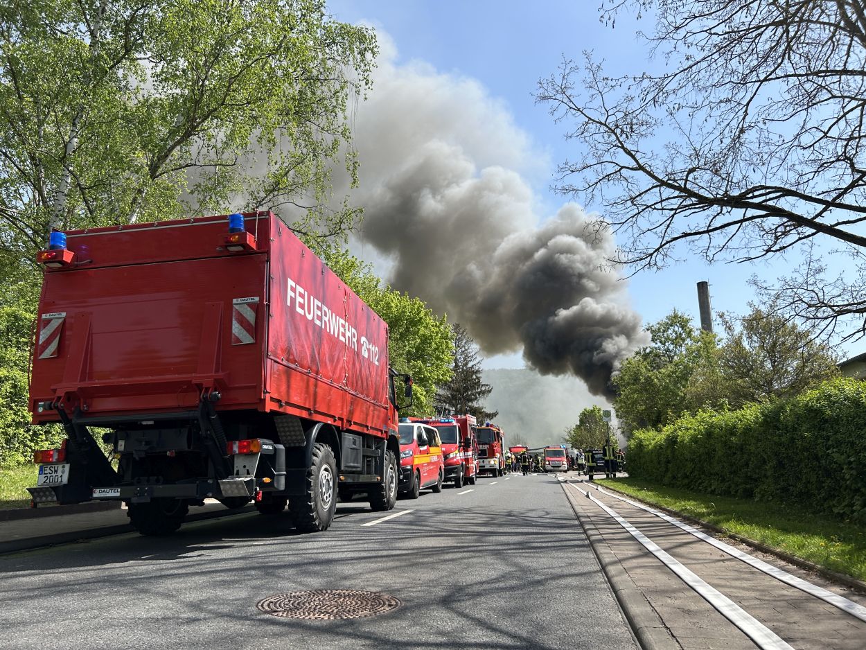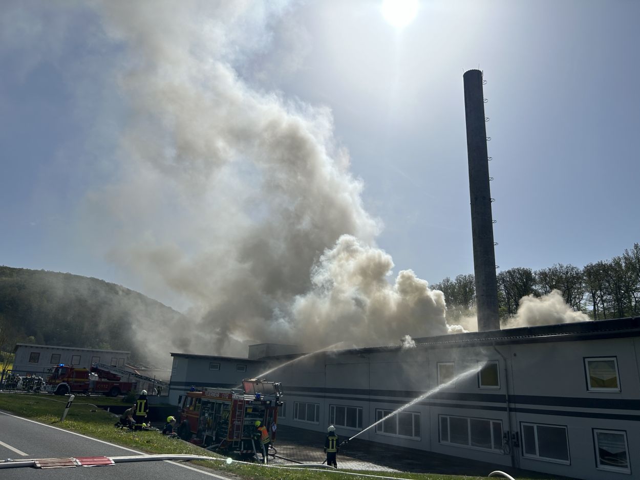 Wahlhausen – Am Dienstagmorgen gegen 08:30 Uhr brach in einem Spänebunker Betrieb in Wahlhausen an der thüringischen/hessischen Landesgrenze ein Feuer aus. Beim Eintreffen der ersten Einsatzkräfte war schon eine starke Verrauchung sowie Flammen sichtbar. Die Flammen griffen auf den Dachstuhl des Gebäudes über. Im ersten Verlauf wurde eine Wasserversorgung sowie eine Riegelstellung am Gebäude aufgebaut, weitere Kräfte wurden mittels Einsatzstichworterhöhung nachalarmiert. Probleme bei der Brandbekämpfung gab es, da das Dach nicht betreten werden konnte, da es sich um ein umgebautes Heizhaus handelt. Der Innenangriff der zum Anfang vorgenommen wurde, musste im weiteren Einsatzverlauf aus Sicherheitsgründen abgebrochen werden, da die Decke instabil wurde. Im Verlauf des Einsatzes wurde ein Fachberater des THW beauftragt, die Struktur des Gebäudes zu kontrollieren, um weitere Vorgehensweisen festlegen zu können. Im weiteren Verlauf wird geschaut, wie der Brand komplett erstickt werden kann, dafür kommt im Nachgang der Löschschaum zum Einsatz. Der Gesamtschaden beläuft sich laut Polizei auf mehrere Hunderttausend Euro. Insgesamt waren von Feuerwehr, THW, Roten Kreuz, Fachbehörden, untere Wasserbehörde und Energie Versorger mit rund 200 Kräften vor Ort. Rund 50 Fahrzeuge befanden sich bei dem Großbrand. Zum aktuellen Stand ist noch nicht absehbar, wie lange der Einsatz noch dauert.