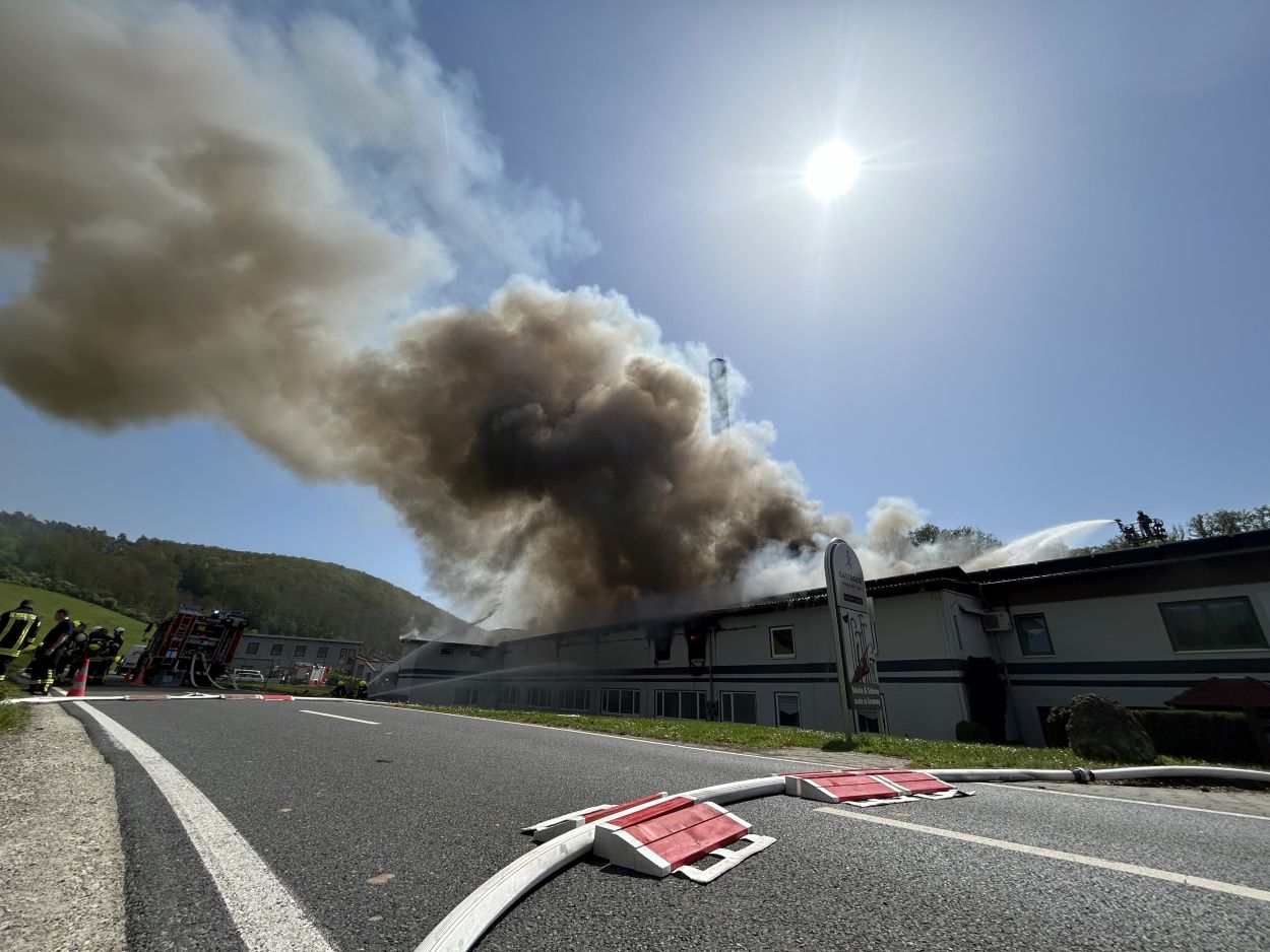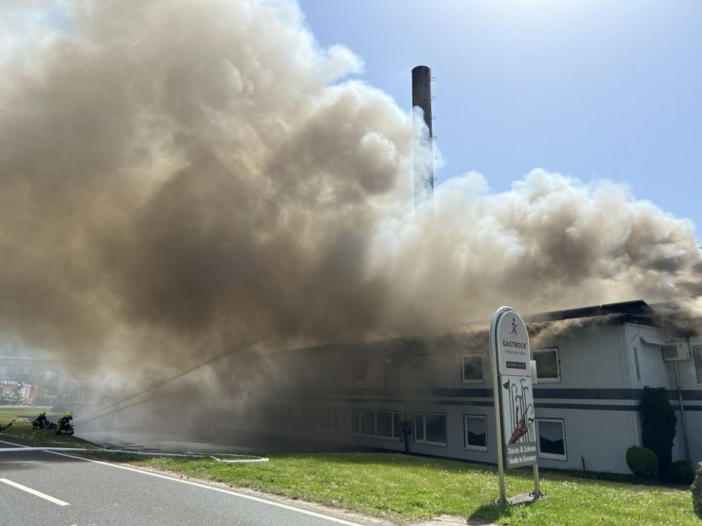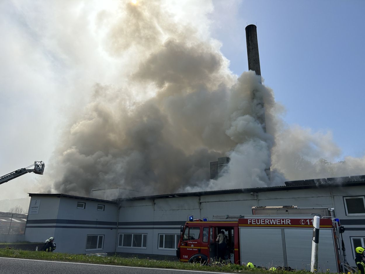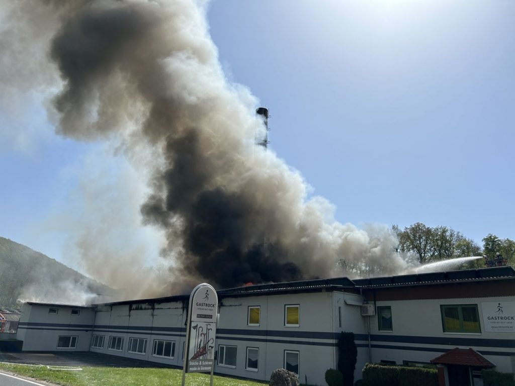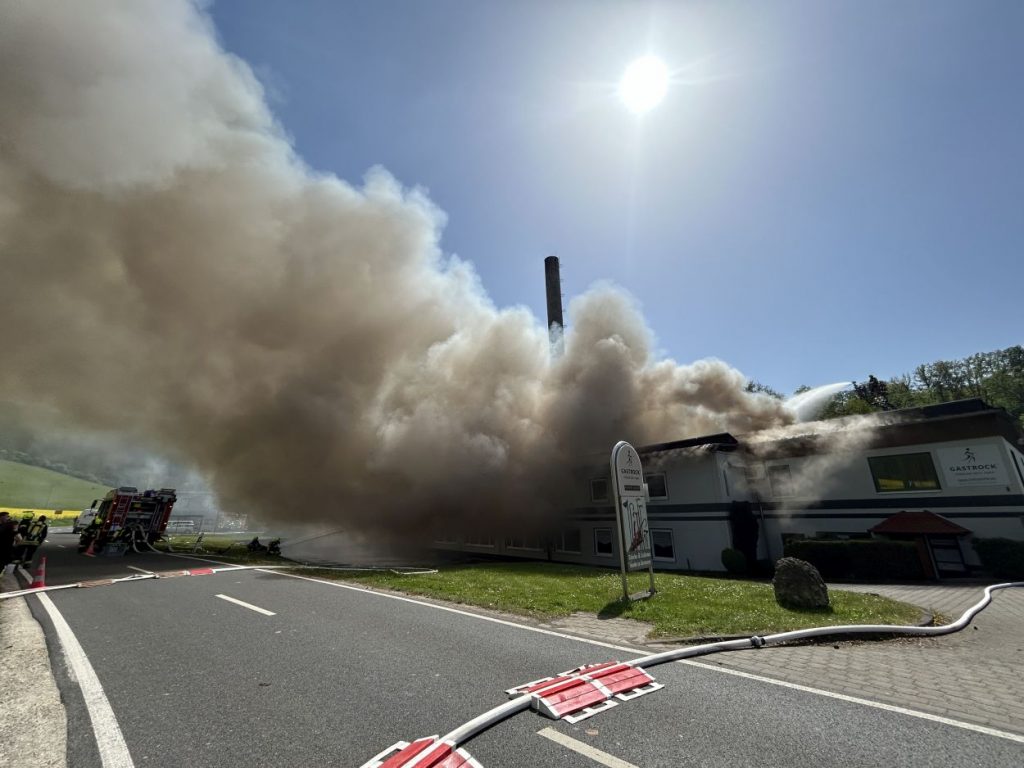 Wahlhausen – Am Dienstagmorgen gegen 08:30 Uhr brach in einem Spänebunker Betrieb in Wahlhausen an der thüringischen/hessischen Landesgrenze ein Feuer aus. Beim Eintreffen der ersten Einsatzkräfte war schon eine starke Verrauchung sowie Flammen sichtbar. Die Flammen griffen auf den Dachstuhl des Gebäudes über. Im ersten Verlauf wurde eine Wasserversorgung sowie eine Riegelstellung am Gebäude aufgebaut, weitere Kräfte wurden mittels Einsatzstichworterhöhung nachalarmiert. Probleme bei der Brandbekämpfung gab es, da das Dach nicht betreten werden konnte, da es sich um ein umgebautes Heizhaus handelt. Der Innenangriff der zum Anfang vorgenommen wurde, musste im weiteren Einsatzverlauf aus Sicherheitsgründen abgebrochen werden, da die Decke instabil wurde. Im Verlauf des Einsatzes wurde ein Fachberater des THW beauftragt, die Struktur des Gebäudes zu kontrollieren, um weitere Vorgehensweisen festlegen zu können. Im weiteren Verlauf wird geschaut, wie der Brand komplett erstickt werden kann, dafür kommt im Nachgang der Löschschaum zum Einsatz. Der Gesamtschaden beläuft sich laut Polizei auf mehrere Hunderttausend Euro. Insgesamt waren von Feuerwehr, THW, Roten Kreuz, Fachbehörden, untere Wasserbehörde und Energie Versorger mit rund 200 Kräften vor Ort. Rund 50 Fahrzeuge befanden sich bei dem Großbrand. Zum aktuellen Stand ist noch nicht absehbar, wie lange der Einsatz noch dauert.