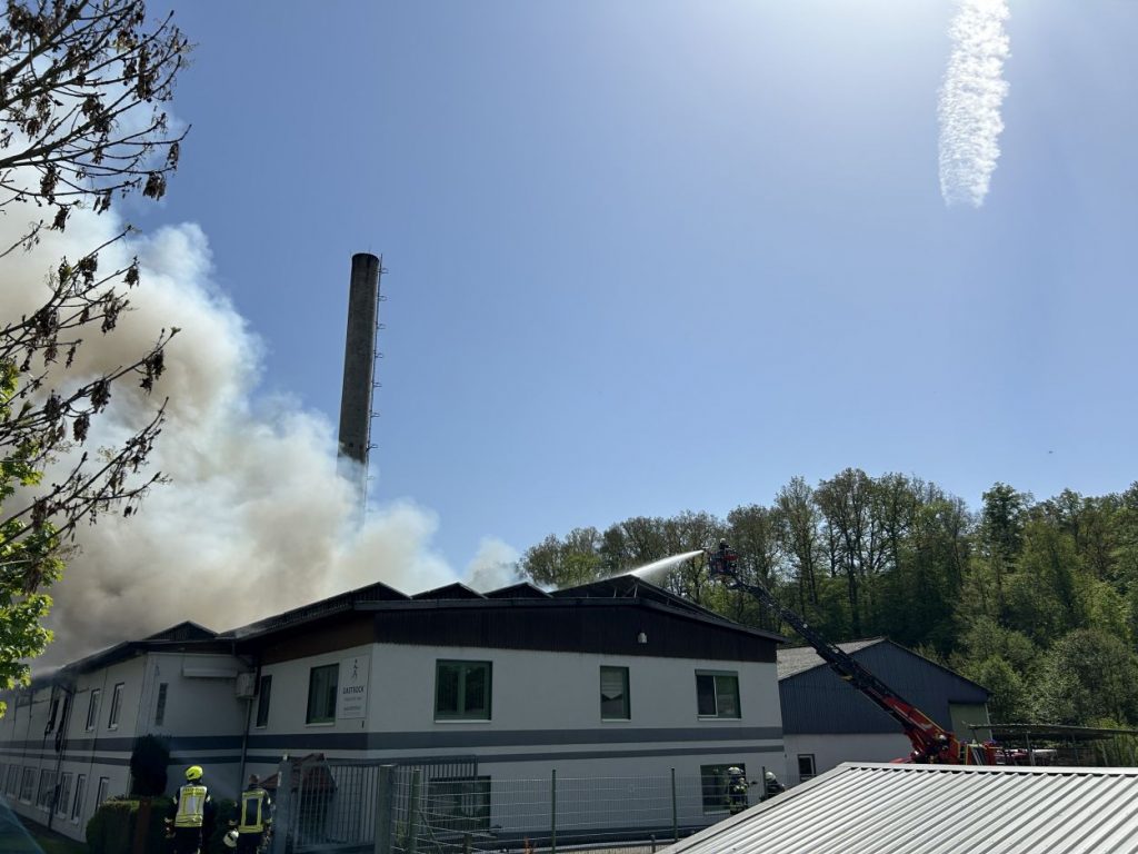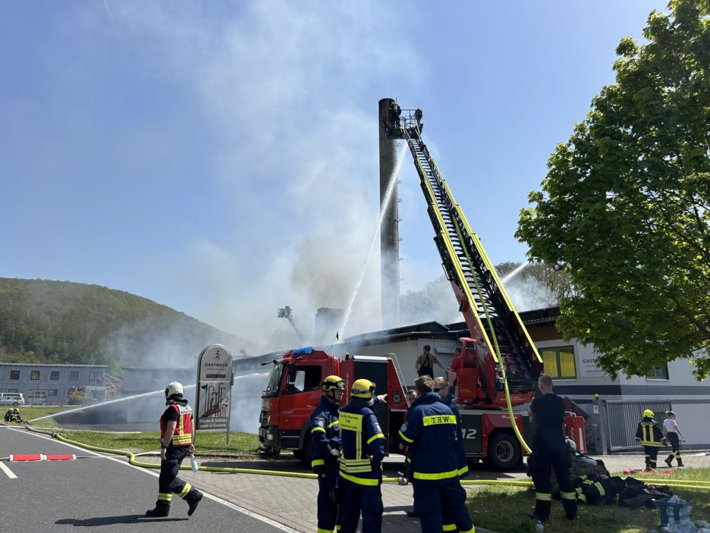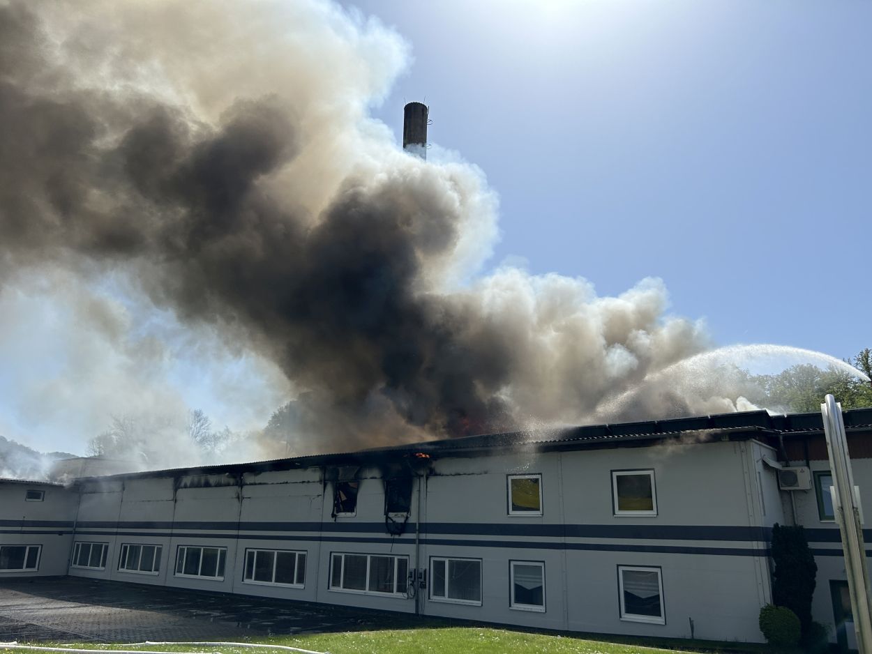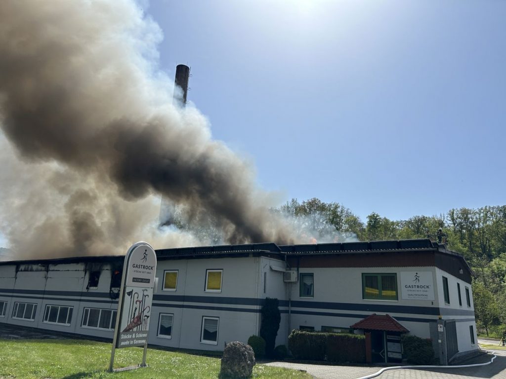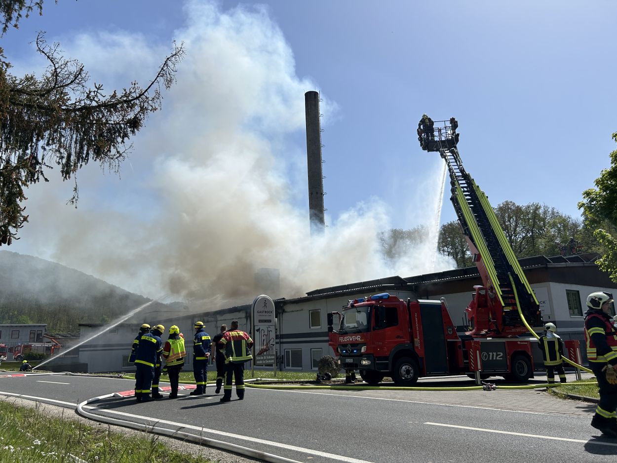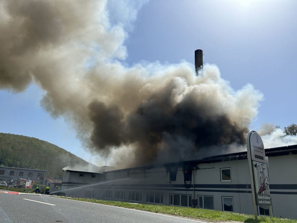 Wahlhausen – Am Dienstagmorgen gegen 08:30 Uhr brach in einem Spänebunker Betrieb in Wahlhausen an der thüringischen/hessischen Landesgrenze ein Feuer aus. Beim Eintreffen der ersten Einsatzkräfte war schon eine starke Verrauchung sowie Flammen sichtbar. Die Flammen griffen auf den Dachstuhl des Gebäudes über. Im ersten Verlauf wurde eine Wasserversorgung sowie eine Riegelstellung am Gebäude aufgebaut, weitere Kräfte wurden mittels Einsatzstichworterhöhung nachalarmiert. Probleme bei der Brandbekämpfung gab es, da das Dach nicht betreten werden konnte, da es sich um ein umgebautes Heizhaus handelt. Der Innenangriff der zum Anfang vorgenommen wurde, musste im weiteren Einsatzverlauf aus Sicherheitsgründen abgebrochen werden, da die Decke instabil wurde. Im Verlauf des Einsatzes wurde ein Fachberater des THW beauftragt, die Struktur des Gebäudes zu kontrollieren, um weitere Vorgehensweisen festlegen zu können. Im weiteren Verlauf wird geschaut, wie der Brand komplett erstickt werden kann, dafür kommt im Nachgang der Löschschaum zum Einsatz. Der Gesamtschaden beläuft sich laut Polizei auf mehrere Hunderttausend Euro. Insgesamt waren von Feuerwehr, THW, Roten Kreuz, Fachbehörden, untere Wasserbehörde und Energie Versorger mit rund 200 Kräften vor Ort. Rund 50 Fahrzeuge befanden sich bei dem Großbrand. Zum aktuellen Stand ist noch nicht absehbar, wie lange der Einsatz noch dauert.