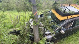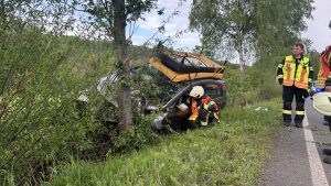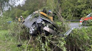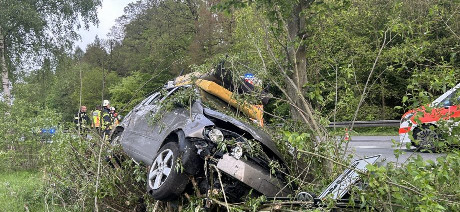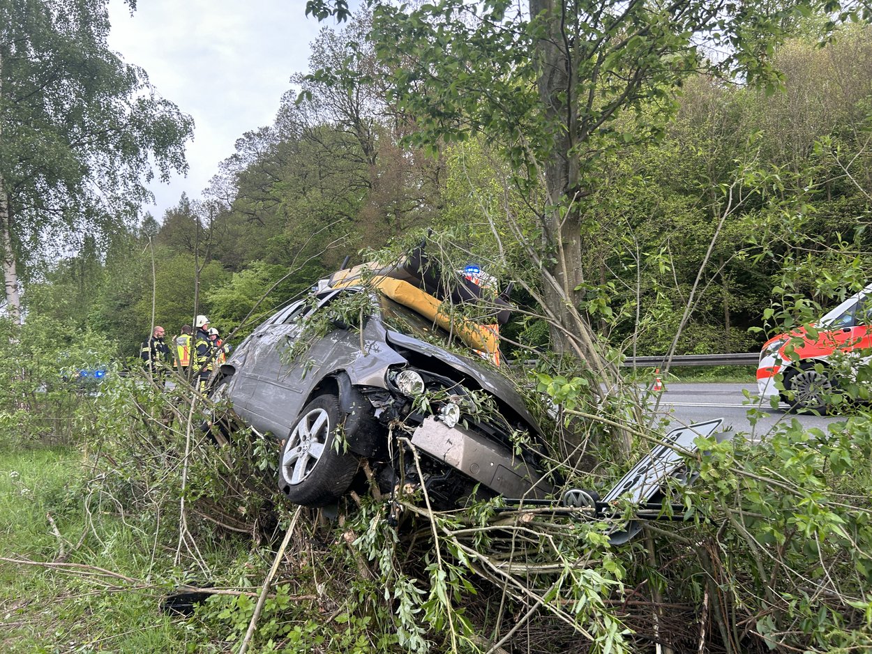 Kaufungen – Auf der Bundesstraße 7 (B7) kam es am heutigen Sonntagabend gegen 19:30 Uhr zu einem Alleinunfall, bei dem eine Person nach derzeitigem Stand glücklicherweiße nur leicht verletzt wurde. Wie die Polizei vor Ort berichtete, befuhr der Fahrzeugführer mit seinem PKW die B7 von Helsa in Richtung Kaufungen, in einer leichten links Kurve verlor der Fahrzeugführer aus bislang ungeklärten Gründen die Kontrolle über sein Fahrzeug, fuhr einige Meter durch den Straßengraben bis das Fahrzeug mit einem Baum Zusammenstoß und dort zum Stehen kam. Wie durch ein Wunder wurde der Fahrzeugführer nur leicht verletzt und war beim Eintreffen der Einsatzkräfte bereits aus dem Fahrzeug raus. Zur weiteren Behandlung wurde die Person durch einen Rettungswagen in ein umliegendes Krankenhaus gebracht. Der nachfolgende Verkehr wurde an der Unfallstelle vorbeigeführt. Gegen 21:00 Uhr waren alle Fahrbahnen wieder frei. Im Einsatz war die Feuerwehr Kaufungen, ein RTW, ein Notarzt sowie die Polizei.