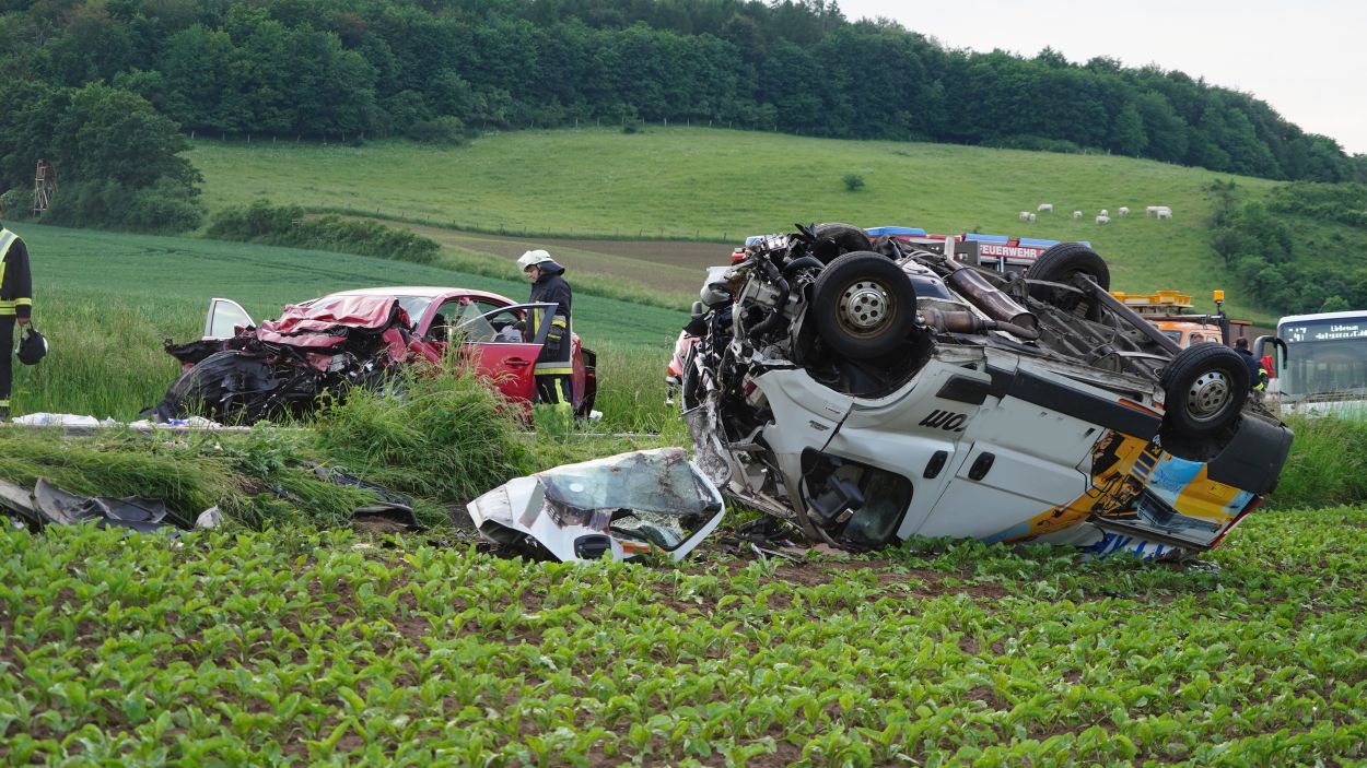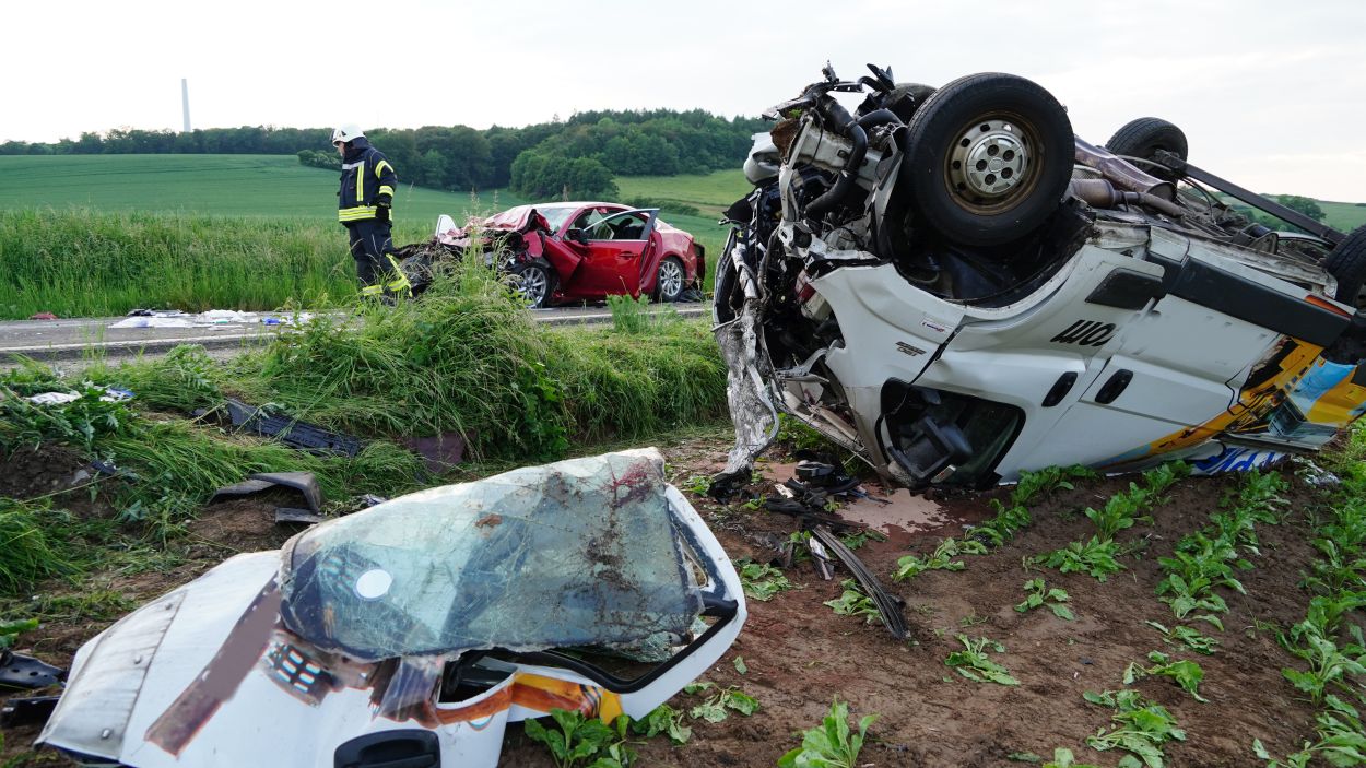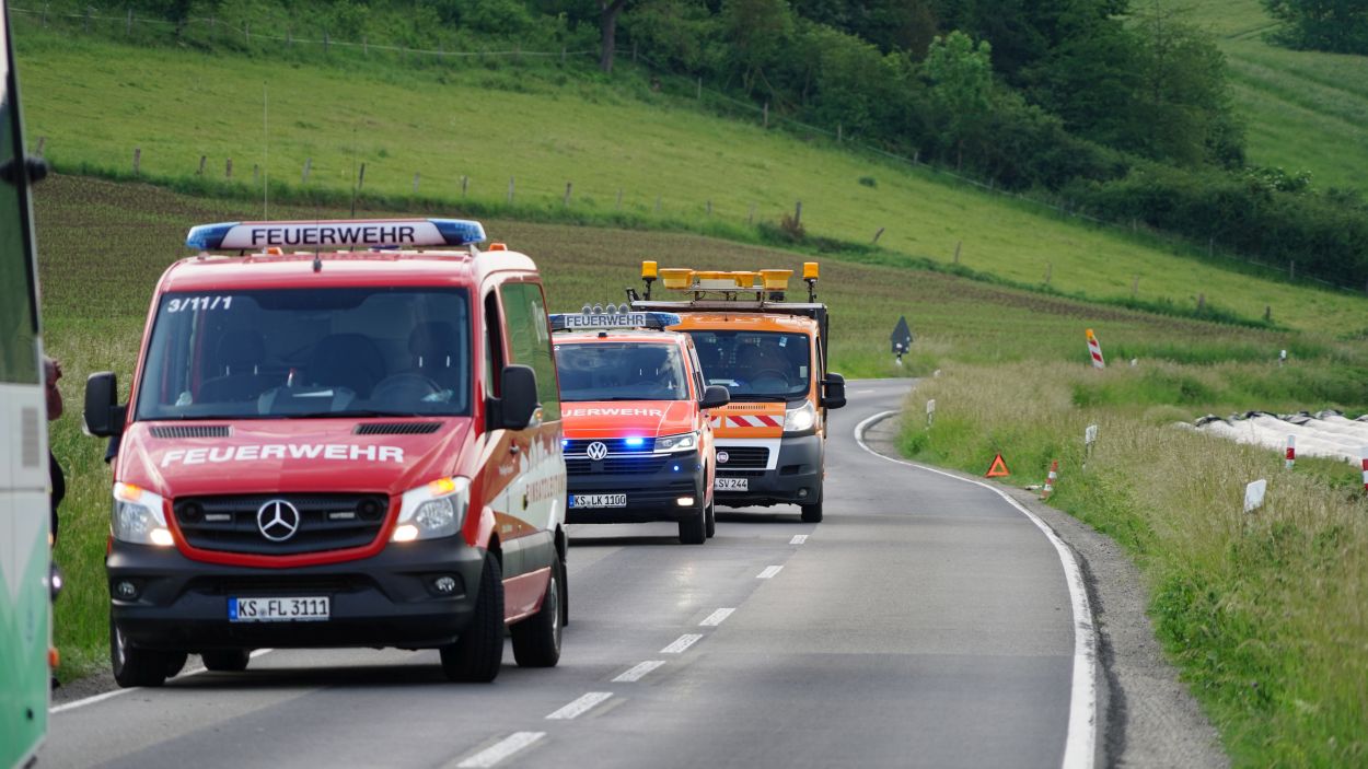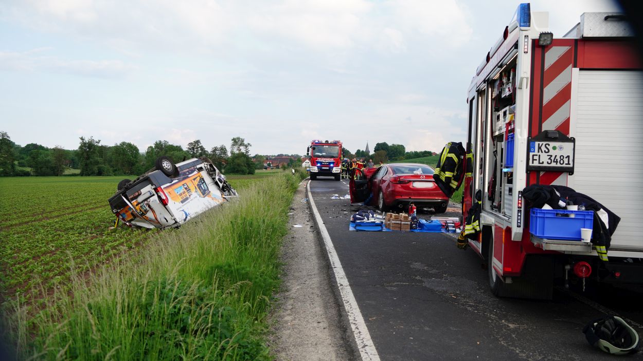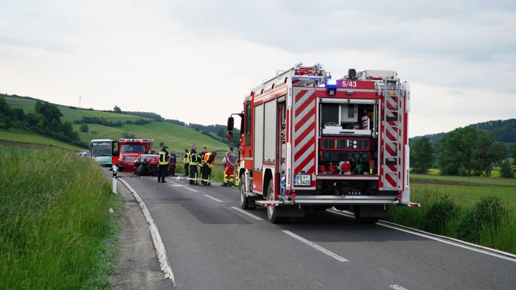 Liebenau – Zu einem tragischen Verkehrsunfall kam es am Donnerstag auf der L3211 zwischen Niedermeiser und Zwergen. Nach derzeitigen Erkenntnissen befuhr ein mit drei Personen besetzter Transporter gegen 17.15 Uhr die L3211 von Niedermeiser kommend in Fahrtrichtung Zwergen. In einer Linkskurve stieß der Transporter aus bislang ungeklärter Ursache mit einem entgegenkommenden PKW frontal zusammen. Ein Insasse aus dem Transporter wurde bei dem Zusammenstoß tödlich verletzt, die zwei weiteren Insassen wurden lebensgefährlich verletzt und in umliegende Krankenhäuser eingeliefert. Der Fahrer des PKW wurde bei dem Zusammenstoß tödlich verletzt. Ein Gutachter wurde in die Unfallermittlungen mit eingebunden. Neben Polizei, Feuerwehr und Rettungsdienst war auch ein Rettungshubschrauber im Einsatz. Die Landstraße war mehrere Stunden voll gesperrt.