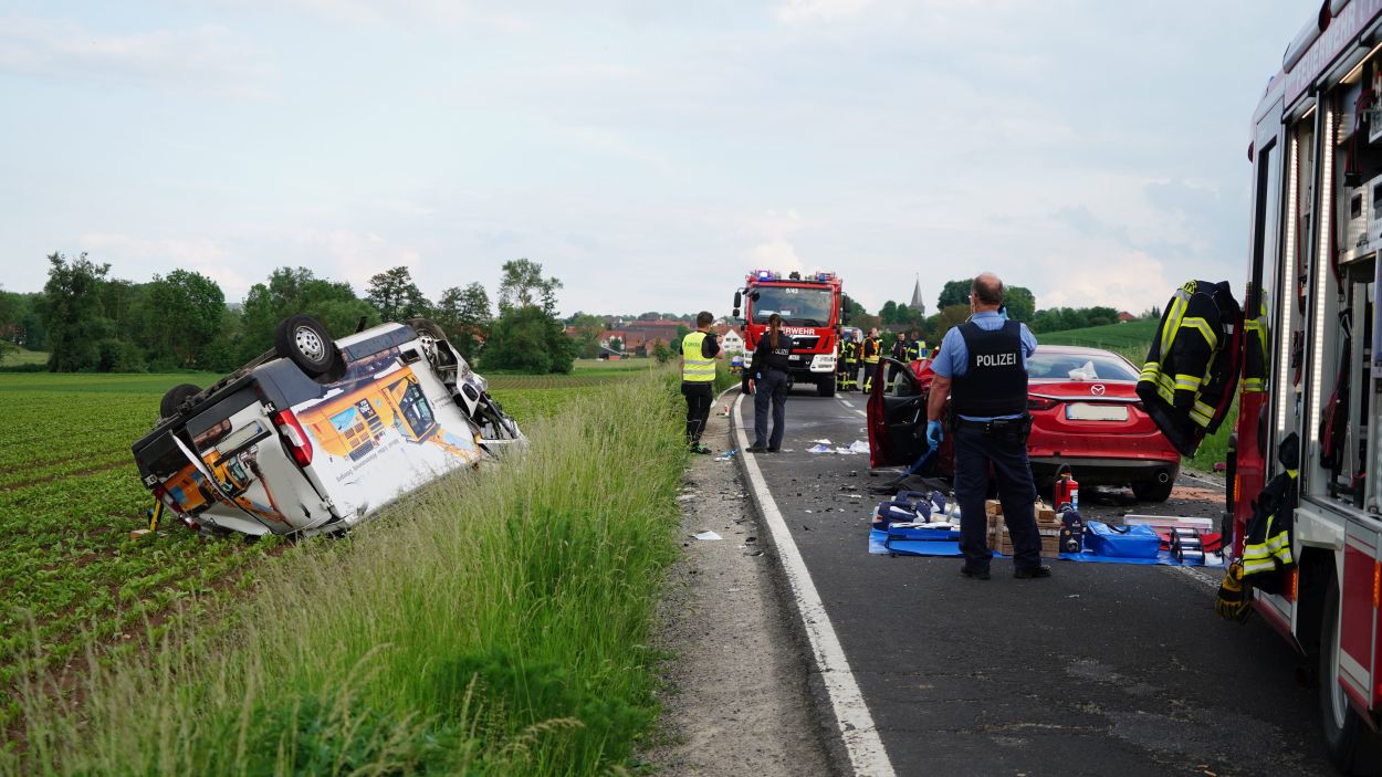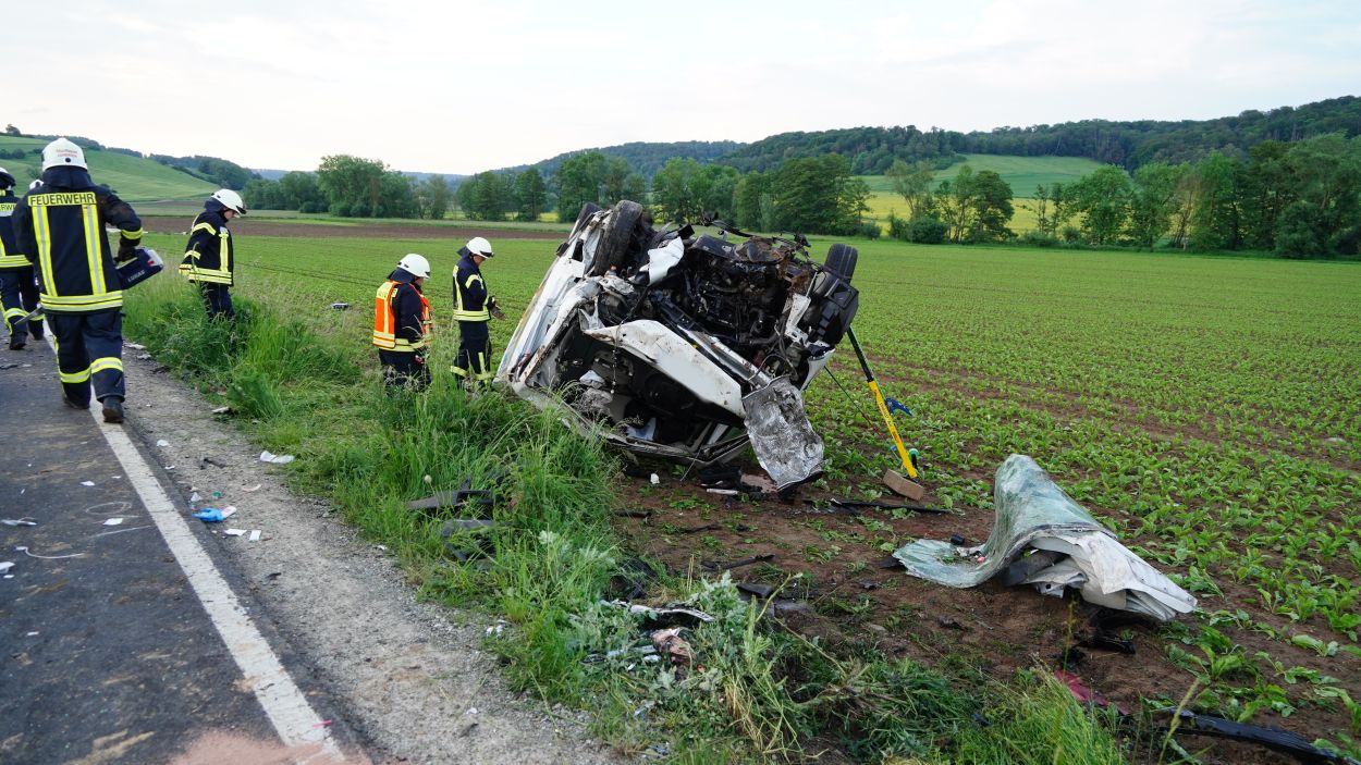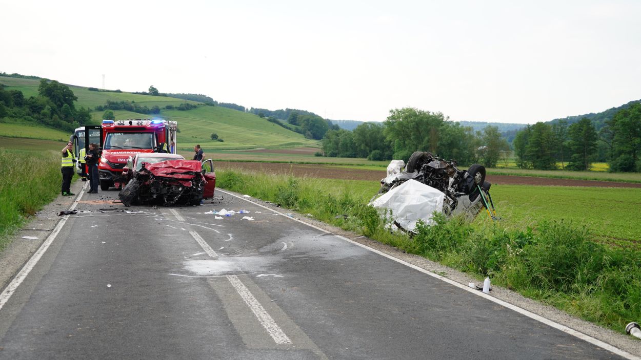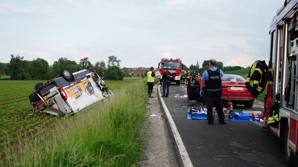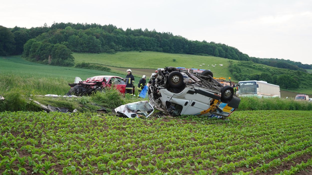 Liebenau – Zu einem tragischen Verkehrsunfall kam es am Donnerstag auf der L3211 zwischen Niedermeiser und Zwergen. Nach derzeitigen Erkenntnissen befuhr ein mit drei Personen besetzter Transporter gegen 17.15 Uhr die L3211 von Niedermeiser kommend in Fahrtrichtung Zwergen. In einer Linkskurve stieß der Transporter aus bislang ungeklärter Ursache mit einem entgegenkommenden PKW frontal zusammen. Ein Insasse aus dem Transporter wurde bei dem Zusammenstoß tödlich verletzt, die zwei weiteren Insassen wurden lebensgefährlich verletzt und in umliegende Krankenhäuser eingeliefert. Der Fahrer des PKW wurde bei dem Zusammenstoß tödlich verletzt. Ein Gutachter wurde in die Unfallermittlungen mit eingebunden. Neben Polizei, Feuerwehr und Rettungsdienst war auch ein Rettungshubschrauber im Einsatz. Die Landstraße war mehrere Stunden voll gesperrt.