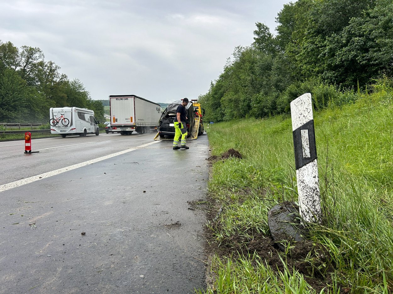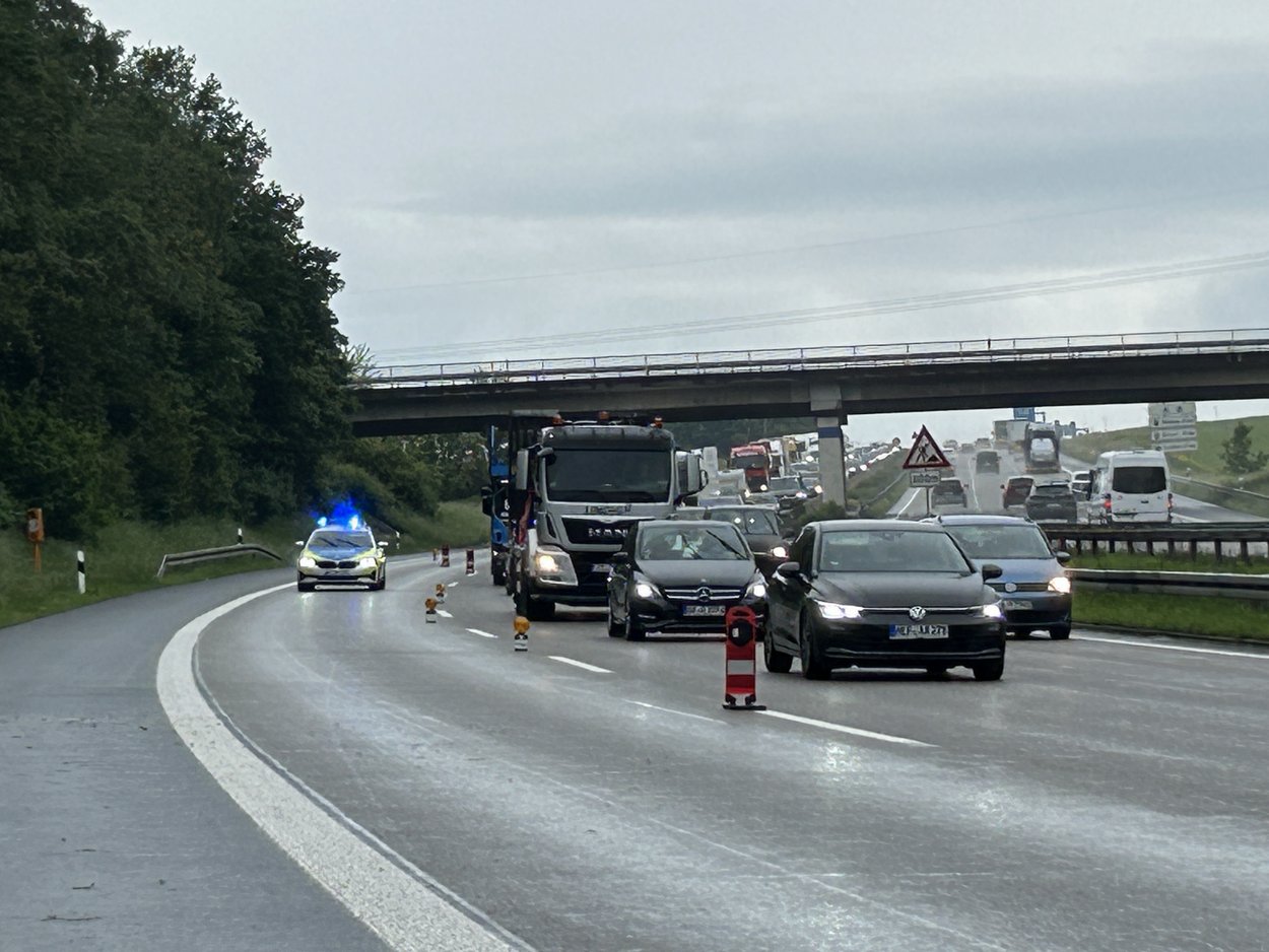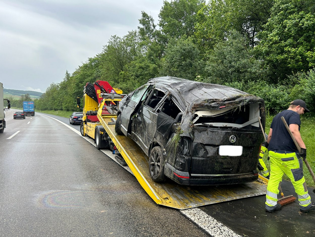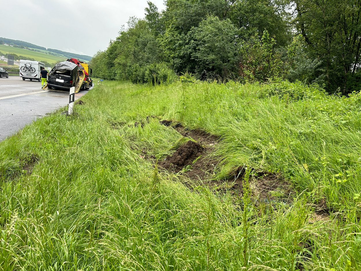 A7/Malsfeld – Am Freitagnachmittag gegen 14:30 Uhr kam es auf der A7 zwischen der Raststätte Hasselberg-Ost und der Anschlussstelle Malsfeld zu einem Alleinunfall. Wie die Autobahnpolizei Baunatal berichtete, befuhr ein 34-jähriger Mann aus Fulda die A7 in Richtung Norden. In einer leichten Linkskurve kam der 34-Jährige nach links von seiner Spur ab, prallte dort gegen die Mittelleitplanke, danach schleuderte er über alle drei Fahrstreifen nach rechts in den Straßengraben, überschlug sich dort und kam dann auf dem Standstreifen auf den Rädern zum Stehen. Die Feuerwehr Homberg (Efze) kam dort ebenfalls zum Einsatz, sie befreiten den Fahrer aus dem Auto, der dann mit schweren aber nicht lebensbedrohlichen Verletzungen in ein Kassler Krankenhaus gebracht wurde. Das Fahrzeug wurde stark beschädigt und wurde im weiteren Einsatzverlauf abgeschleppt. Die Polizei schätzt den Gesamtschaden auf rund 55.000 Euro. Für die Rettungs- und Bergungsarbeiten war die rechte Spur gesperrt, es staute sich stark zurück.