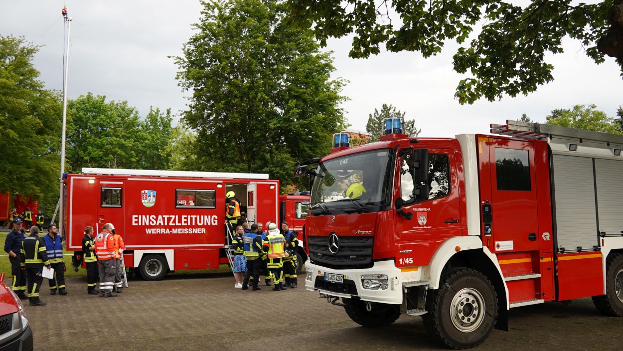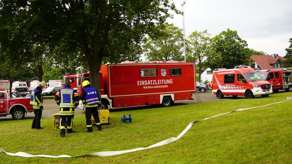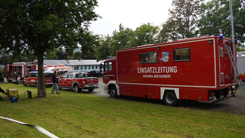 Bad Sooden-Allendorf – Am Montagnachmittag kam es im Werra Meißner Kreis zu einem Großeinsatz. In einem Seniorenheim in Bad Sooden-Allendorf brach gegen 17.30 Uhr in einem Bewohnerzimmer im Erdgeschoss ein Feuer aus. Die Brandgase verteilten sich schnell im Erdgeschoss und 1. Obergeschoss, sodass die Feuerwehr 27 Personen aus dem Gebäude retten musste. 10 Personen mussten zur weiteren Behandlung in ein Krankenhaus transportiert werden. Eine Person kam bei dem Feuer ums Leben. Aufgrund der hohen Anzahl von Verletzten wurde MANV25 (Massenanfall von Verletzten bis 25) ausgelöst. Somit kam auch der Rettungsdienst aus den Nachbarkreisen zum Einsatz. Aktuell wird geschaut, dass die Bewohner, die ihre Zimmer nicht mehr betreten konnten, in anderen Bereichen unterkommen. Insgesamt waren 170 Einsatzkräfte mehrere Stunden im Einsatz. Die Brandursache ist derzeit unklar, die Polizei hat ihre Ermittlungen aufgenommen.