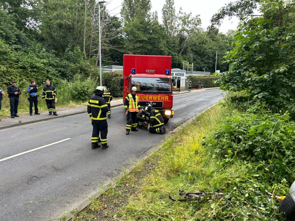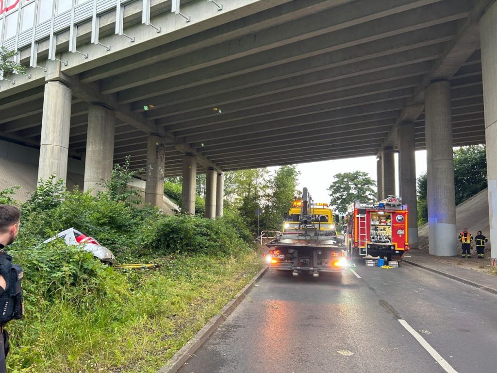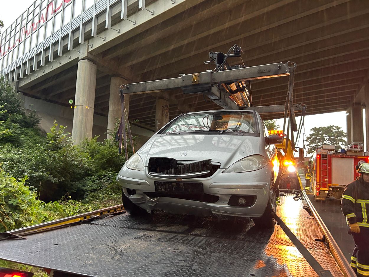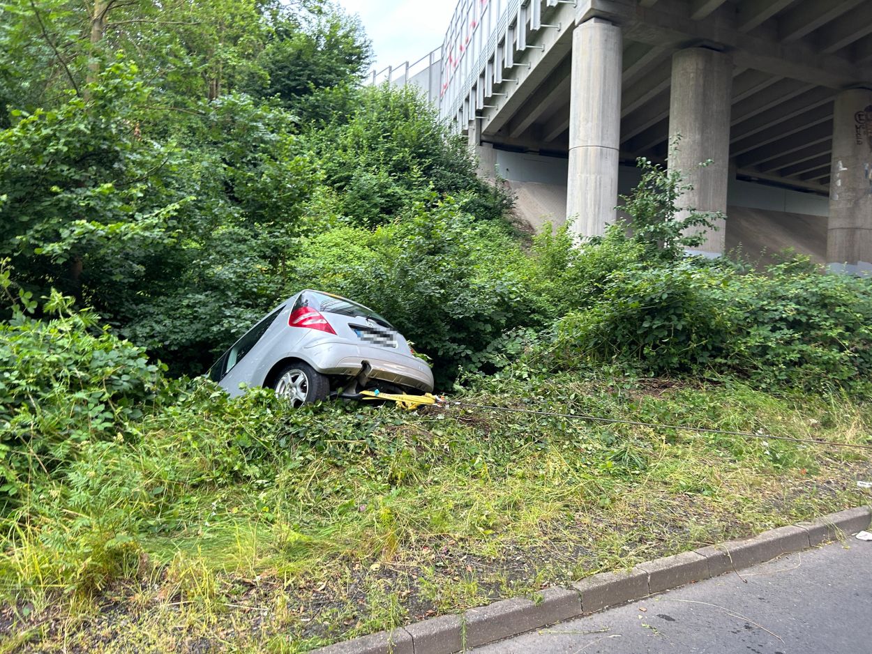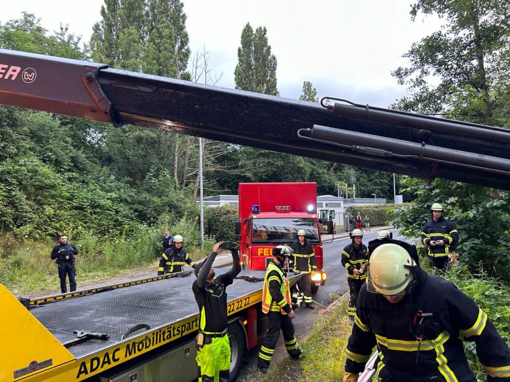Lohfelden – Zu einem Verkehrsunfall kam es am Montagabend auf der Ochshäuser Dorfstraße in Lohfelden. Gegen 18 Uhr befuhr ein 27-Jähriger mit seinen Ford die Straße von Kassel kommend in Fahrtrichtung Lohfelden. In Höhe der Autobahnbrücke musste der 27-Jährige verkehrsbedingt bremsen. Das erkannte ein 22-Jähriger wohl zu spät, versuchte noch nach rechts auszuweichen, touchierte noch den Ford und fuhr dann in den Wahlebach, der parallel zur Straße fließt. Der 22-Jährige wurde leicht verletzt und kam in ein Krankenhaus. Für die aufwendige Bergung musste die Straße Teilwiese komplett gesperrt werden. Die Polizei schätzt den Schaden am Mercedes auf rund 2000 Euro, der Schaden am Ford wird auf 500 Euro geschätzt. Gegen 21 Uhr waren die Bergungsarbeiten abgeschlossen. Neben Rettungsdienst und Polizei war auch die Feuerwehr Lohfelden im Einsatz und sicherte das Fahrzeug im Wahlebach.