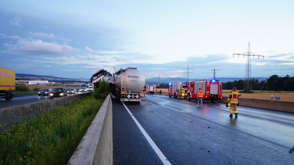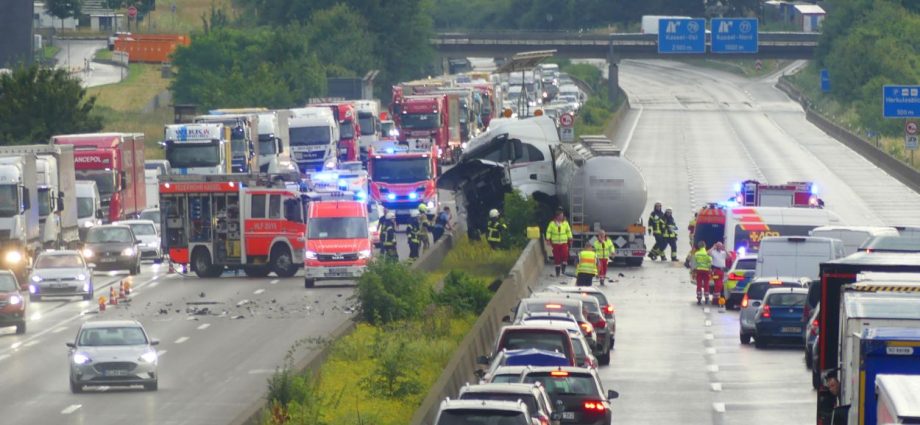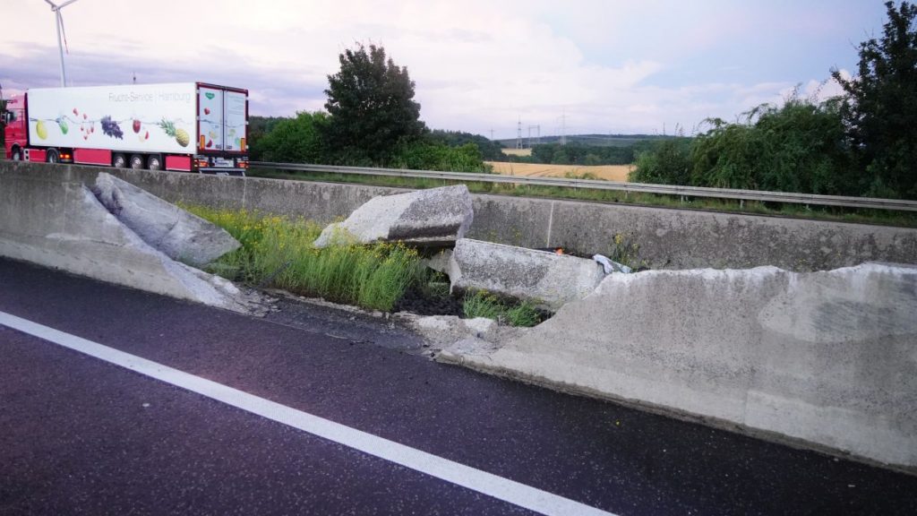 A7: Silo-LKW kracht in Betonleitwand – Stundenlange Vollsperrung bei Kassel