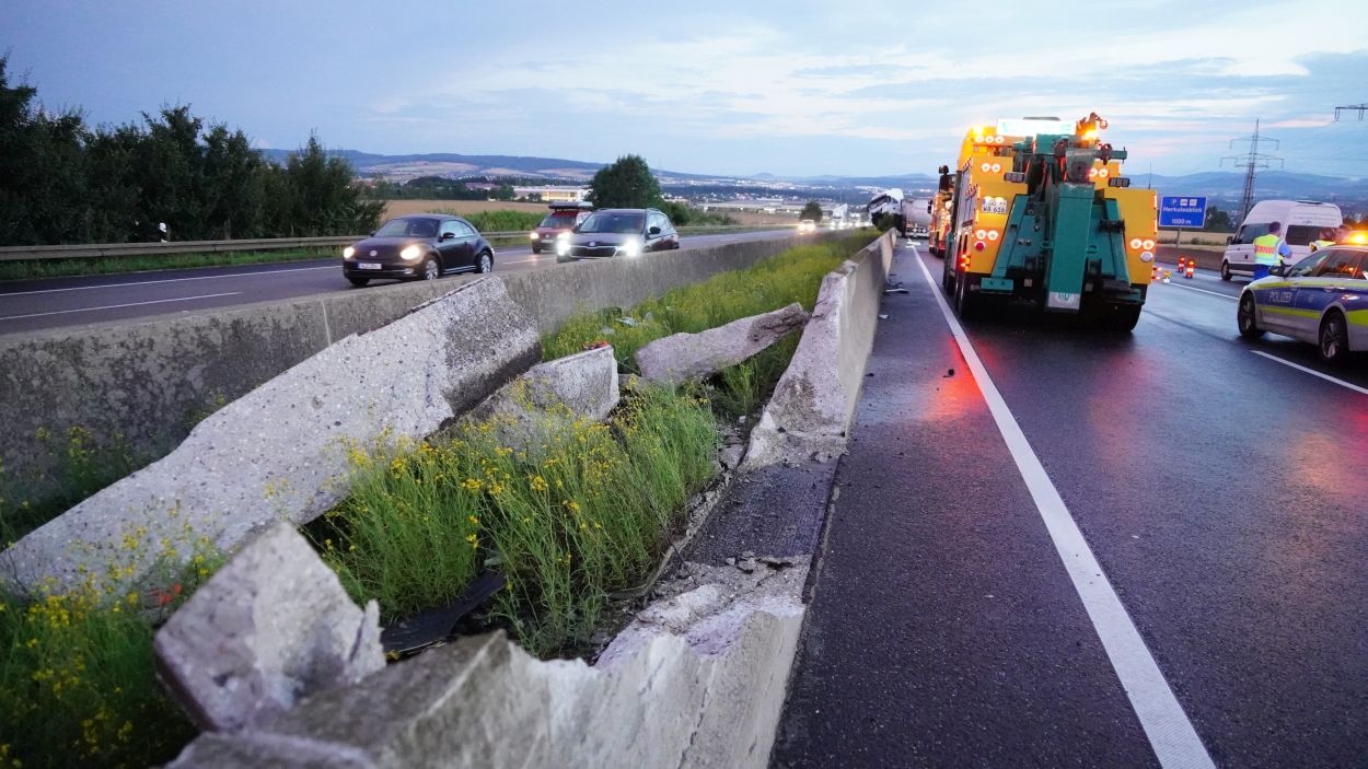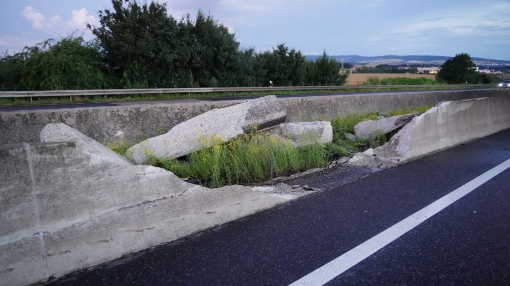 Wie die Polizei heute bekannt gab, war der 49-jährige Fahrer offenbar aufgrund nicht an die nasse Fahrbahn angepasster Geschwindigkeit nach links von der Fahrbahn ab und krachte, wie bereits berichtet, in die Betonmittelschutzwand. Der Schaden am LKW wird auf 60.000 Euro geschätzt und weitere 20.000 Euro Schaden an der Betonleitwand.