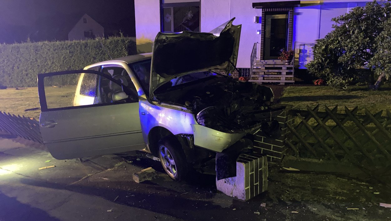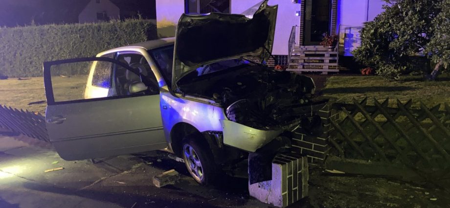 Schauenburg – In der Nacht auf Dienstag war ein Fahrer eines VW Lupo von Schauenburg-Elgershausen in Richtung L3215 unterwegs. Vermutlich aufgrund überhöhter Geschwindigkeit verlor er gegen 23.50 Uhr die Kontrolle über den PKW und kam nach links von der Korbacher Straße ab. Daraufhin durchbrach er Zäune und Mauern von zwei Grundstücke und kam in einem Vorgarten zum Stehen. Ein Anwohner hatte den Aufprall gehört, danach zwei junge Männer aus dem Wrack aussteigen und Richtung Feld flüchten sehen. Die eingesetzten Streifen konnten nahe der Unfallstelle den ebenfalls geflüchteten 21-jährigen Beifahrer ausfindig machen. Der in Schauenburg wohnende Mann hatte sich bei der Auslösung des Airbags leicht verletzt. Die bisherigen Fahndungsmaßnahmen und Ermittlungen zum Fahrer des grauen VW Lupo, der keine Kennzeichen hat und seit zwei Jahren nicht mehr zugelassen ist, führten noch nicht zur Identifizierung eines Tatverdächtigen. An dem VW war ein wirtschaftlicher Totalschaden entstanden. Mit mehreren Tausend Euro schlagen die Schäden der beiden betroffenen Grundstücksbesitzer zu Buche.
