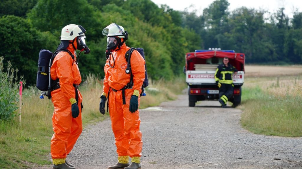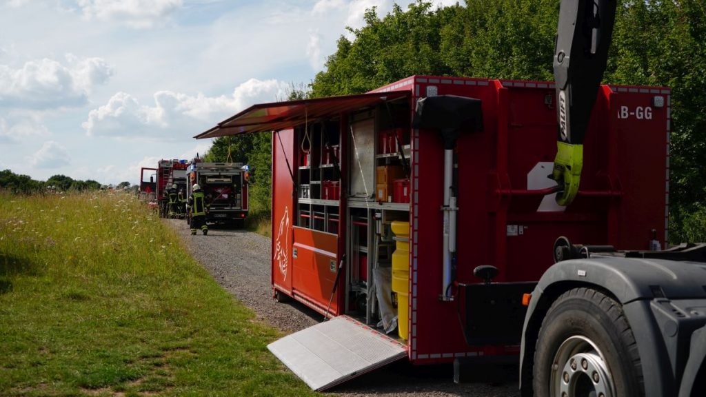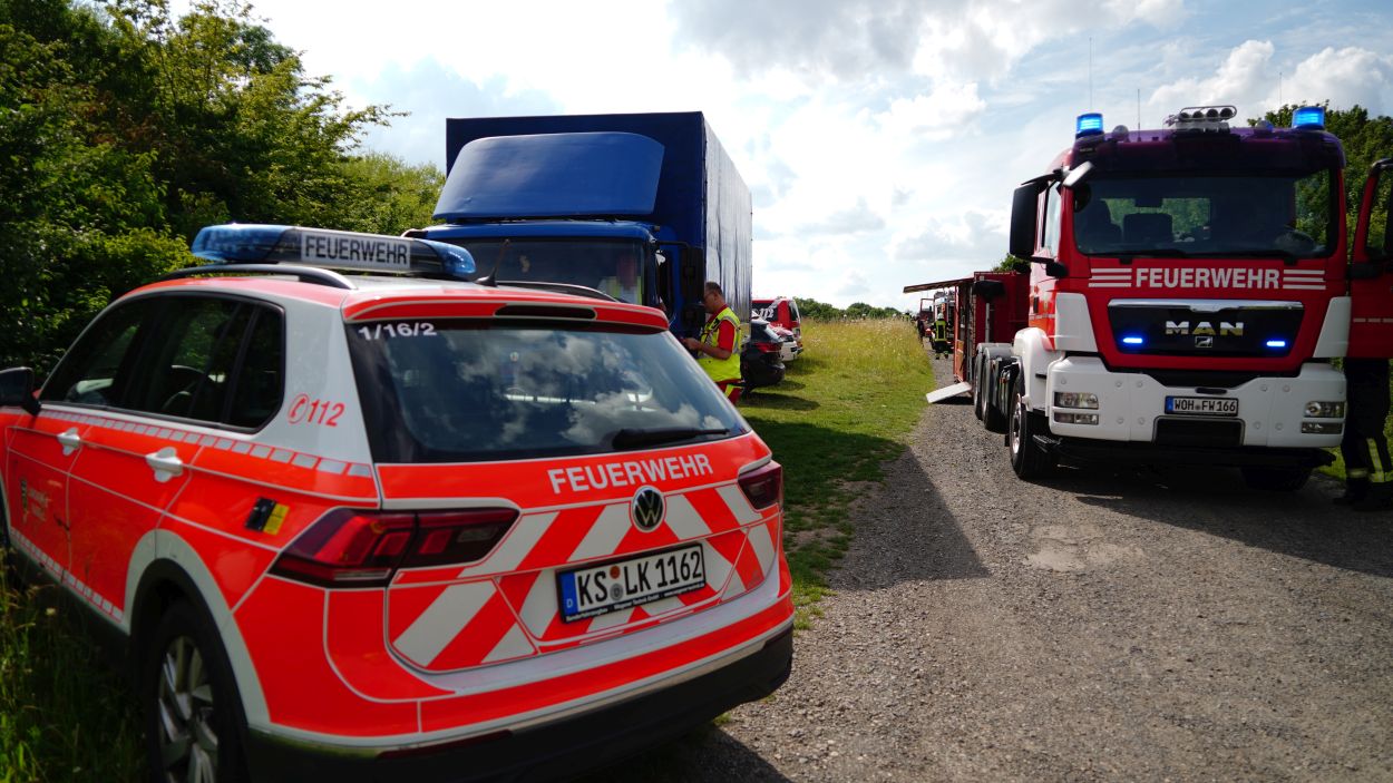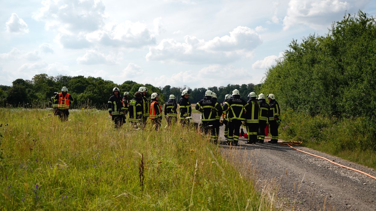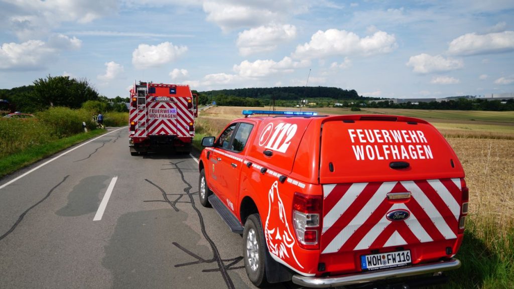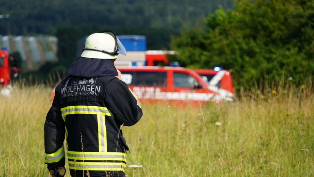 Wolfhagen – Zu einem Gefahrguteinsatz wurde die Feuerwehr Wolfhagen am Donnerstagnachmittag gegen 16 Uhr alarmiert. Auf einen Feldweg zwischen Niederelsungen und Breuna unterhalb eines Solarparks, entdeckte ein LKW-Fahrer bei einer Rastpause mehrere Behälter. Da die Behälter als ätzend gekennzeichnet sind, alarmierte der LKW-Fahrer die Feuerwehr. Rund 40 Einsatzkräfte aus Wolfhagen, Nothfelden und Niederelsungen trafen kurz danach am Einsatzort ein. Mit CSA (Chemikalien-Schutz-Anzug) wurden die Gebinde gegen auslaufen gesichert. Im weiteren Verlauf wurde ein Bindemittel für Chemikalien aufgetragen. Eine Fachfirma wurde mit der Entsorgung beauftragt. Gegen 17.30 Uhr war der Einsatz beendet. Der LKW-Fahrer wurde vorsichtshalber vom Rettungsdienst kontrolliert. Um was es sich für einen Stoff gehandelt hat, war abschließen aufgrund der geringen Menge nicht eindeutig bestimmbar. Die Polizei ermittelt nun wegen illegaler Müllentsorgung.