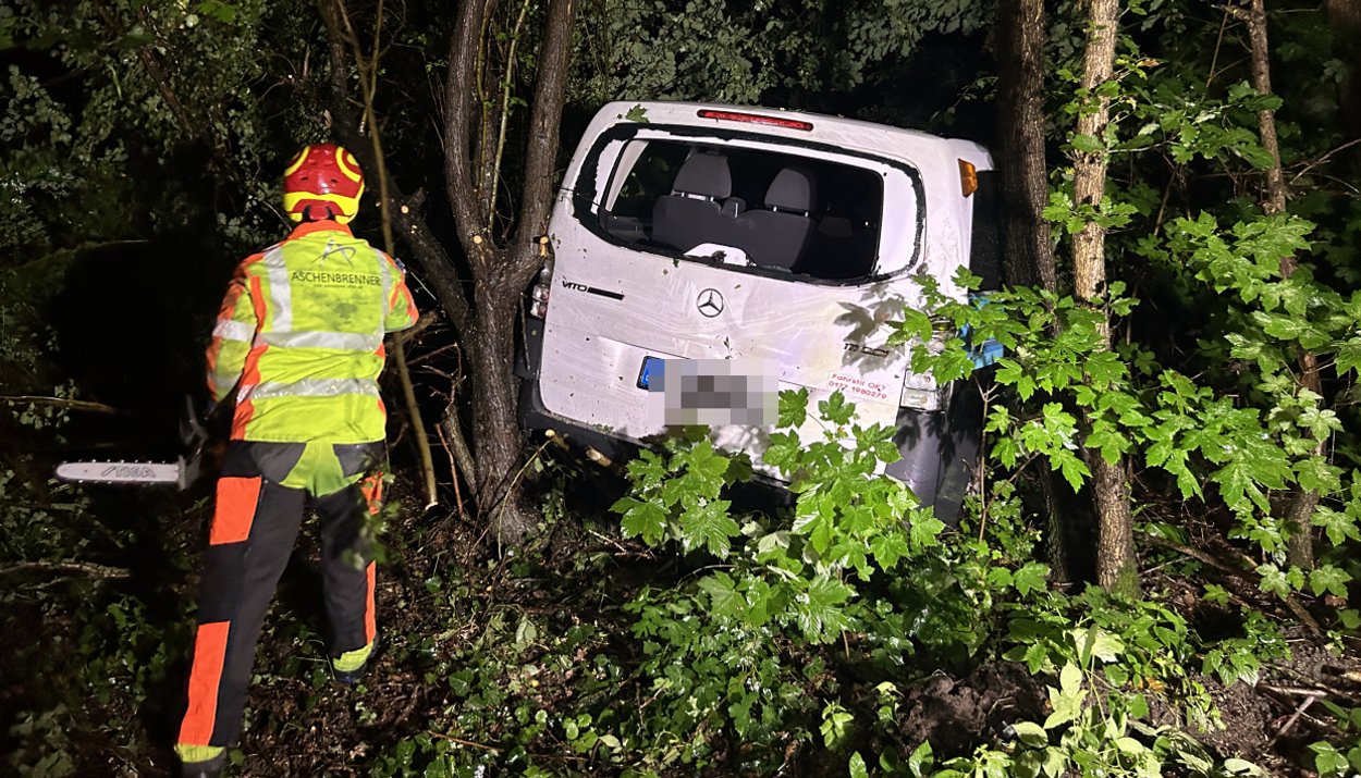Kassel – Am frühen Samstagmorgen um kurz vor 4 Uhr kam es auf der A7 in Fahrtrichtung Würzburg zu einem Alleinunfall. Wie die vor Ort eingesetzte Streife der Autobahnpolizei Baunatal berichtete, kam der Fahrer mit seinem Mercedes Vito bei Regennasser Fahrbahn von der Straße ab, fuhr die Böschung hinab und kam rund 20 Meter tief im Straßengraben zwischen mehreren Bäumen zum Stehen. Wie durch ein Wunder wurde der Fahrer nicht verletzt und konnte sich eigenständig aus dem Fahrzeug befreien. Zum Bergen des Fahrzeugs wurde eine Abschleppfirma aus Kassel beauftragt. Die Bergung gestaltete sich schwierig, da das Fahrzeug zwischen den Bäumen verkeilt war und die Bäume mit einer Kettensäge weggeschnitten werden mussten. Erst dann gelang es dem Bergungsdienst das Fahrzeug zu Bergen. Am Fahrzeug entstand wirtschaftlicher Totalschaden.