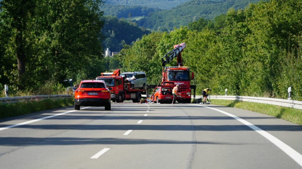 Diemelstadt – Zu einem schweren Verkehrsunfall kam es am Sonntag auf der B252 zwischen Diemelstadt und Scherfede. Nach derzeitigem Kenntnisstand befuhr die Fahrerin eines Mercedes Bus gegen 13.20 Uhr die B252 von Scherfede in Richtung Diemelstadt. Aus bislang ungeklärter Ursache geriet sie auf die Gegenfahrbahn und stieß dort frontal mit einem Seat zusammen. Die alarmierte Feuerwehr aus Diemelstadt mussten den Fahrer aus dem Seat per Sofortrettung aus dem Fahrzeug retten. Trotz alle Bemühungen verstarb der 31-Jährige noch an der Unfallstelle. Die Fahrerin aus dem Mercedes wurde verletzt und kam in ein umliegendes Krankenhaus. Auf Anordnung der Staatsanwaltschaft wurde zur Rekonstruktion des Unfallhergangs ein Gutachter hinzugezogen. Die Ermittlungen zur Unfallursache dauern an. Die Bundesstraße war bis 18 Uhr voll gesperrt. Neben Polizei und Rettungsdienst war die Feuerwehr aus Wrexen und Rhoden mit 30 Einsatzkräften im Einsatz.