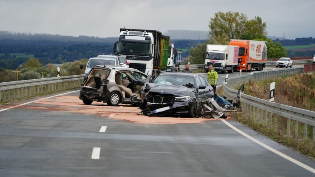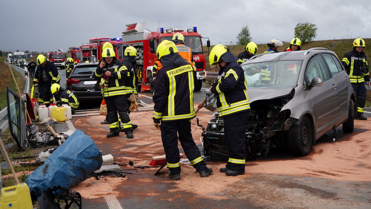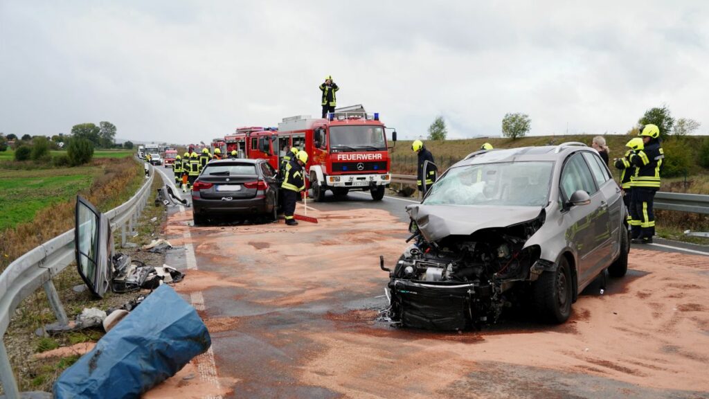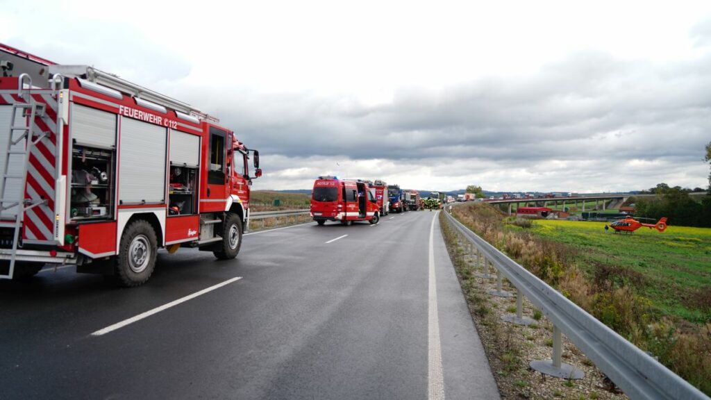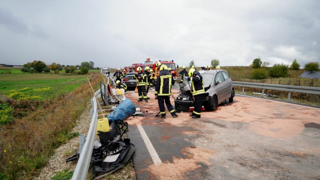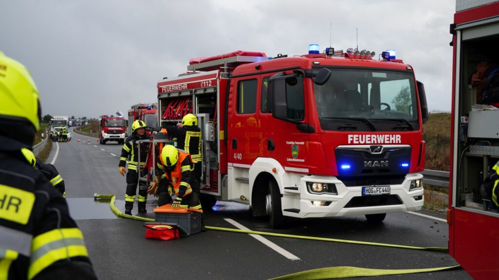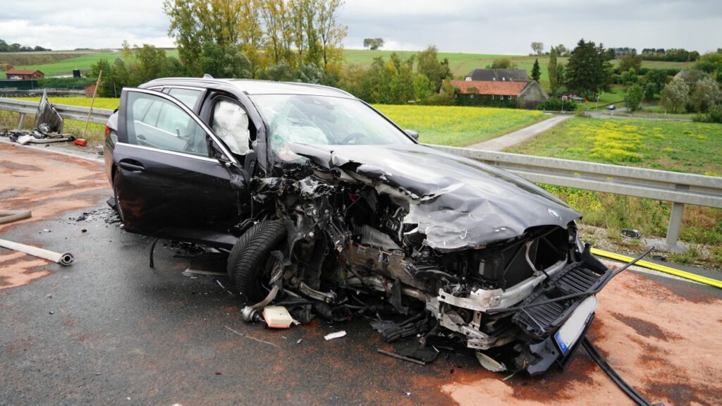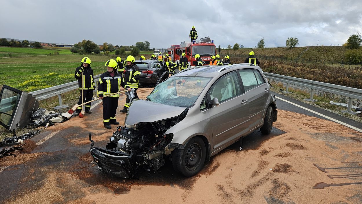 Calden – Auf der neuen Umgehungsstraße B7 von Calden kam es am Donnerstagmittag zu einem schweren Verkehrsunfall. Ein LKW sowie ein 54-jähriger Fahrer eines BMW befuhren gegen 12 Uhr die B7 von Kassel in Fahrtrichtung Warburg. Auf der Umgehungsstraße in Höhe Calden wollte der 54-Jährige den LKW überholen und übersah dann ein entgegen kommendes Fahrzeug was mit zwei Personen besetzt war. Bei dem Frontalzusammenstoß wurde der VW auch gegen den LKW geschleudert, der zuvor vom BMW überholt wurde. Der 54-Jährige sowie der 89-jährige Fahrer vom VW wurden schwer verletzt. Die 88-jährige Beifahrerin vom VW wurde im Fahrzeug eingeschlossen und musste von der Feuerwehr befreit werden. Alle drei Verletzten kamen mit dem Rettungswagen in ein Krankenhaus. Lebensgefahr wird derzeit ausgeschlossen. Der LKW-Fahrer blieb unverletzt und konnte nach der Unfallaufnahme die Unfallstelle wieder verlassen. Neben der Feuerwehr Calden, Polizei und vier Rettungswagen war auch der Rettungshubschrauber Christoph 7 im Einsatz. Die B7 war rund drei Stunden voll gesperrt.
