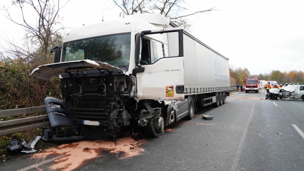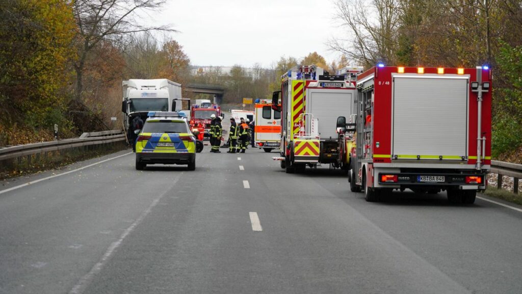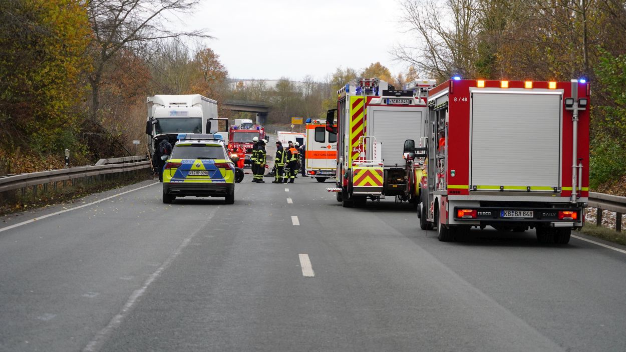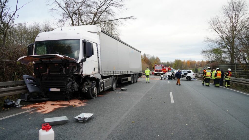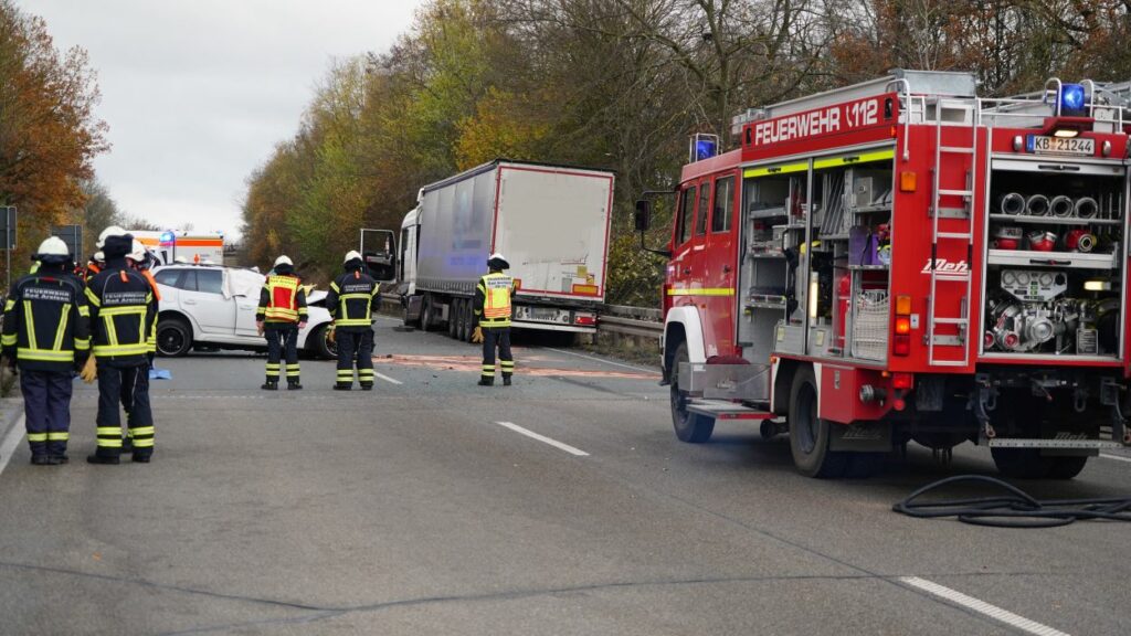 Bad Arolsen – Zu einem tragischen Verkehrsunfall kam es am Freitagnachmittag auf der B252 in Höhe Bad Arolsen. Nach ersten Erkenntnissen fuhr ein 56-Jähriger mit seinem PKW die B 252 von Twiste in Richtung Bad Arolsen. Wie Augenzeugen berichteten, fuhr er gegen 12.50 Uhr plötzlich langsam in den Gegenverkehr ohne ersichtlichen Grund, wo er frontal mit einem Sattelzug zusammenstieß. Ob der Fahrer am Steuer eingeschlafen ist, ist unklar. Auch ein medizinischer Notfall kann nicht ausgeschlossen werden. Für den 56-Jährigen kam jede Hilfe zu spät, er verstarb noch an der Unfallstelle. Seine Beifahrerin erlitt einen Schock und wurde in ein Krankenhaus eingeliefert. Der 64-jährige LKW-Fahrer wurde im Fahrerhaus eingeschlossen und musste von der Feuerwehr befreit werden. Er wurde nach ersten Erkenntnissen nur leicht verletzt und musste nicht behandelt werden. Die B 252 war nach dem Unfall zwischen der Abfahrt Hagenstraße und der Mengeringshäuser Straße für mehrere Stunden voll gesperrt. Neben Polizei und Rettungsdienst war die Feuerwehr aus Bad Arolsen und Mengeringhausen mit 33 Einsatzkräften im Einsatz.