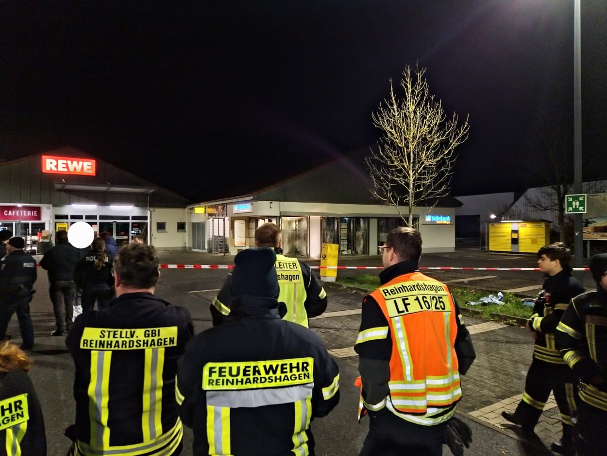 Reinhardshagen – In der Nacht auf Mittwoch sprengten bislang unbekannte Täter einen Geldautomaten im Vaaker Weg in Reinhardshagen-Veckerhagen. Zeugen hatten gegen 2:55 Uhr einen lauten Knall aus dem Bereich der Bankfiliale gehört und die Polizei alarmiert. Nach bisherigen Informationen soll es sich um mehrere Täter gehandelt haben, die mit einem dunklen Pkw vom Tatort über die B 80 in Richtung Norden geflüchtet sind. Ob sie Geld erbeutet haben, ist bis dato noch nicht bekannt. Verletzt wurde niemand. Eine sofort eingeleitete Großfahndung mit Unterstützung der niedersächsischen Polizei verlief bisher ohne Erfolg. Die Ermittlungen am Tatort dauern an. Neben Beamte des LKA sind auch Sprengstoffexperten vor Ort gewesen. Auch die Feuerwehr Reinhardshagen war im Einsatz.