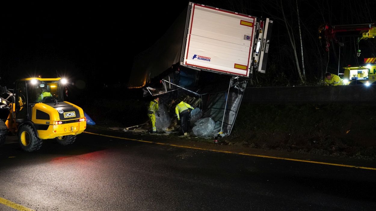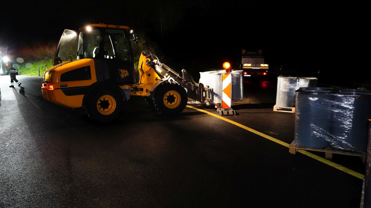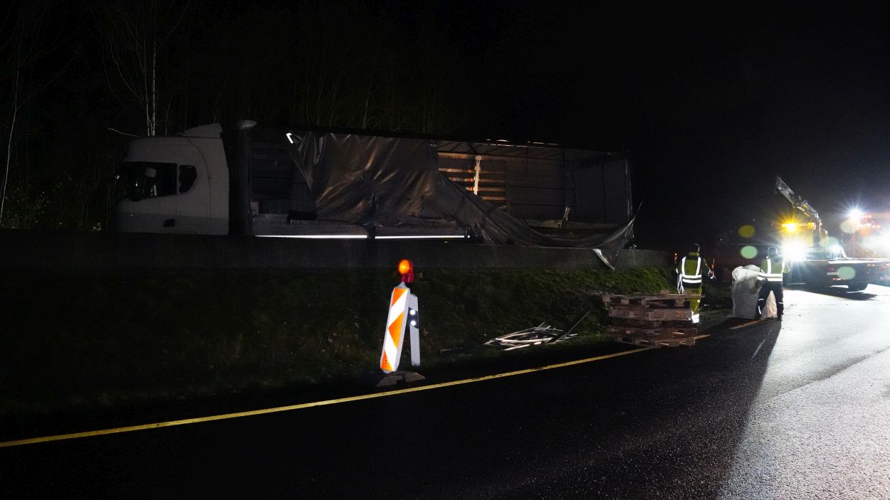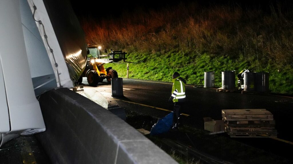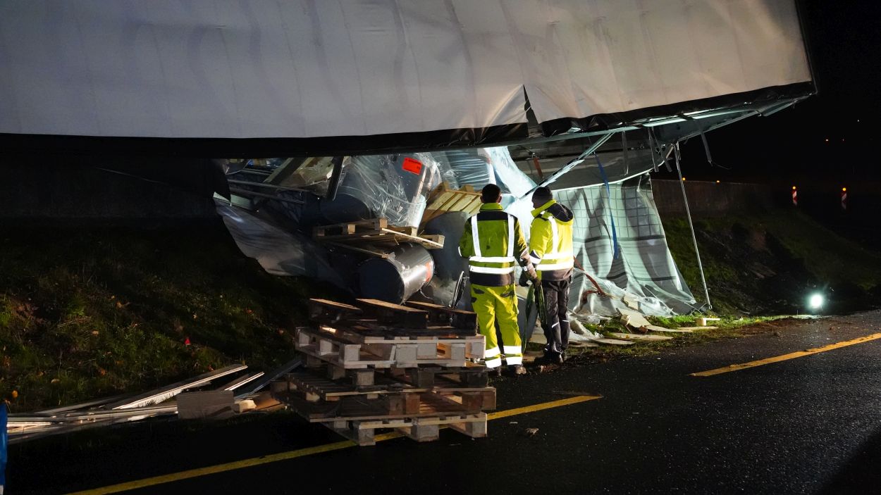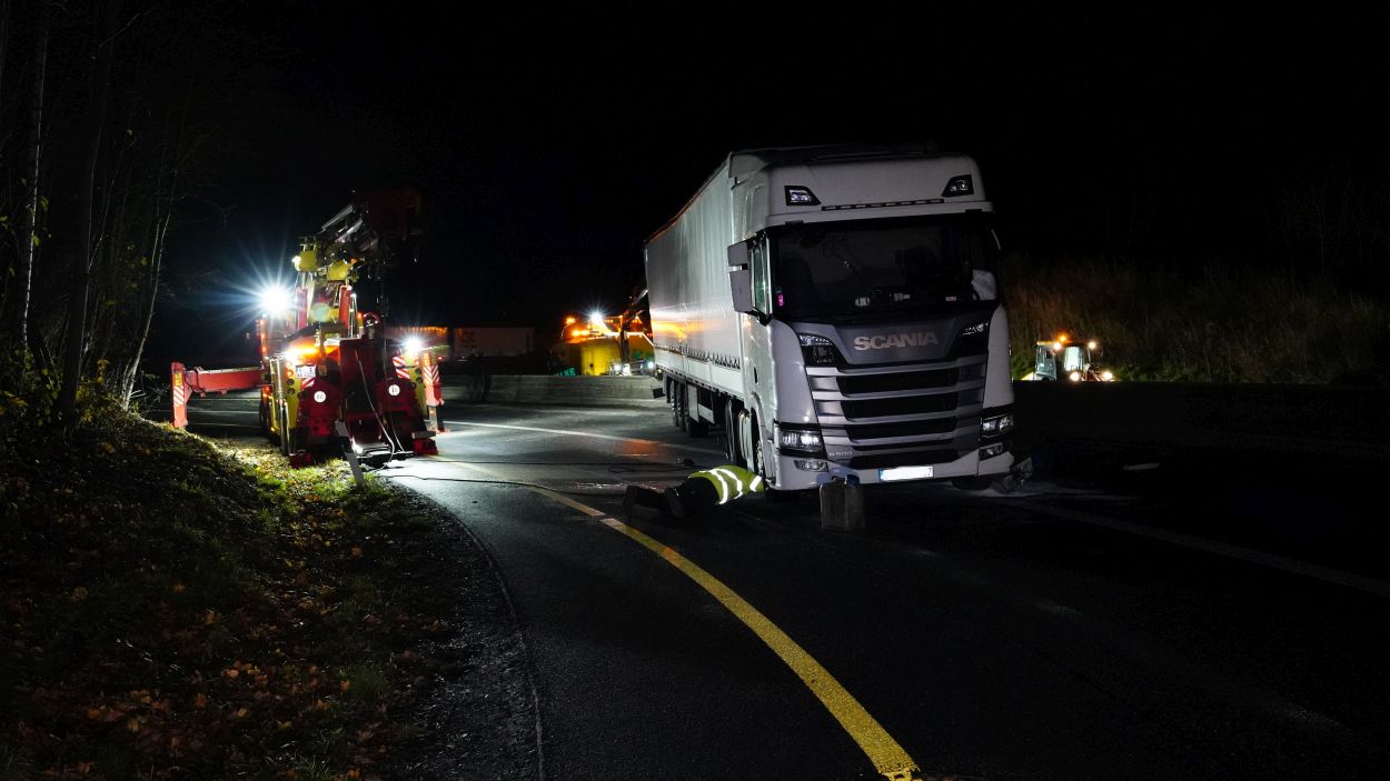 Kassel – Erneut kam es in der Nacht auf Donnerstag zu einem LKW-Unfall am Kasseler Westkreuz. Der Fahrer eines Sattelzuges befuhr gegen 20 Uhr die A44 von Dortmund kommen in Fahrtrichtung Kassel. Am Westkreuz wollte er dann von der A44 auf die A49. Vermutlich aufgrund nicht angepasste Geschwindigkeit kippte er in der Kurve auf die Fahrerseite um. Der mit rund 100 Fässern Schmelzklebstoff beladene Anhänger kippte teilweise über die Betonleitplanke und entlud sich. Der Fahrer blieb unverletzt. Die Bergungsarbeiten waren sehr aufwendig und zogen sich bis in die Morgenstunden. Die Auffahrt A44 auf die A49 in Fahrtrichtung Kassel sowie A49 auf die A44 in Fahrtrichtung Dortmund war für mehrere Stunden voll gesperrt.