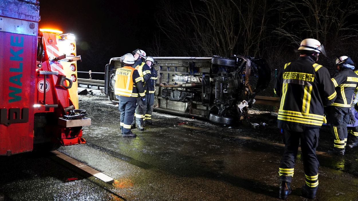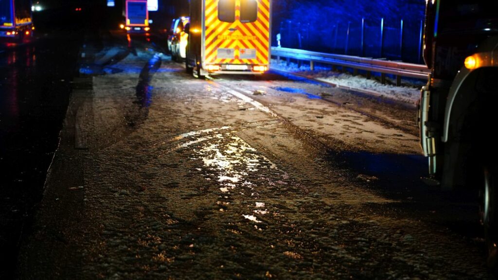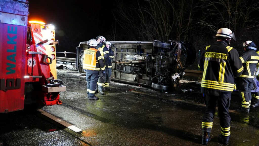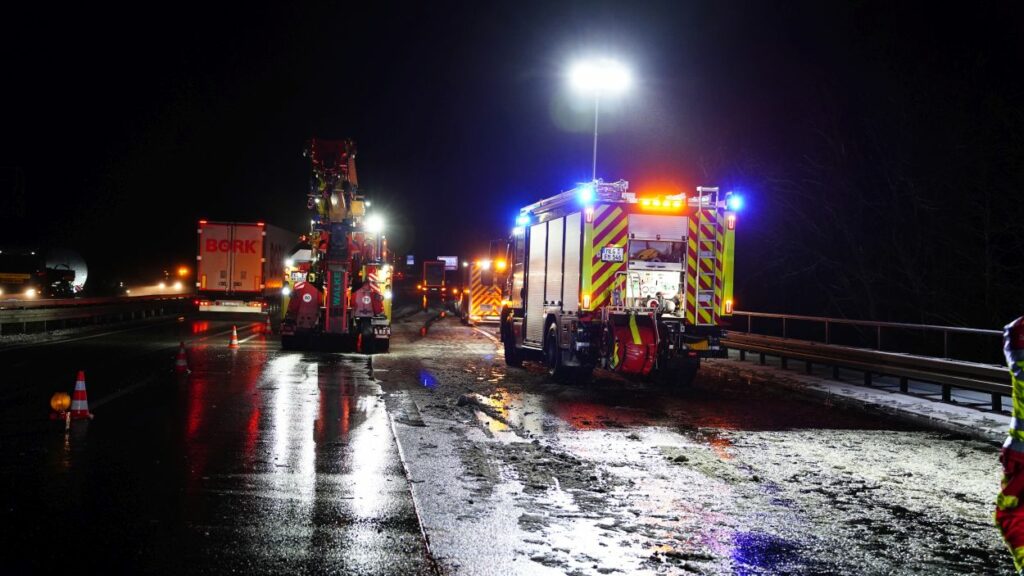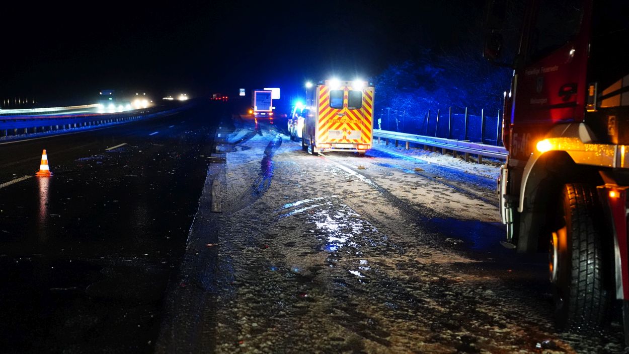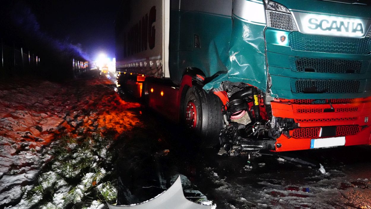 Melsungen – Auf der A7 zwischen Melsungen und Malsfeld kam es in der Nacht auf Mittwoch zu einem tödlichen Verkehrsunfall. Der 20-jährige Fahrer eines Sprinters befuhr gegen 3 Uhr die A7 von Kassel in Fahrtrichtung Bad Hersfeld. Kurz nach der Anschlussstelle Melsungen änderte sich plötzlich das Wetter und die Fahrbahn war mit Schnee bedeckt. Der Sprinter-Fahrer fuhr auf der mittleren von drei Fahrspuren an einem LKW vorbei und geriet ins Schleudern. Der Sprinter kam auf die Fahrspur vom LKW und stieß Frontal mit ihm zusammen. Durch die Wucht des Aufpralls kippte der Sprinter um und klemmte den Fahrer, der nicht angeschnallt war, unter sich ein. Der alarmierte Rettungsdienst konnte nur noch den Tod des 20-Jährigen feststellen. Um die Person zu Bergen musste ein Bergungsdienst den Sprinter anheben. Erst dann konnte die Feuerwehr den Fahrer befreien. Ein Gutachter wurde in die Unfallermittlungen mit einbezogen. Die polizeilichen Ermittlungen haben zudem ergeben, dass die Reifen abgefahren waren und nicht mehr für die Witterung geeignet waren. Der Verkehr konnte einspurig an der Unfallstelle vorbeigeleitet werden.