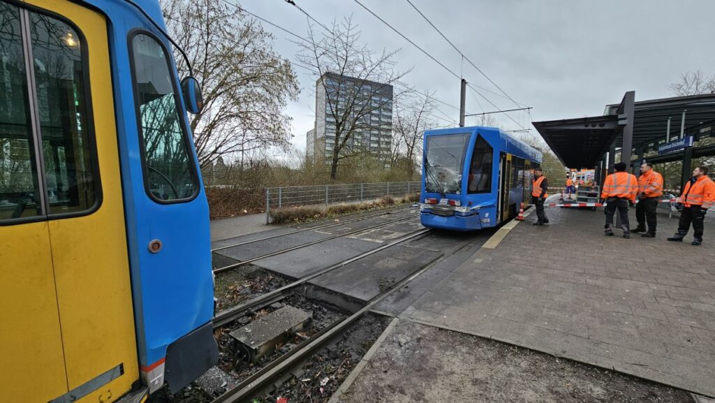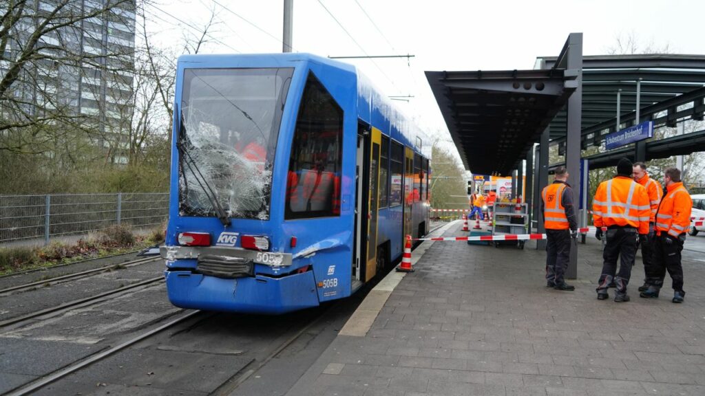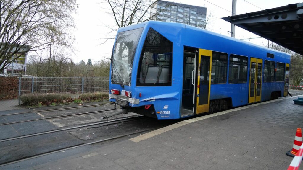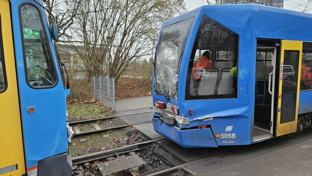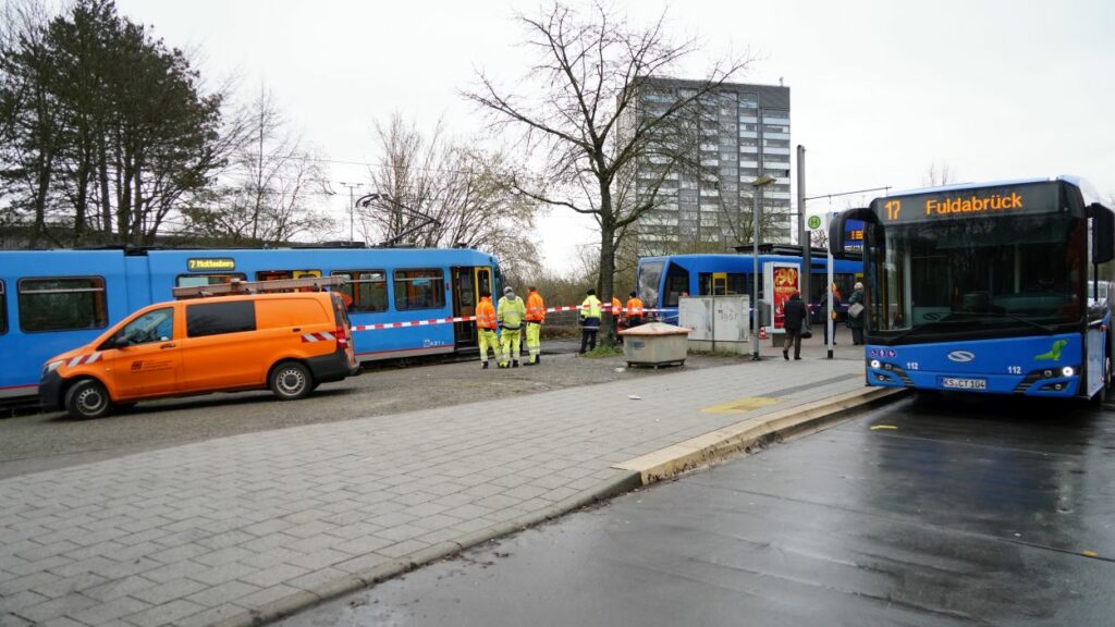 Kassel – Am Freitagmorgen ereignete sich in Kassel ein Verkehrsunfall zwischen zwei Straßenbahnen. Gegen 08:10 Uhr kollidierte eine Straßenbahn aus bislang ungeklärter Ursache mit einer bereits an der Haltestelle „Schulzentrum Brückenhof“ stehenden Straßenbahn. In der auffahrenden Tram wurden zwölf Fahrgäste in Alter zwischen 12 und 50 Jahren, darunter mehrere Schüler, die sich auf dem Schulweg befanden, leicht verletzt. Vier der Verletzten wurden vorsorglich in ein Krankenhaus gebracht. Auch der 30-jährige Straßenbahnfahrer wurde leicht verletzt und erlitt einen Schock. Aufgrund der Bergungsarbeiten war der betroffene Bahnabschnitt mehrere Stunden lang gesperrt. Die Gesamtschadenshöhe an den beiden Schienenfahrzeugen beläuft sich nach ersten Schätzungen auf einen hohen sechsstelligen bis siebenstelligen Betrag.