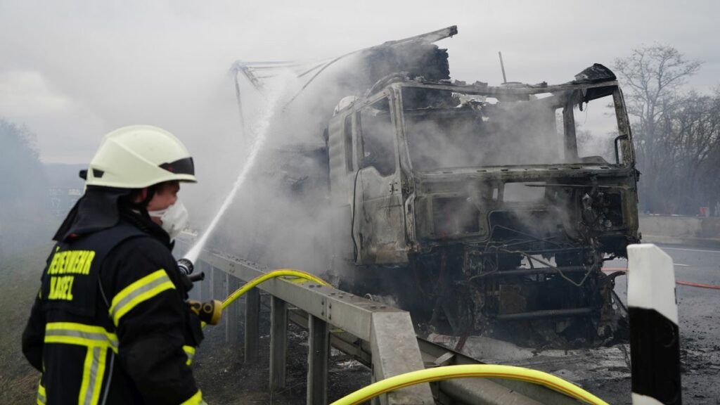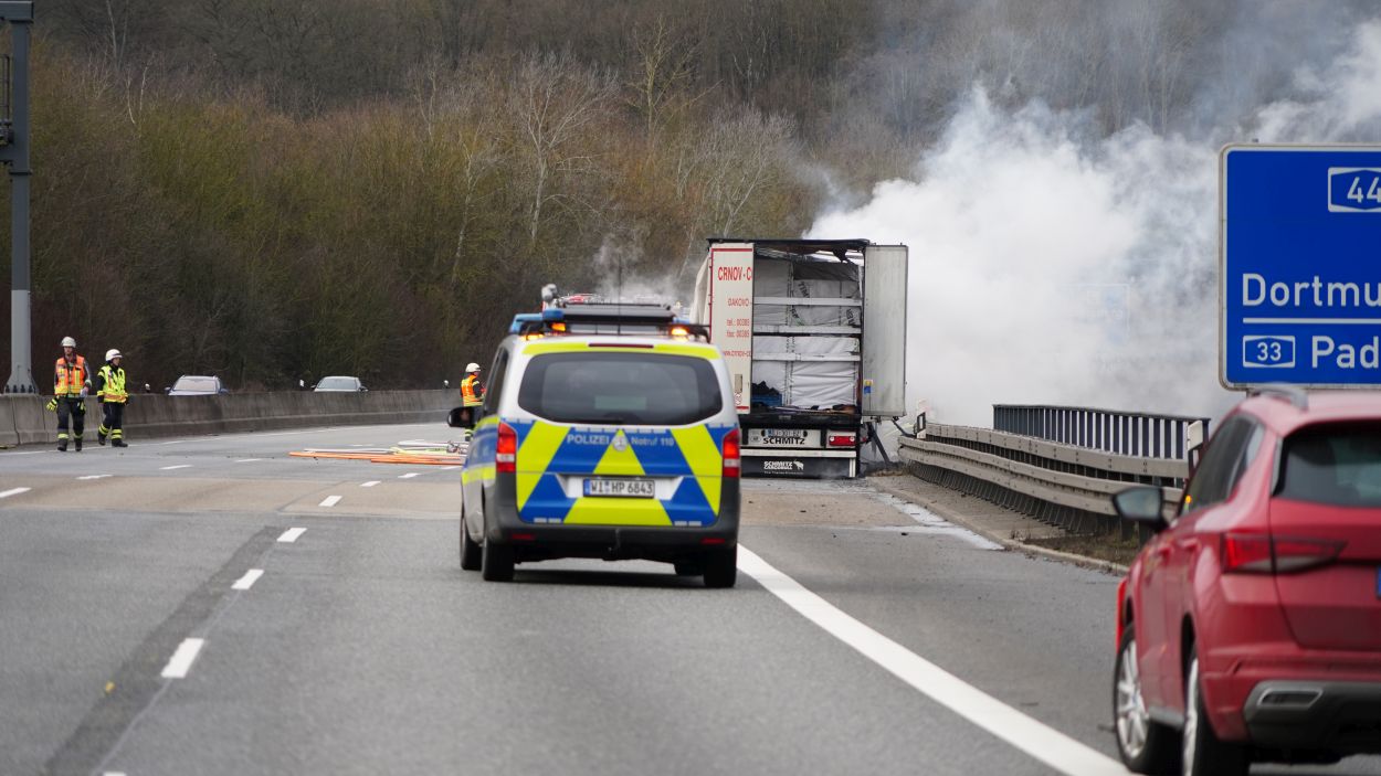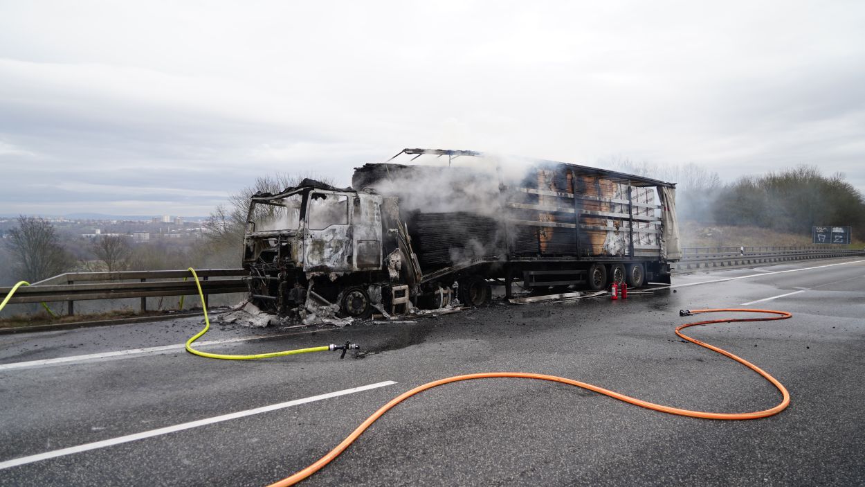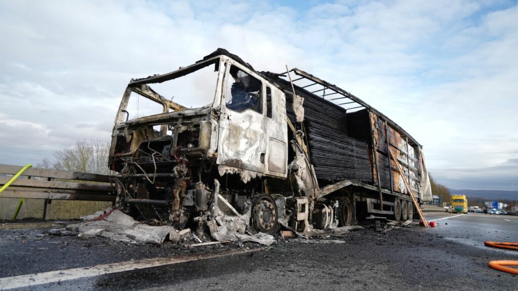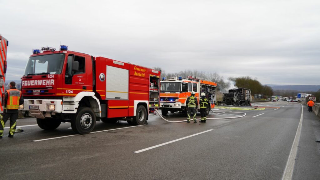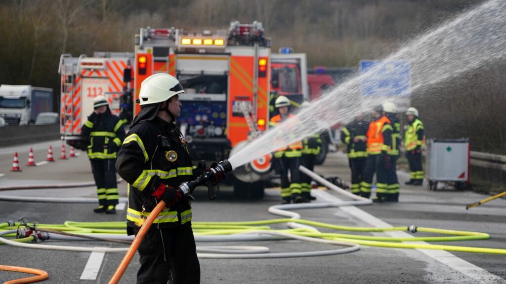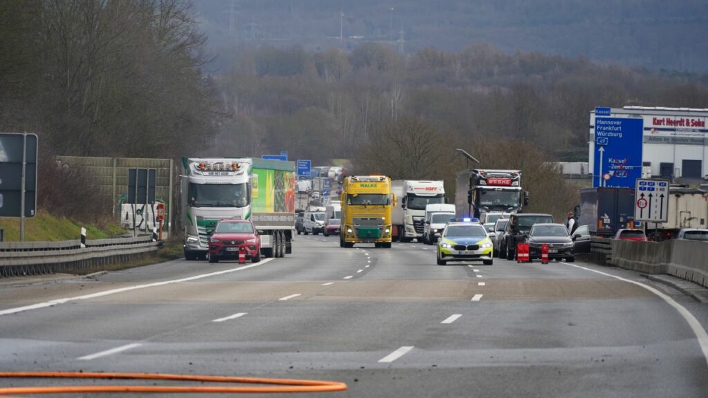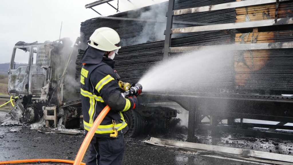 Kassel – Am Donnerstag gegen 12 Uhr brach auf der A44 ein Brand in einem Lkw aus. Zwischen den Anschlussstellen Kassel West und Bad Wilhelmshöhe konnte der Fahrer eines mit Dachlatten beladenen Sattelzug noch rechtzeitig auf den Standstreifen fahren, bevor es Feuer fing. Erste Löschversuche scheiterten. Aufgrund der Baustellensituation am Westkreuz hatte die alarmierte Feuerwehr zunächst Schwierigkeiten, die Einsatzstelle zu erreichen. Als die Einsatzkräfte schließlich eintrafen, brannte die Zugmaschine sowie ein Teil der Ladung bereits lichterloh. Mit Unterstützung von drei Tanklöschfahrzeugen konnte die Wasserversorgung für die Löscharbeiten sichergestellt werden. Um die letzten Glutnester zu erreichen, wurde ein Teleskoplader angefordert, um die Holzlatten abzuladen. Neben der Berufsfeuerwehr Kassel war auch die Feuerwehr Baunatal mit einem Tanklöschfahrzeug im Einsatz. Die A44 in Fahrtrichtung Dortmund blieb für mehrere Stunden voll gesperrt, was zu erheblichen Verkehrsbehinderungen rund um Kassel führte.