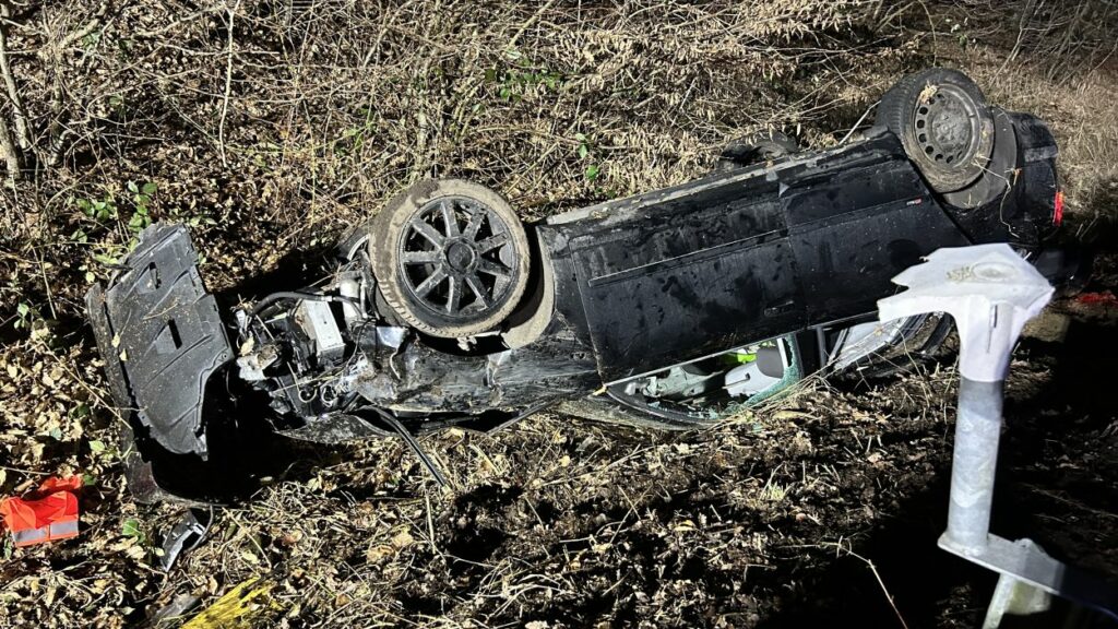 Kaufungen – Am Dienstag gegen 22:30 Uhr hatte ein Autofahrer einen verlassenen PKW auf dem Dach liegend neben der Straße gemeldet. Da nicht ausgeschlossen werden konnte, dass sich der Fahrer oder mögliche Insassen in einer hilflosen Lage befanden, alarmierte die Polizei die Feuerwehr Kaufungen nach. Trotz umfangreiche Suchmaßnahmen durch zahlreiche Polizeistreifen und die Feuerwehr konnte im Nahbereich zunächst keine Person aufgefunden werden. Daraufhin wurde die Feuerwehr Fuldatal mit ihrer Drohnenstaffel hinzugezogen. Rund drei Stunden nach dem der Unfall gemeldet wurde, konnte mithilfe der Drohne den Mann auf einen Hochsitz im Wald lokalisiert werden. Der 32-jährige Mann blieb bei dem Unfall unverletzt, jedoch stand er unter dem Einfluss von Alkohol, was offenbar auch der Grund für seine Flucht war. Der 32-Jährige musste mit zur Polizeidienststelle, wo sein Führerschein beschlagnahmt und Blutproben entnommen wurden. Am Audi entstand Totalschaden und wurde sichergestellt. Rund 40 Einsatzkräfte von Polizei, Feuerwehr und Rettungsdienst unterstützten die Suchmaßnahmen. Die K7 war wegen des Unfalls bis 2:30 Uhr voll gesperrt.