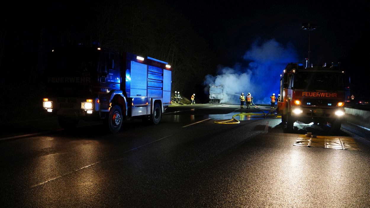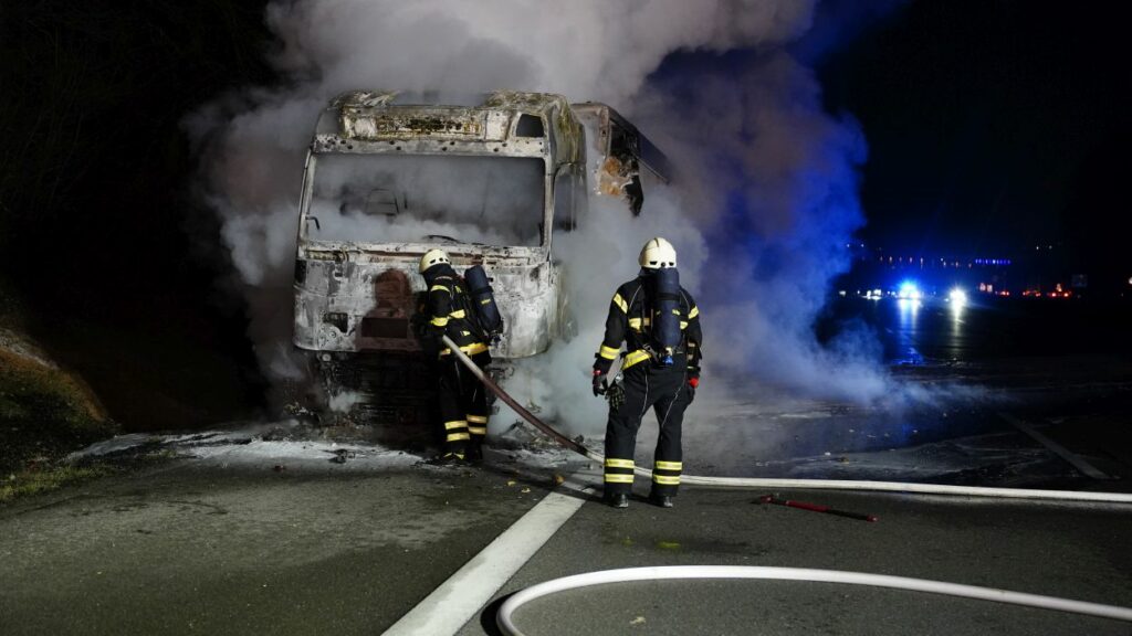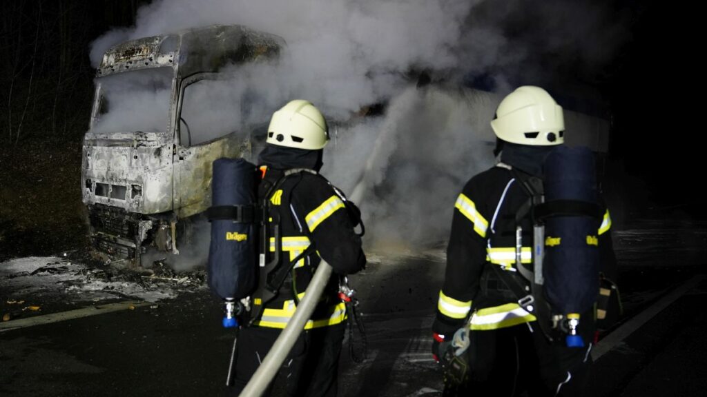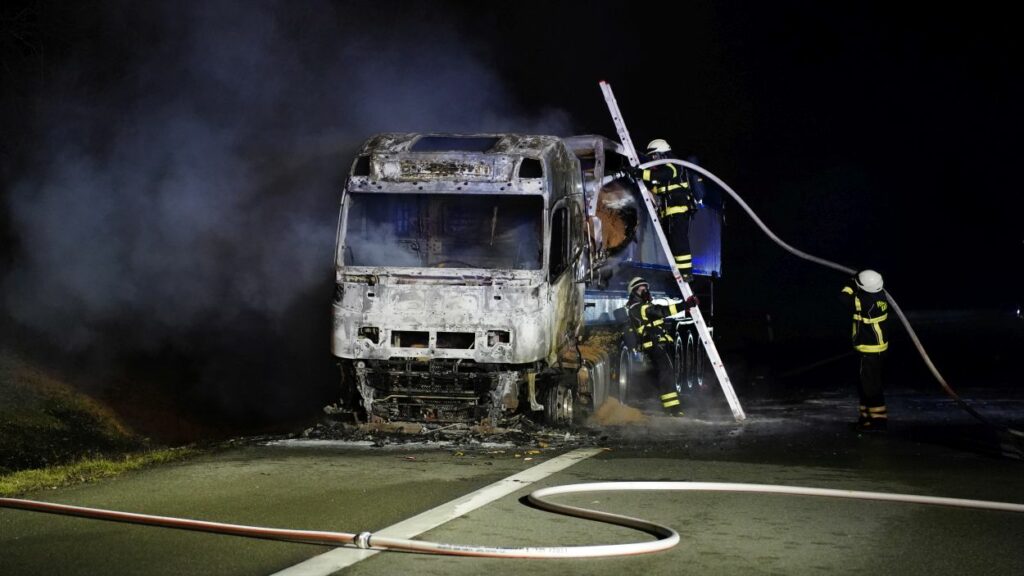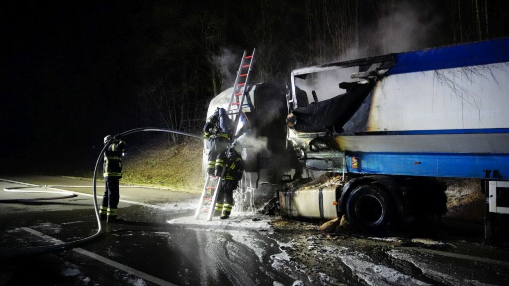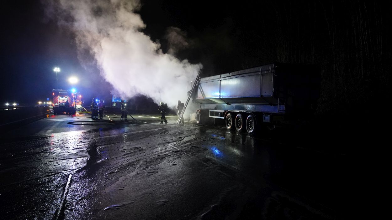 KS: Holzpellets-LKW geriet auf A44 in Brand