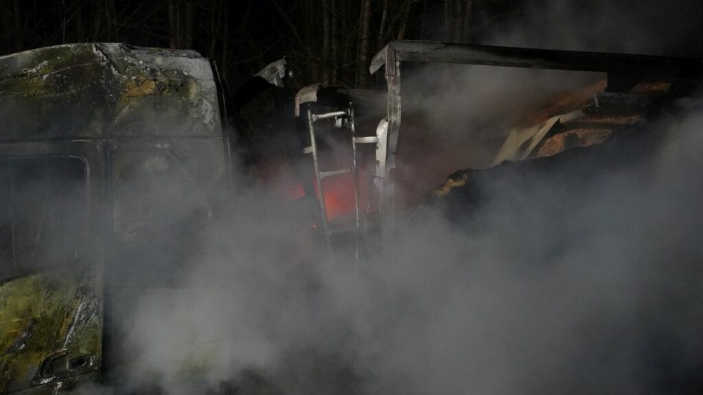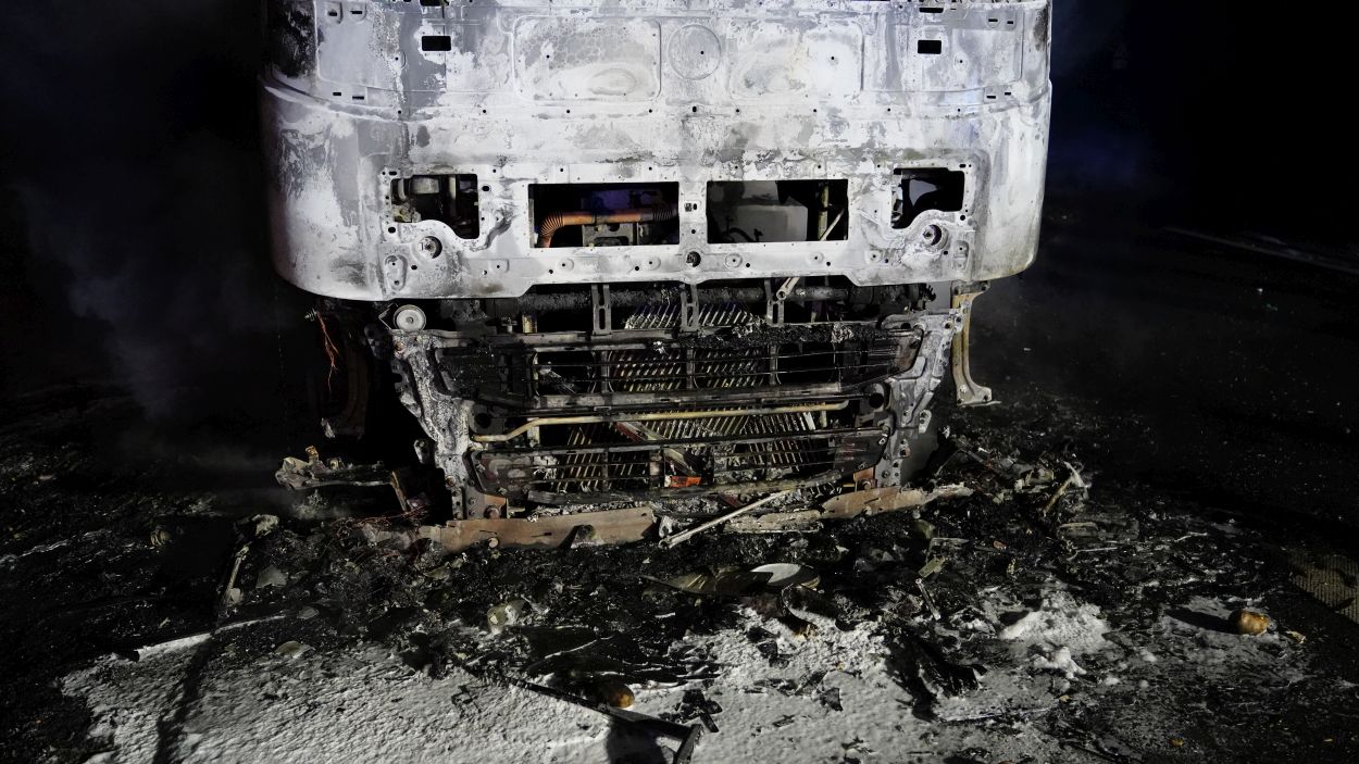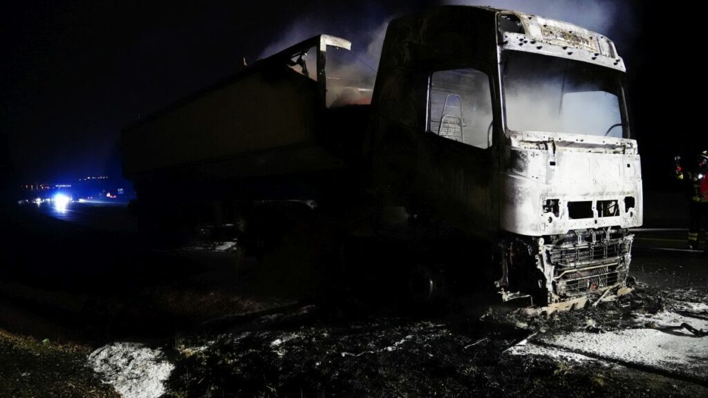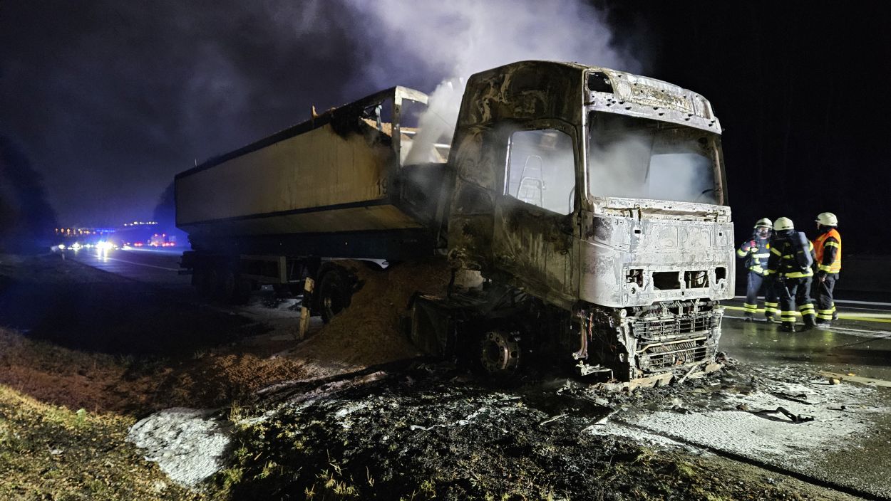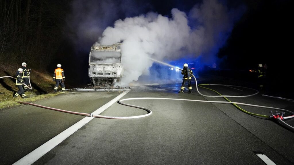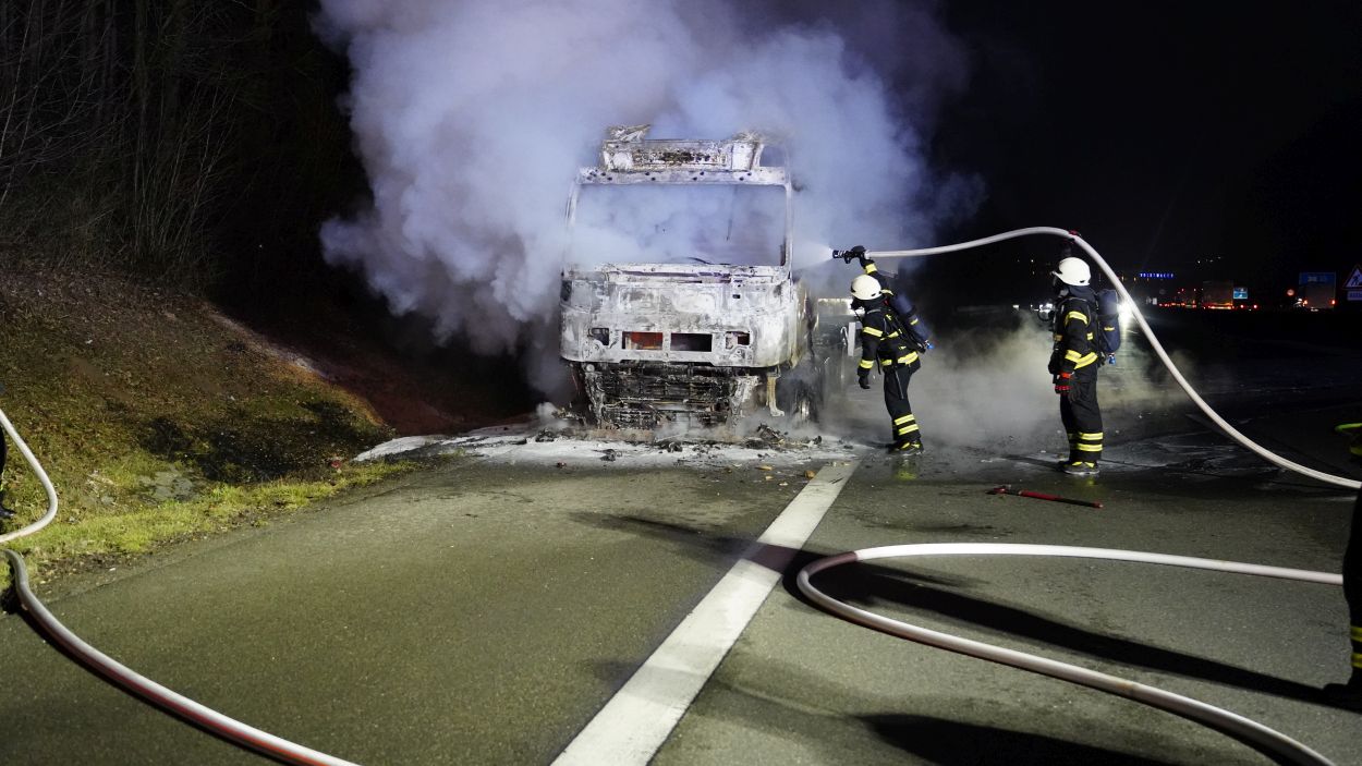 KS: Holzpellets-LKW geriet auf A44 in Brand