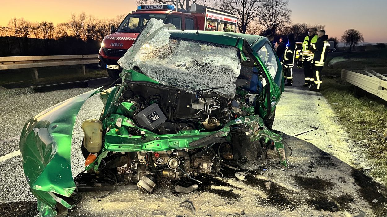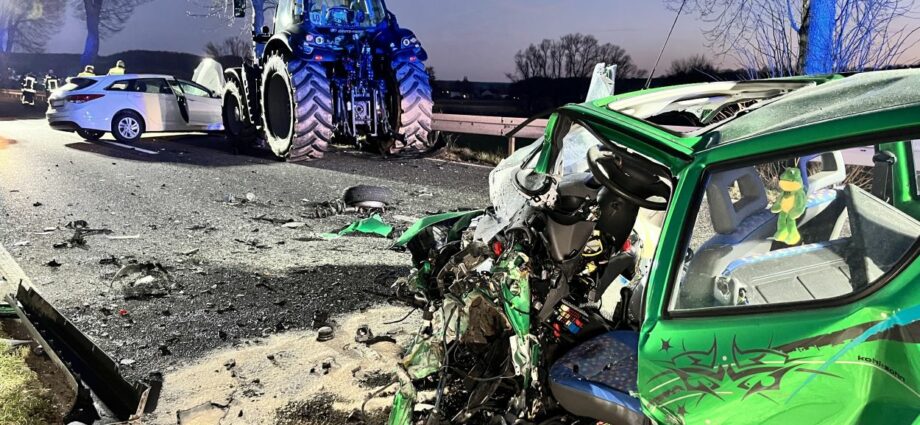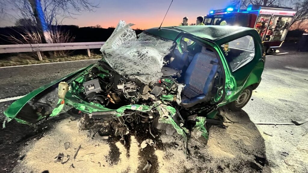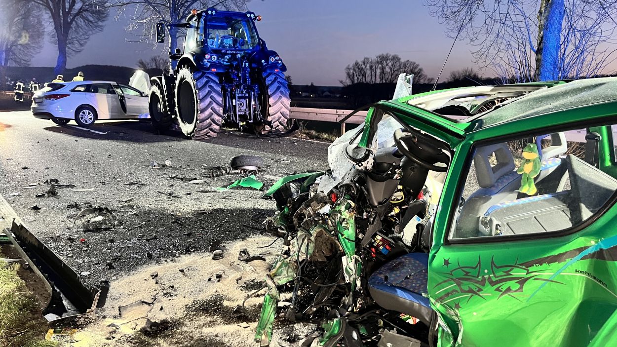 Schrecksbach. Zu einem schweren Verkehrsunfall kam es am Donnerstagabend auf der Bundesstraße 254 zwischen Willingshausen-Zella und Röllshausen (Schwalm-Eder-Kreis). Dabei kam eine Person ums Leben, zwei weitere Verkehrsteilnehmer wurden verletzt. Ersten Erkenntnissen von der Unfallstelle zur Folge, beabsichtigte ein aus Richtung Schwalmstadt kommender 45-jähriger Verkehrsteilnehmer aus Schrecksbach mit seinem Fahrzeug einen auf der Bundesstraße fahrenden Traktor zu überholen. Aus bislang ungeklärten Umständen übersah der Mann dabei einen entgegenkommenden 62-jährigen PKW Fahrer aus Schwalmstadt. Durch die heftige Frontalkollision wurde der Schwalmstädter in seinem Fahrzeug massiv eigeklemmt. Für ihn kam leider jede Hilfe zu spät. Der Mann verstarb noch an der Unfallstelle. Der überholende Schrecksbacher wurde nach Angaben der Polizei schwer verletzt. Seine Mitfahrerin sowie der Fahrer der landwirtschaftlichen Zugmaschine wurden leicht verletzt.