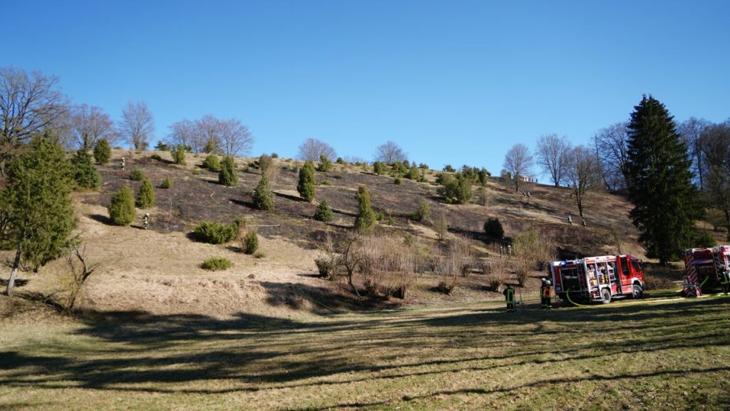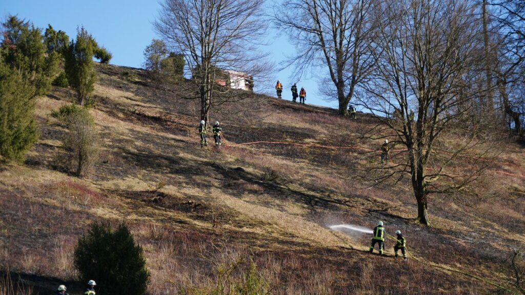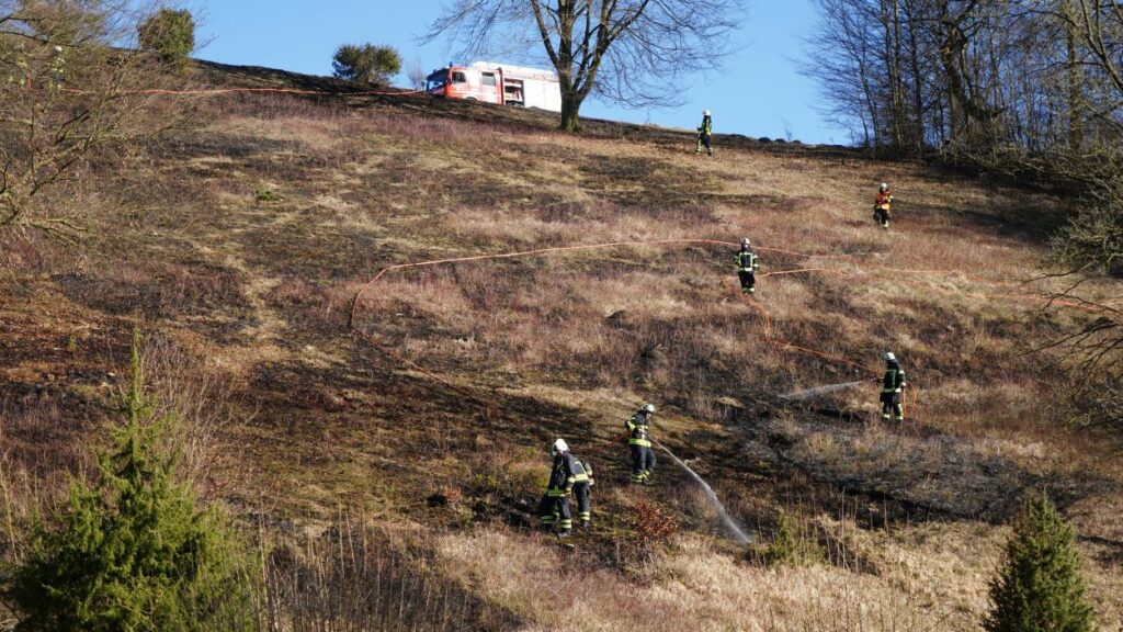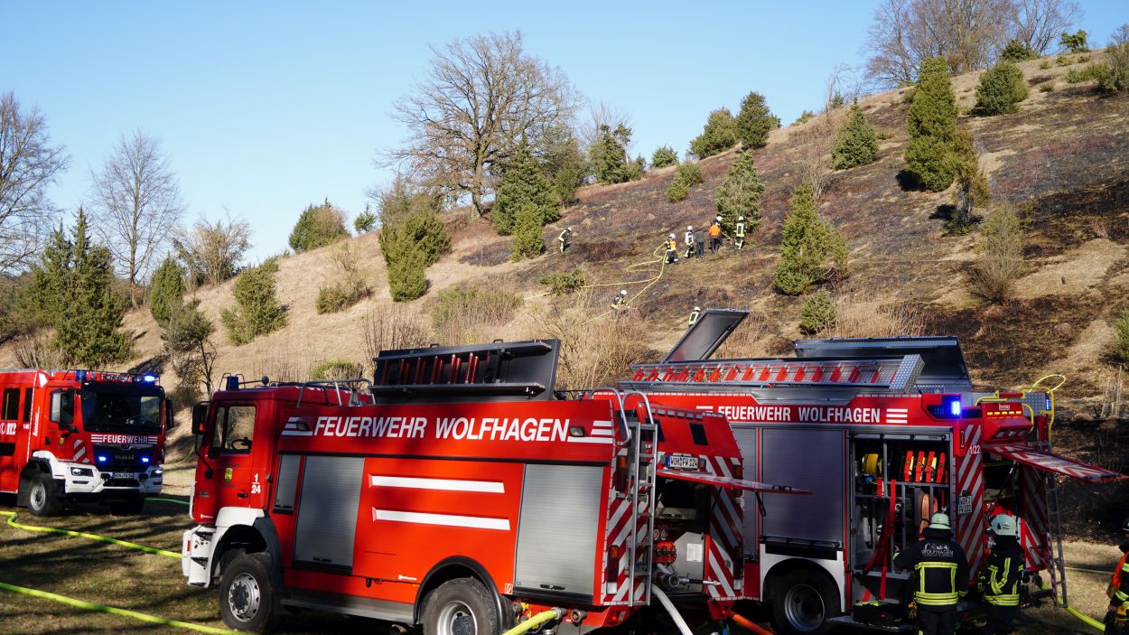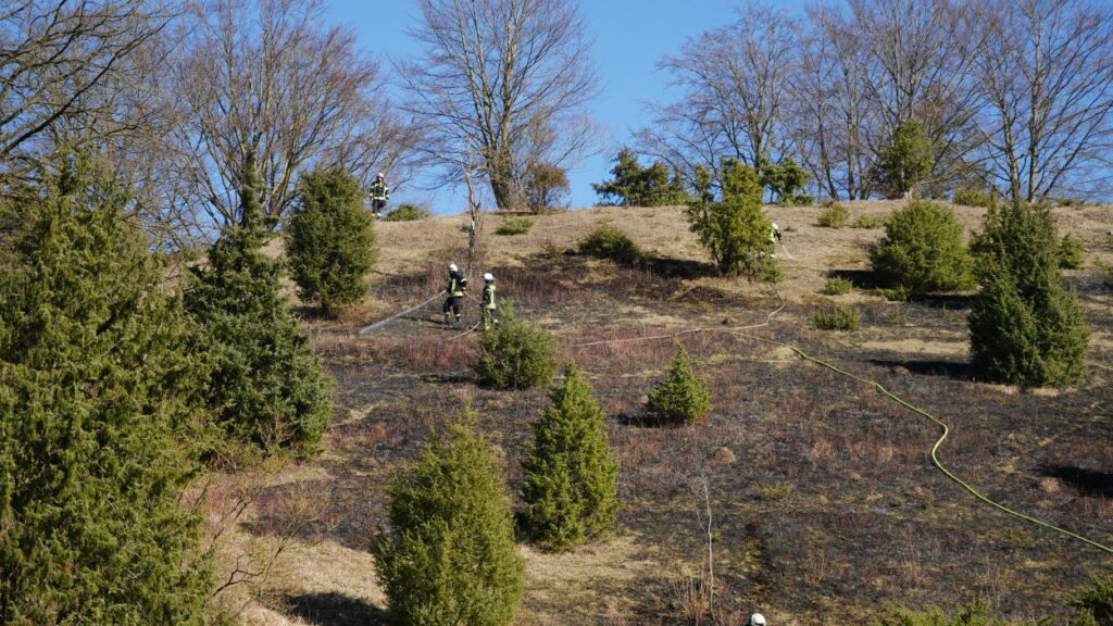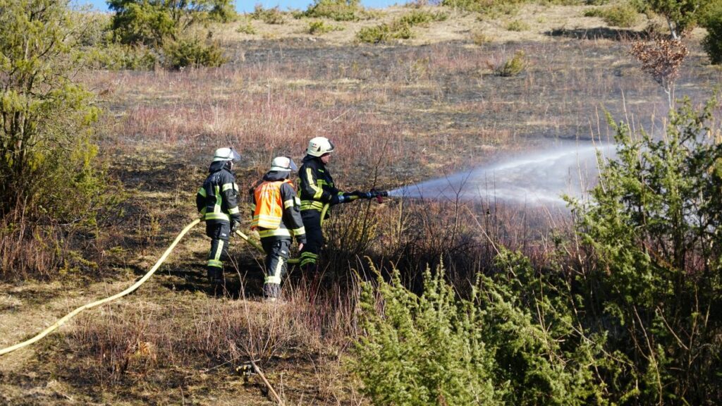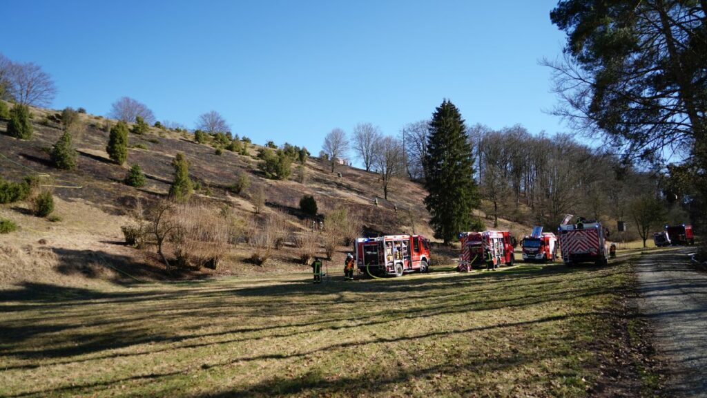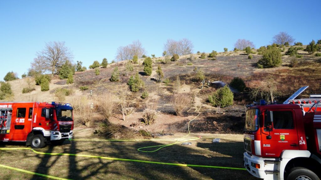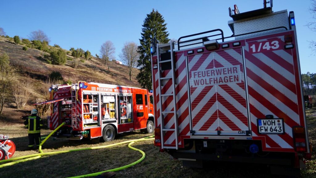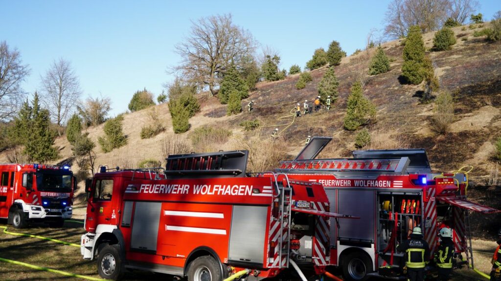 Wolfhagen – Am Montag ereignete sich gegen 14 Uhr ein Waldbrand/Vegetationsbrand im Bereich Viesebeck. Der Brand wurde durch ein Nutzfeuer ausgelöst, das zunächst unter Kontrolle schien, jedoch aus bislang noch unbekannten Gründen außer Kontrolle geriet. Das Feuer griff rasch auf das angrenzende Hanggebiet über. Der Wind und die anhaltende Trockenheit trugen dazu bei, dass sich das Feuer in kürzester Zeit ausbreiten konnte. Die alarmierte Feuerwehr konnte schnell vor Ort eingreifen und mit einer Riegelstellung verhindern, dass sich die Flammen weiter über den Hang hinweg auf das dahinterliegende Waldstück ausbreiteten.