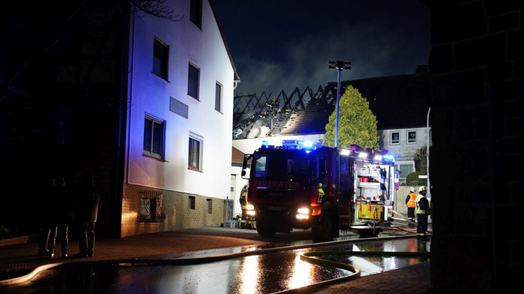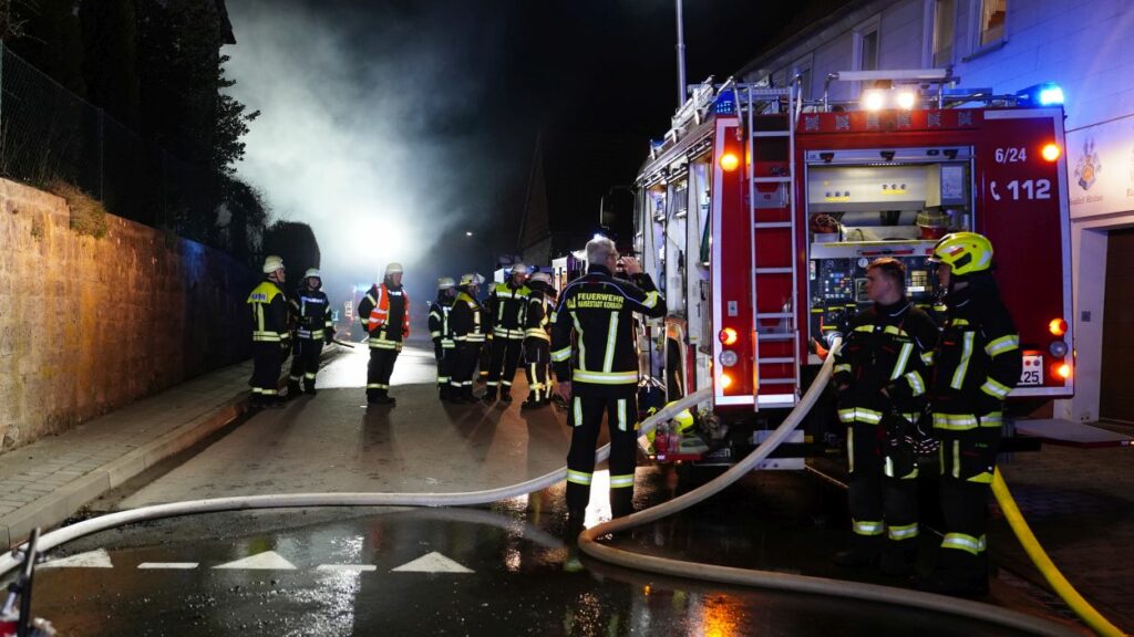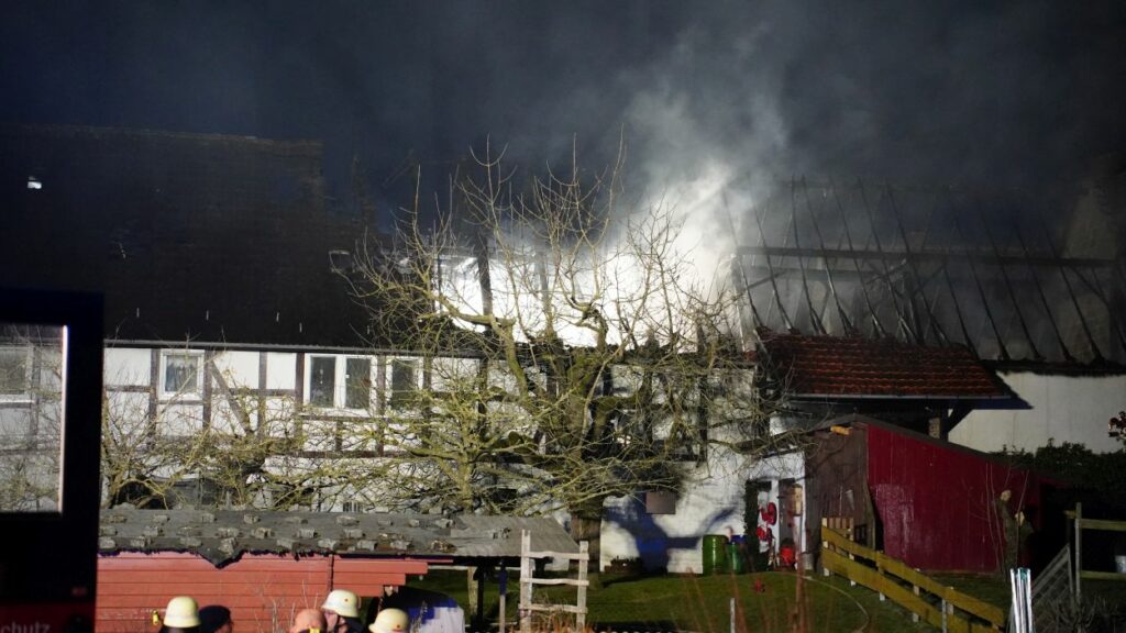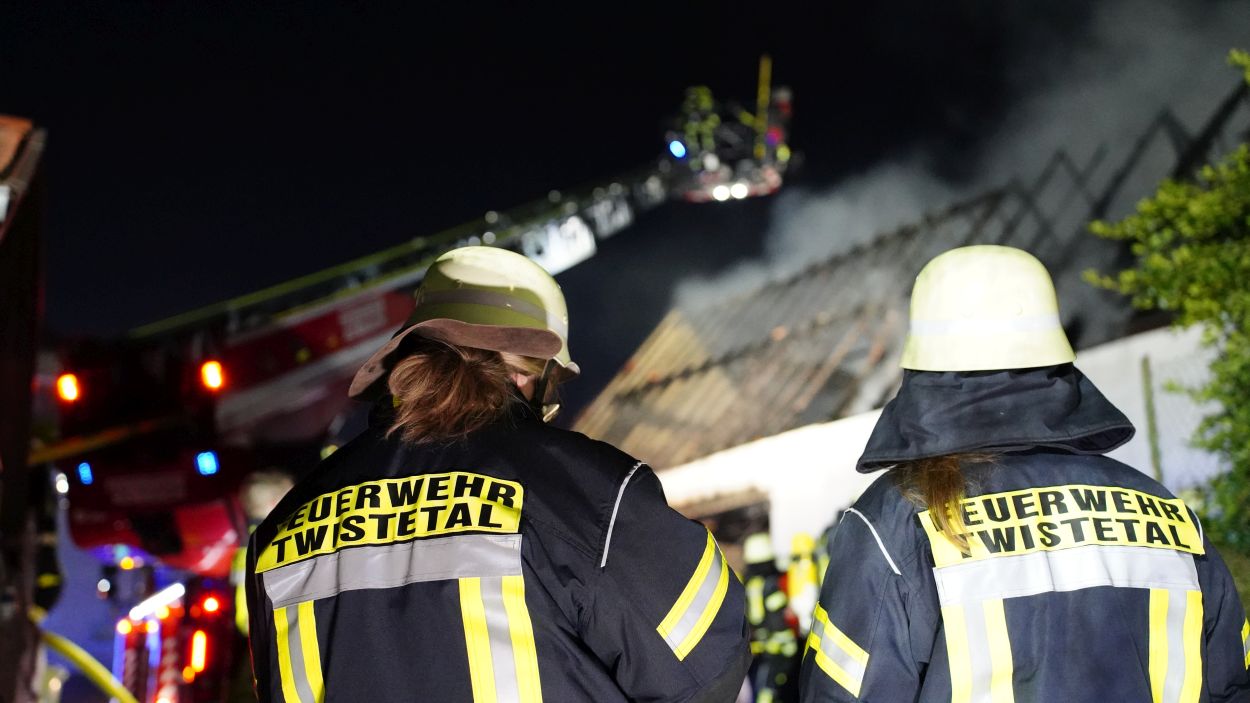 Twistetal – Am Mittwochabend, gegen 18 Uhr, wurde die Feuerwehr zu einem Brand in Berndorf alarmiert. Bereits auf der Anfahrt der Einsatzkräfte waren hohe Flammen aus dem Dachstuhl eines Gebäudes sichtbar, wodurch das Alarmstichwort auf F3 erhöht wurde. Bei der Ankunft vor Ort stellte sich heraus, dass der Brand in einer Scheune war, die mit einem angrenzenden Wohnhaus verbunden war. Der Scheunenbereich stand zu diesem Zeitpunkt bereits in Vollbrand. Die Feuerwehr setzte alles daran, das Wohnhaus vor den Flammen zu schützen. Trotz intensiver Löschversuche konnte das Wohnhaus nur teilweise gerettet werden. Durch das eingeleitete Löschwasser ist es derzeit jedoch unbewohnbar, konnte aber vor den Flammen geschützt werden. Die Bewohner des Hauses konnten sich rechtzeitig retten.