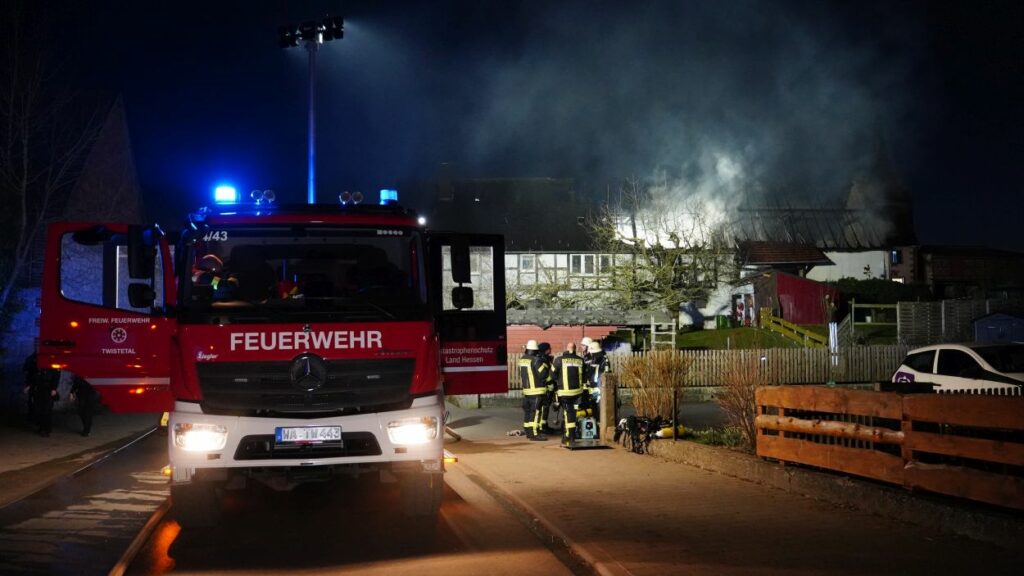 Eine Bewohnerin des Hauses erlitt eine Rauchgasvergiftung und musste in ein Krankenhaus eingeliefert werden. Besonders problematisch gestalteten sich die Löscharbeiten im Stallbereich zwischen Scheune und Wohnhaus, da dort Kleidungsstücke für die ukrainische Flüchtlingshilfe gelagert waren, die beim Brand völlig zerstört wurden. Dies erschwerte zusätzlich die Löscharbeiten, da das Brandgut die Arbeit der Feuerwehr behindert hatte. Ein weiterer kritischer Punkt war die einsturzgefährdete Scheune. Aufgrund der Gefahr eines Zusammenbruchs war ein Innenangriff nicht mehr möglich. Stattdessen wurde Schaum eingesetzt, um die Brandnester von außen zu löschen. Die Feuerwehr Twistetal erhielt Unterstützung von der Feuerwehr Korbach sowie der Feuerwehr Bad Arolsen, mit insgesamt rund 80 Einsatzkräften. Die Löscharbeiten zogen sich bis in die Nacht hinein. Die Brandursache ist derzeit noch unklar, die Polizei hat die Ermittlungen aufgenommen.