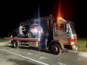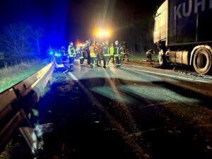 Beiseförth – Am Mittwochabend, dem 26. März 2025, ereignete sich gegen 18:30 Uhr auf der B83 zwischen Binsförth und Beiseförth ein schwerer Verkehrsunfall. Aus bislang ungeklärter Ursache kollidierten ein Lkw und ein Pkw frontal miteinander. Bei dem Unfall zog sich der Fahrer des Pkw schwere Verletzungen zu, weshalb ein Rettungshubschrauber zum Einsatzort entsandt wurde. Die Insassen des Lkw blieben glücklicherweise unverletzt. Die Bundesstraße war für die Rettungs- und Bergungsarbeiten mehrere Stunden vollständig gesperrt. Die Firma Gün aus Melsungen wurde mit der Bergung beider Fahrzeuge beauftragt. Wie es zu dem Unfall kam, soll ein Gutachter klären, der mit der Rekonstruktion des Unfallhergangs beauftragt wurde.