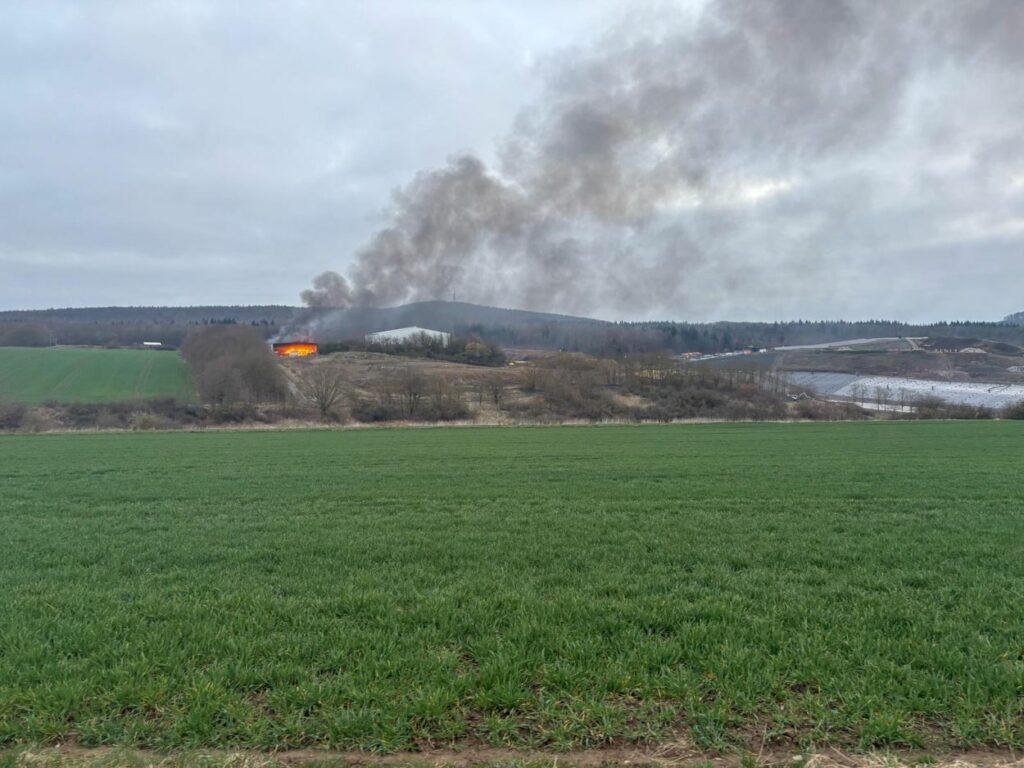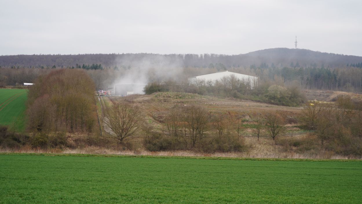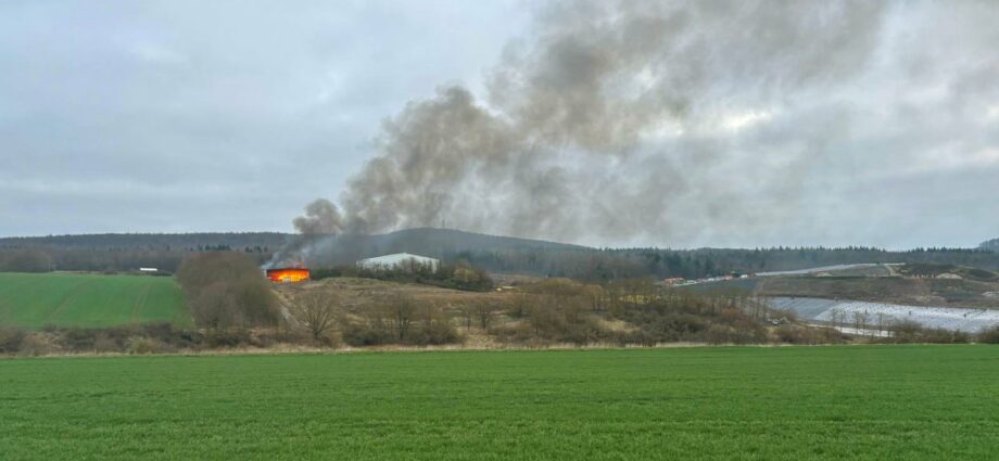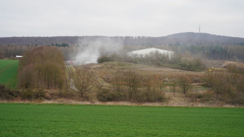 Hofgeismar – Am Donnerstagmorgen gegen 6 Uhr kam es zu einen Brand eines Restmüllhaufen auf der Mülldeponie in Hofgeismar. Das Feuer griff auch auf eine angrenzende Lagerhalle über. Rund 200 Kubikmeter Müll verbrannten. Die Löscharbeiten dauerten mehrere Stunden an. 70 bis 80 Feuerwehrleute waren im Einsatz. Der Sachschaden wird auf 150.000 – 200.000 Euro geschätzt. Zeitweise wurden die Anwohner gebeten, Fenster und Türen geschlossen zu halten.