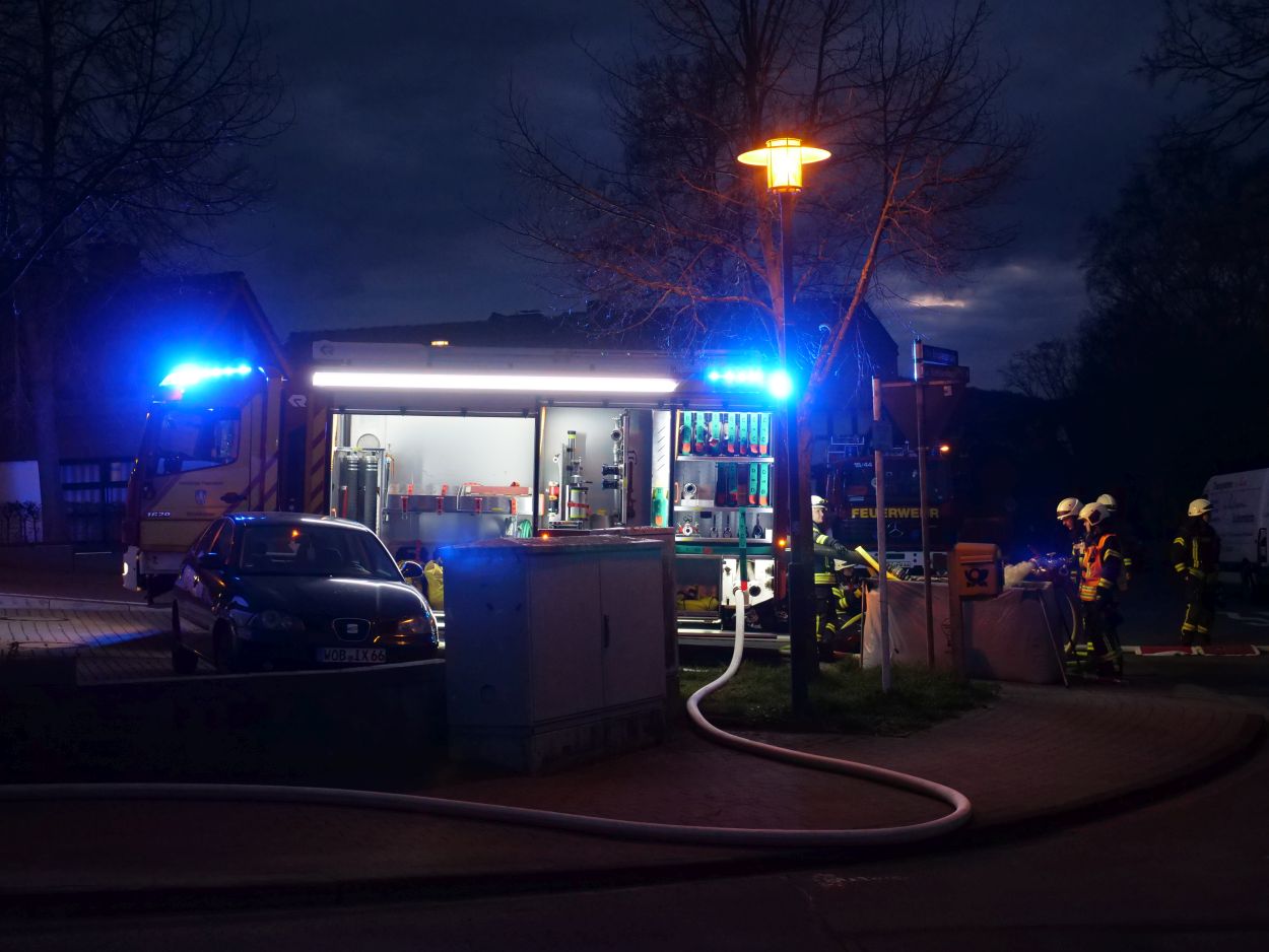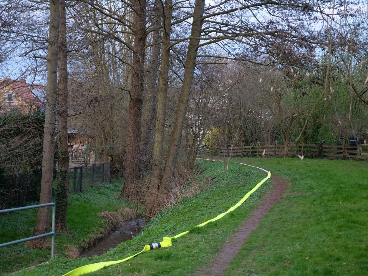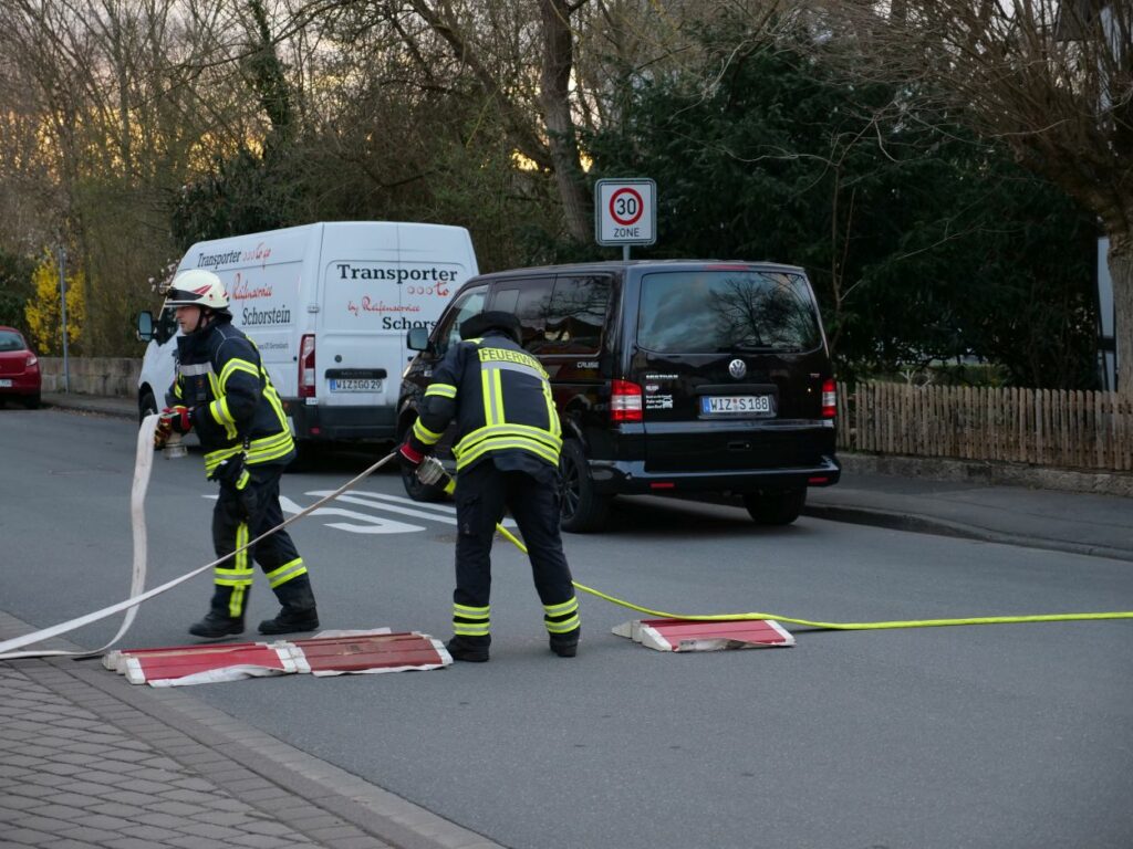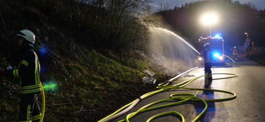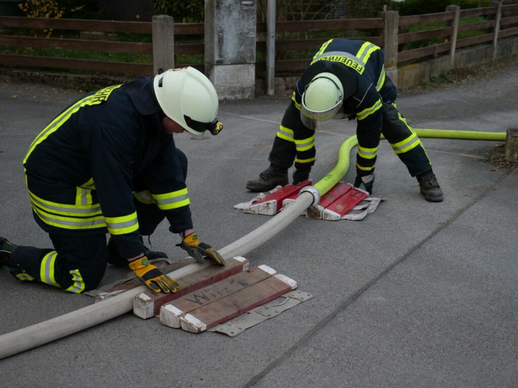 Witzenhausen – Am Dienstagabend stellten sich 70 Feuerwehrkräfte in Gertenbach einer anspruchsvollen Katastrophenschutzübung. Zwei Stunden lang trainierten sie den Ernstfall – von der Brandbekämpfung bis zum Hochwasserschutz. Zunächst wurde Löschwasser per Tauchpumpe aus der Werra entnommen und über 700 Meter zur Einsatzstelle transportiert. Anschließend galt es, zwei Brandherde am Bahndamm trotz schwieriger Geländeverhältnisse effektiv zu löschen. Gleichzeitig errichteten Einsatzkräfte mit Sandsäcken, Paletten und dem neuen Boxwall-System Schutzbarrieren gegen Hochwasser, um Gebäude zu sichern.