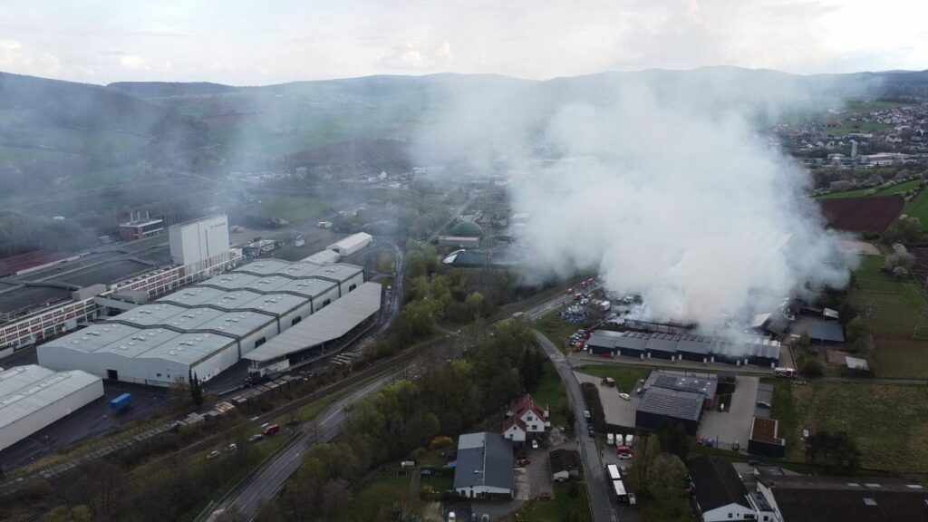 Bad Wildungen – Zu einem Großbrand kam es am Sonntagnachmittag in Bad Wildungen. Eine Halle eines Futtermittelunternehmens brannte bis auf die Grundmauern nieder. Über 70 Einsatzkräfte der Feuerwehren Bad Wildungen und Fritzlar kämpften Stunden gegen die Flammen an. Verletzt wurde glücklicherweise niemand. Am Sonntagnachmittag wurden die Einsatzkräfte der Feuerwehren Bad Wildungen gefordert. In der Berliner Straße kam es aus bislang ungeklärten Umständen zu einem Großbrand. Eine Halle eines Futtermittel Großhändlers brannte bis auf die Grundmauern nieder. Nachbargebäude anderer Betriebe konnten durch sogenannte Riegelstellungen geschützt und vor Schäden bewahrt werden.