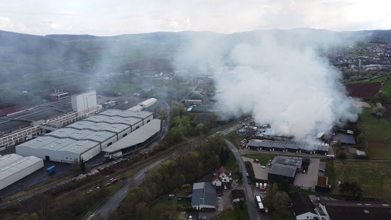 Lagerhalle bei Großbrand in Bad Wildungen zerstört