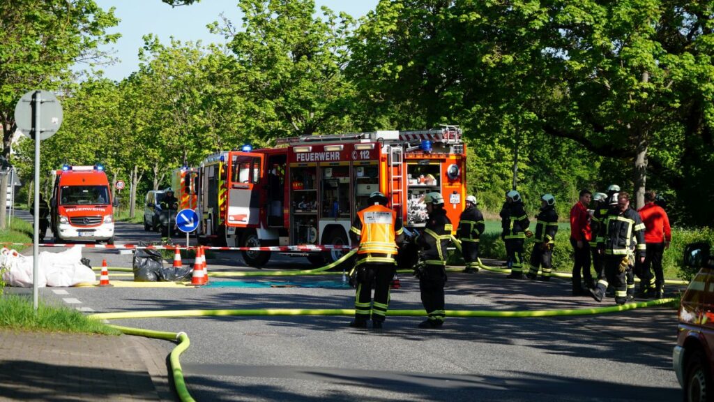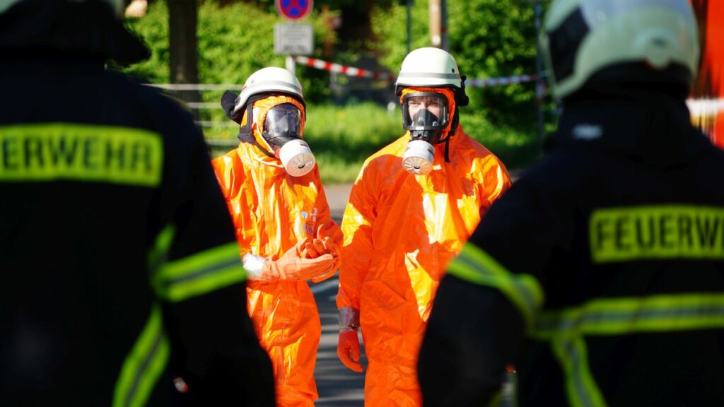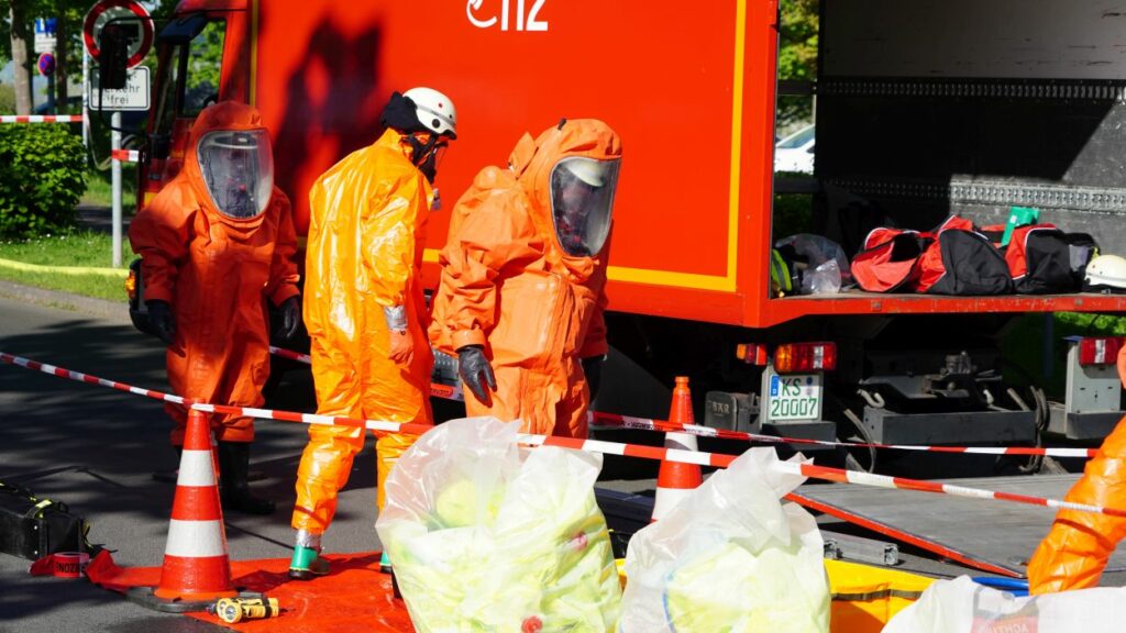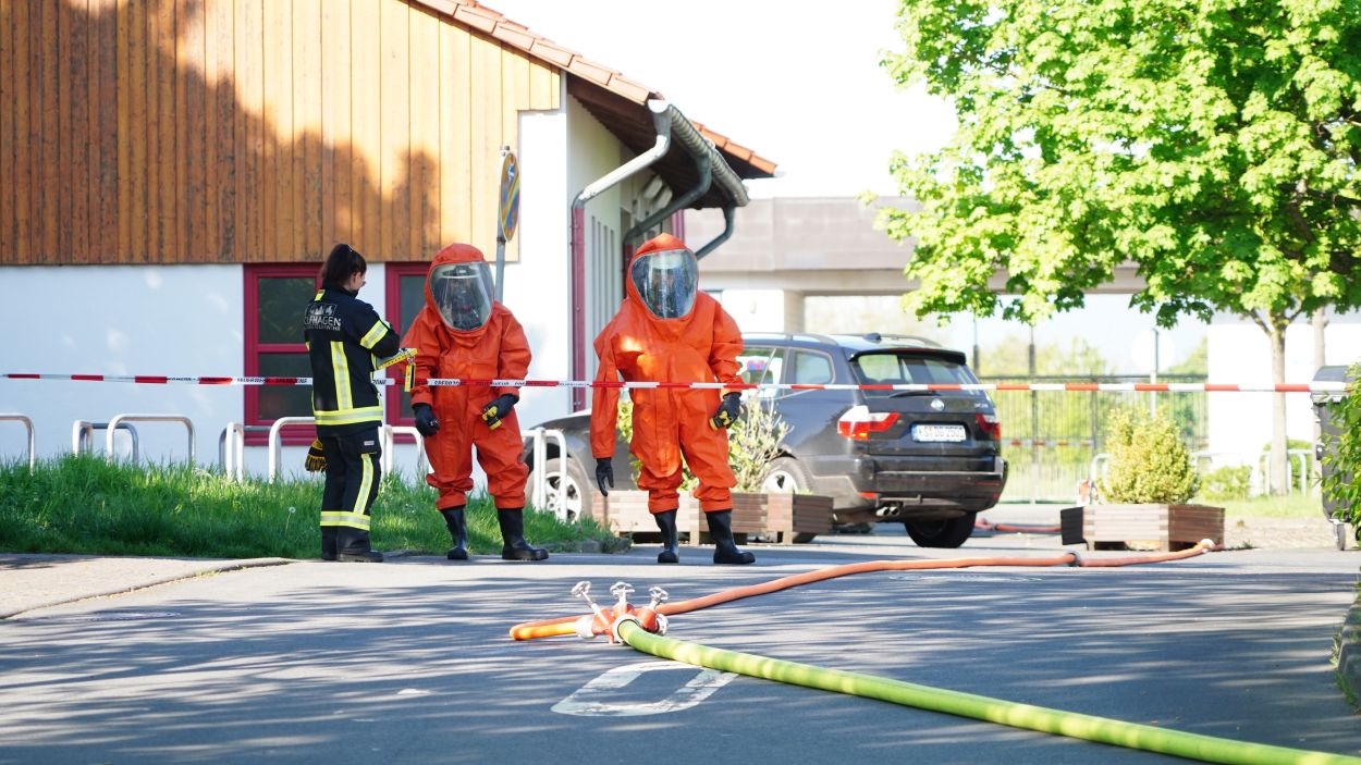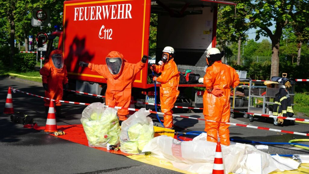 Lohfelden – Am frühen Montagmorgen kam es im Freibad Lohfelden zu einem gefährlichen Chlorgasaustritt. Gegen kurz nach 7 Uhr wurden die Einsatzkräfte alarmiert. Bereits beim Eintreffen der Feuerwehr war das austretende Chlorgas deutlich bis zur nahegelegenen Hauptstraße wahrnehmbar. Ein Trupp unter Chemikalienschutzanzügen (CSA) wurde zur Lageerkundung in das Gebäude geschickt. Im Technikraum konnte eine undichte Chlorgasflasche als Ursache ausgemacht werden. Diese war vermutlich durch einen technischen Defekt beschädigt worden, konnte jedoch zügig abgedreht werden. Im Außenbereich gelang es den Einsatzkräften, die ausgetretene Chlorgaswolke mittels eines Wassernebels zu binden.