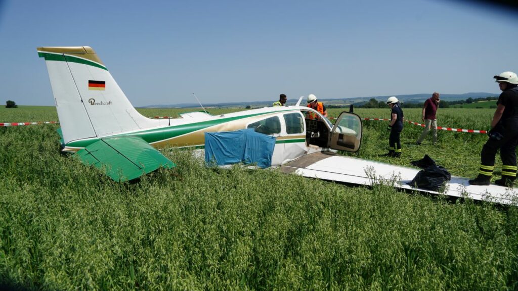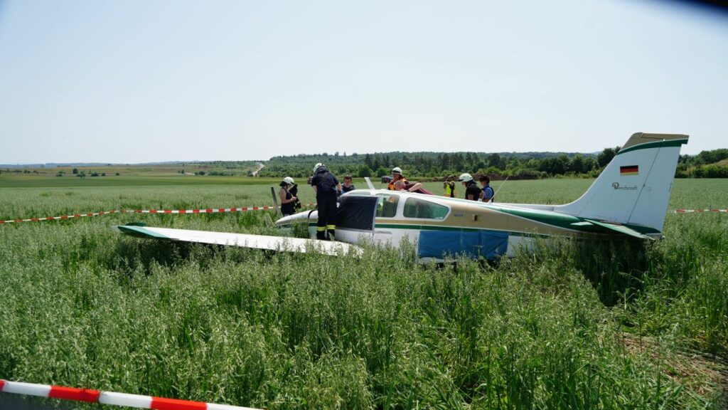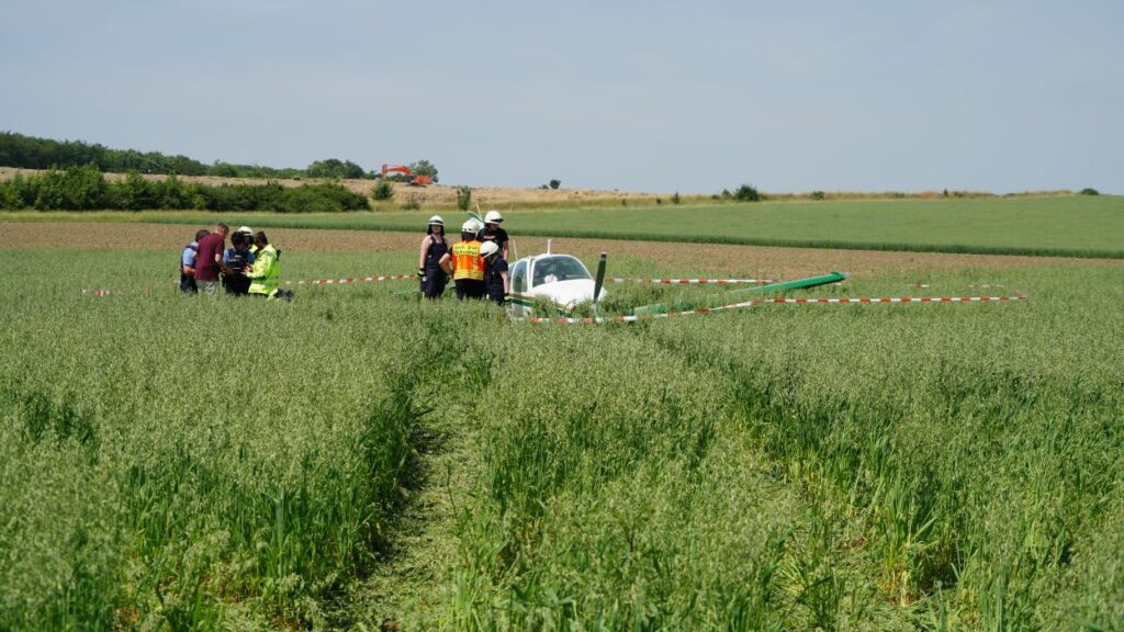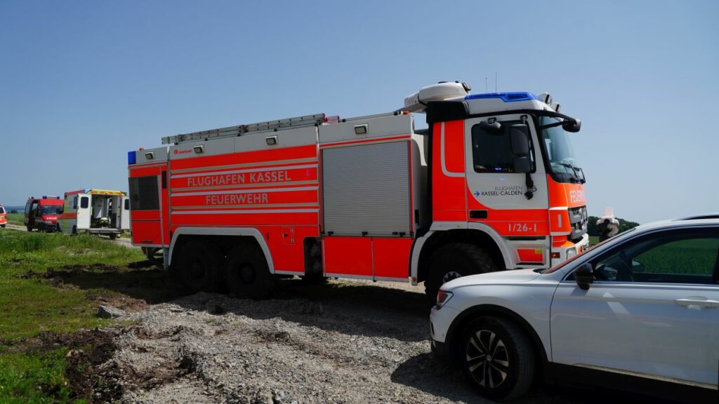 Grebenstein – Am Samstagvormittag gegen 12 Uhr wurde die Leitstelle des Polizeipräsidiums Nordhessen über den Absturz eines Kleinflugzeugs in der Nähe des Kassel Airports (Calden) informiert. Wie die Polizei Hofgeismar mitteilt, handelte es sich um eine viersitzige Maschine, die vom hessischen Egelsbach gestartet war und Kurs auf den Flughafen Kassel nahm. Während des Anflugs kam es offenbar zu technischen Problemen, woraufhin der 80-jährige Pilot eine Notlandung auf einem Feld nahe der B 7 einleitete. Dabei wurden er sowie seine 76-jährige Ehefrau schwer verletzt. Lebensgefahr bestand laut ersten Informationen jedoch nicht. Beide Verletzten wurden nach der Erstversorgung jeweils mit einem Rettungswagen und dem Rettungshubschrauber „Christoph 7“ – in ein Krankenhaus nach Kassel gebracht. Weitere Personen befanden sich nicht an Bord. Die Maschine wurde bei der Notlandung schwer beschädigt. Die Bundesstelle für Flugunfalluntersuchung (BFU) hat das Flugzeug inzwischen freigegeben. Eine Bergung und der Abtransport stehen bevor. Die genaue Unfallursache ist derzeit noch unklar und Gegenstand weiterer Ermittlungen. Neben der Polizei waren auch die Feuerwehr Grebenstein, die Flughafenfeuerwehr sowie der Rettungsdienst im Einsatz. Gegen 13:30 Uhr wurde der Einsatz vor Ort beendet.