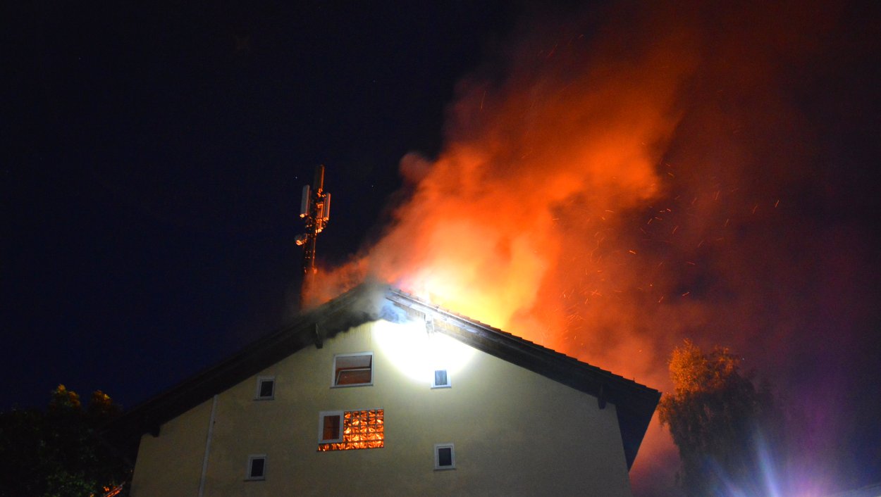 Beim Eintreffen der ersten Einsatzkräfte stand der Dachstuhl bereits in Vollbrand. Unklar war zunächst, ob sich noch Personen im Gebäude befanden. Die Feuerwehr begann die Brandbekämpfung mit einem Außenangriff über die Drehleiter. Anschließend gingen mehrere Trupps unter Atemschutz auch im Innenangriff gegen die Flammen vor. Nach Angaben der Einsatzleitung wurden durch das Feuer fünf Zimmer sowie große Teile des Dachstuhls zerstört. Zusätzlich kam es durch den massiven Löscheinsatz zu Wasserschäden im Gebäude. Der entstandene Sachschaden wird auf rund 100.000 Euro geschätzt. Verletzt wurde niemand.