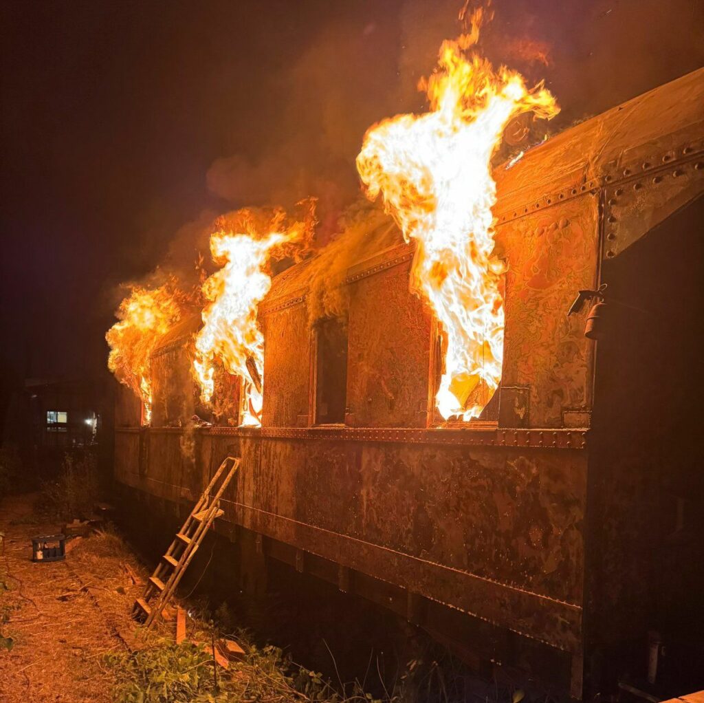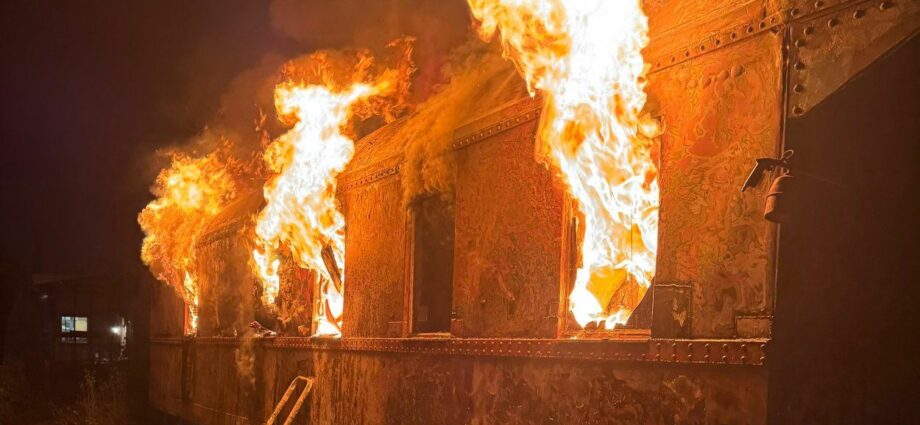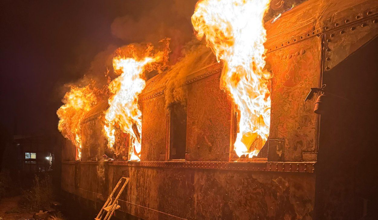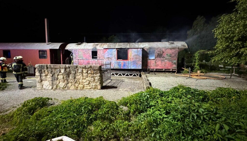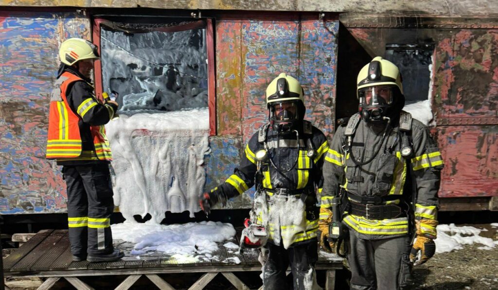 Kaufungen – In der Nacht auf Sonntag wurde die Feuerwehr Kaufungen gegen 23:40 Uhr mit dem Alarmstichwort „FZUG“ zum Bahnhof Oberkaufungen gerufen. Beim Eintreffen der ersten Einsatzkräfte stand ein alter Bahnwaggon auf ein Abstellgleis in Vollbrand. Dank des schnellen Handelns der Feuerwehr konnte ein direkt daneben stehender weiterer Waggon durch eine sogenannte Riegelstellung vor den Flammen geschützt werden. Die betroffenen Waggons gehören zu der dortigen Event Location. Das Feuer konnte zügig unter Kontrolle gebracht werden. Um verbliebene Glutnester endgültig zu löschen, wurde der brennende Waggon vollständig mit Löschschaum geflutet. Während des Einsatzes musste der parallel verlaufende Straßenbahnverkehr vollständig gesperrt werden. Zur Unterstützung wurde zudem die Hygienekomponente der Feuerwehr Helsa-Eschenstruth nachalarmiert. Nach rund zwei Stunden war der Einsatz für die insgesamt 35 Feuerwehrkräfte beendet. Die Brandursache ist bislang unklar. Die Polizei hat die Ermittlungen aufgenommen.