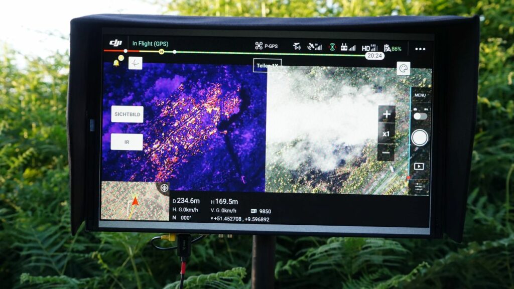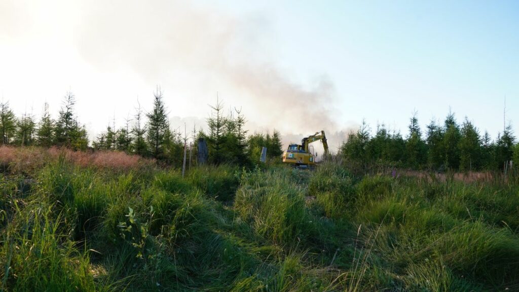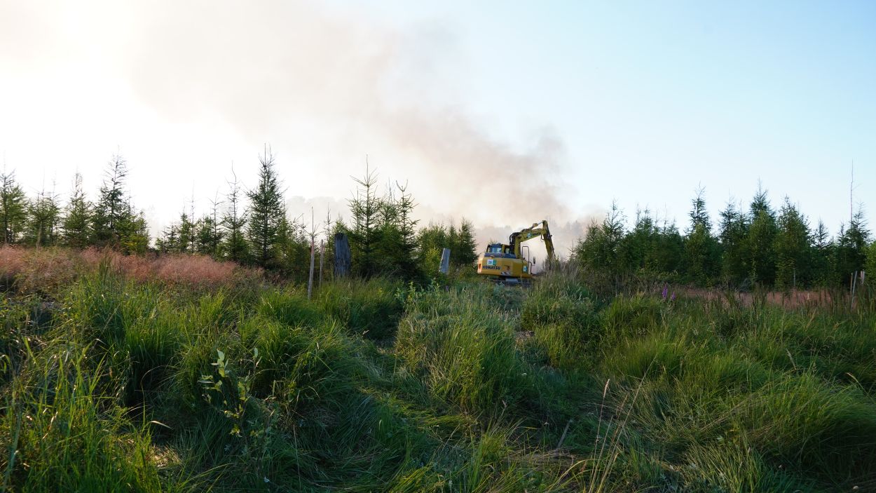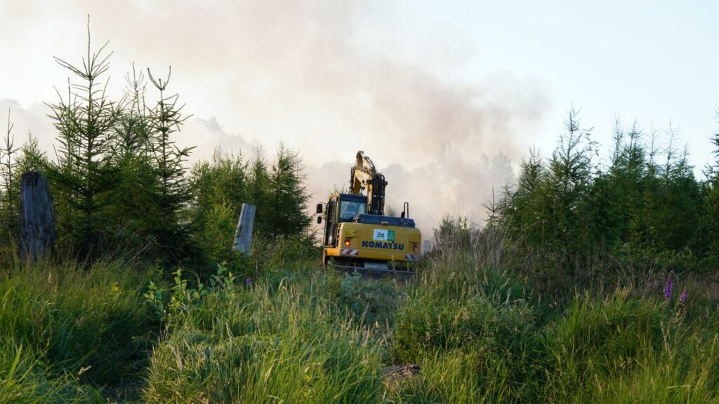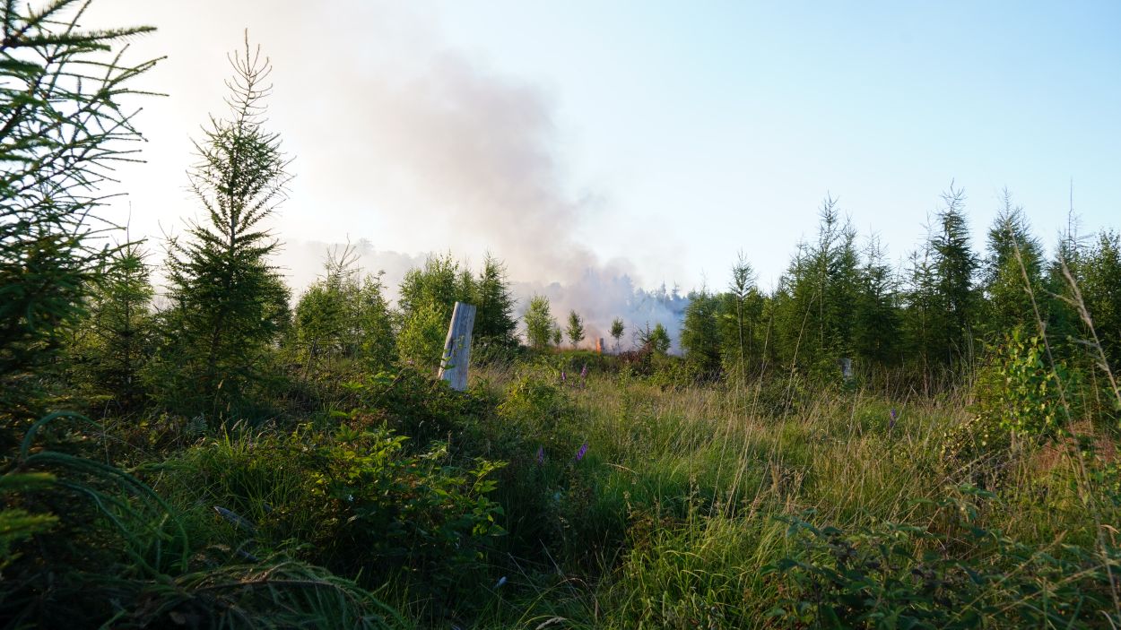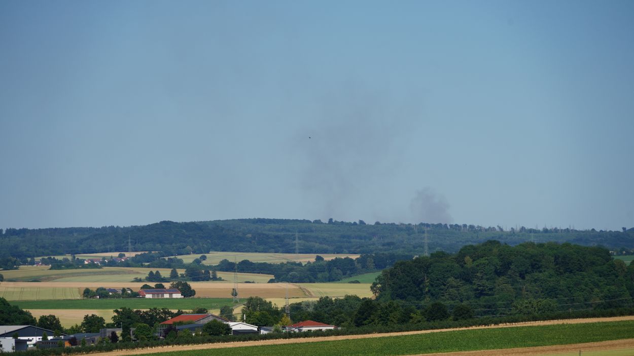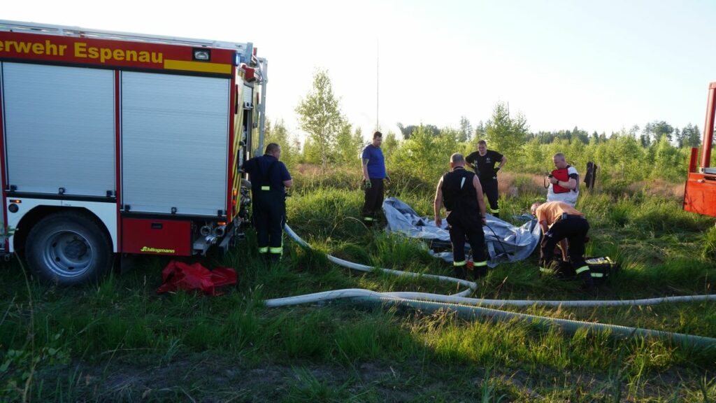 Am Abend wurde zusätzlich ein Löschhubschrauber von der Landespolizei aus Egelsbach (Südhessen) angefordert. Mit einem sogenannten Bambi-Bucket entnahm er Wasser aus der nahegelegenen Fulda bei Wilhelmshausen und warf es gezielt über die Brandfläche ab. Auch der Wasserversorgungzug der Kreisfeuerwehrbereitschaft Göttingen sowie die GFFF-V Einheit aus den Landkreisen Göttingen und Goslar (Niedersachsen) kamen zum Einsatz. Der Brandschutzaufsichtsdienst des Landkreis Kassel überwachte die Einsatzstelle. Die Löscharbeiten gestalteten sich als äußerst schwierig: Die Brandstelle lag etwa 80 Meter abseits geschotterter Wege, zudem erschwerten Temperaturen jenseits der 30 Grad die Arbeiten erheblich. Auch HessenForst war vor Ort und unterstützte die Feuerwehr mit wertvoller Ortskenntnis, um die Einsatzkräfte schnell zur Brandstelle zu lotsen. Erst tief in der Nacht konnten die Flammen unter Kontrolle gebracht werden. Um letzte Glutnester wirksam zu bekämpfen, wurde dem Löschwasser ein Netzmittel (Schaum) zugesetzt. Die Brandursache ist derzeit noch unklar – die Polizei hat die Ermittlungen aufgenommen.