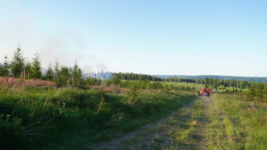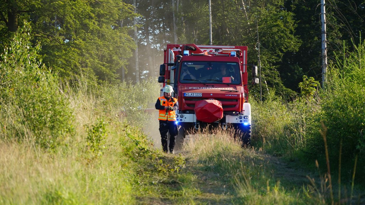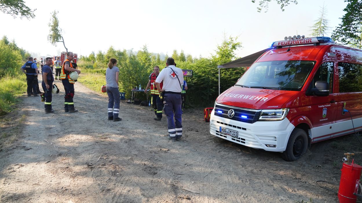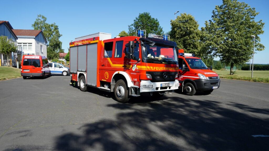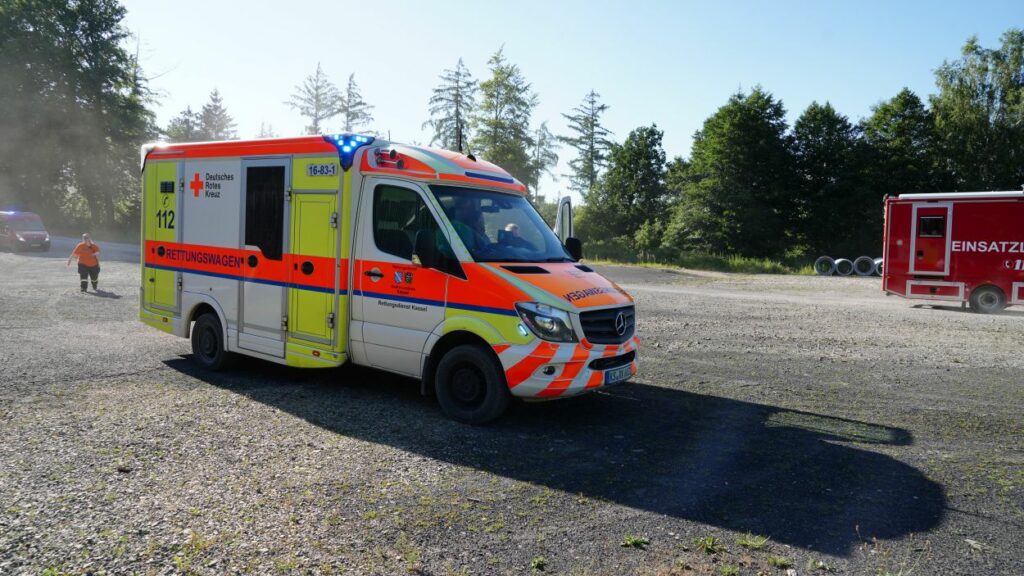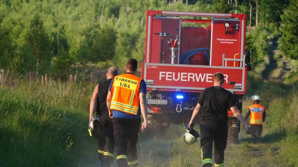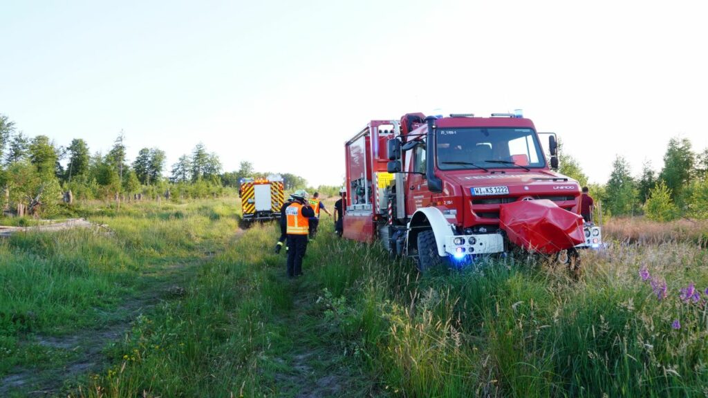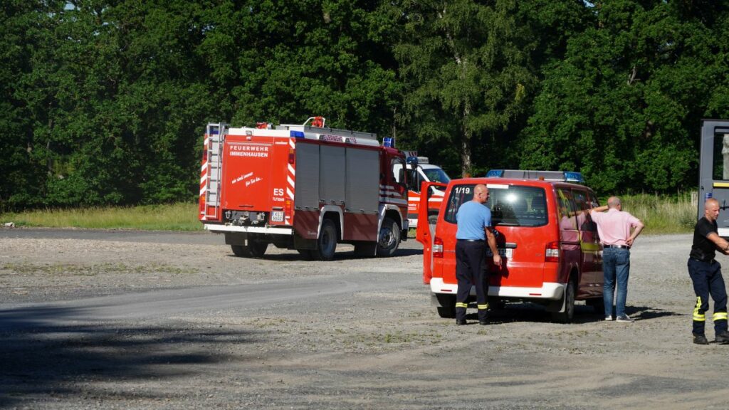 Immenhausen – Am Dienstagnachmittag kam es im Reinhardswald bei Immenhausen zu einem größeren Wald- bzw. Vegetationsbrand. Gegen 16:40 Uhr wurden die ersten Einsatzkräfte mit dem Alarmstichwort „FWald 2“ in den Bereich Gahrenberg alarmiert. Beim Eintreffen der Feuerwehr stand eine Fläche von etwa 80 mal 100 Metern in Brand. Im Verlauf des Einsatzes breitete sich das Feuer auf rund 12.000 Quadratmeter (150×80 Meter) aus. Durch den schnellen und koordinierten Einsatz zahlreicher Kräfte konnte eine weitere Ausbreitung jedoch erfolgreich verhindert werden. Mit Hilfe eines Baggers wurde eine Schneise in den Waldboden gezogen, um das Feuer einzudämmen. Um die Wasserversorgung in dem abgelegenen Gebiet sicherzustellen, wurde ein Pendelverkehr mit Tanklöschfahrzeugen eingerichtet. Unterstützt wurden die örtlichen Wehren dabei auch durch ein Flugfeldlöschfahrzeug (FLF) der Flughafenfeuerwehr Kassel-Airport sowie durch Landwirte, die ihre Tankanhänger zur Verfügung stellten.