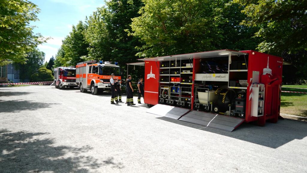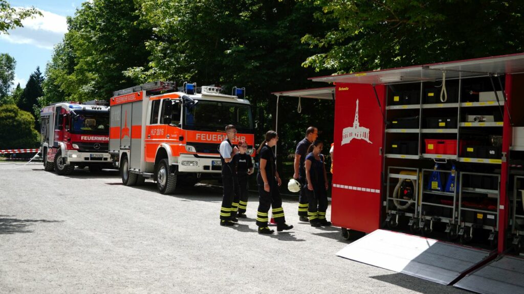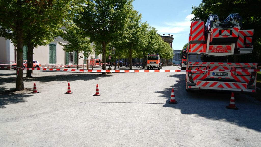 Kassel – Großeinsatz am Freitag für die Feuerwehr am Schloss Wilhelmshöhe: Seit 10:40 Uhr waren rund 80 Einsatzkräfte vor Ort, nachdem in einem Archiv des Museums Hessen Kassel Heritage (HKH) giftige Gase festgestellt wurden. Die Ursache: Alte Zelluloid-Filmrollen aus den 1950er-Jahren hatten sich durch die hohen Temperaturen der letzten Tage zersetzt. Zelluloid, ein früher zur Filmherstellung genutzter, leicht entzündlicher Kunststoff, setzt beim Zerfall giftige Dämpfe frei und kann sich selbst entzünden – mit hoher Brandgefahr. Deshalb wurde der Kirchflügel des Schlosses evakuiert, in dem sich das Archiv befindet. Der Museumsbetrieb im übrigen Schloss – etwa die Gemäldegalerie – blieben geöffnet.
