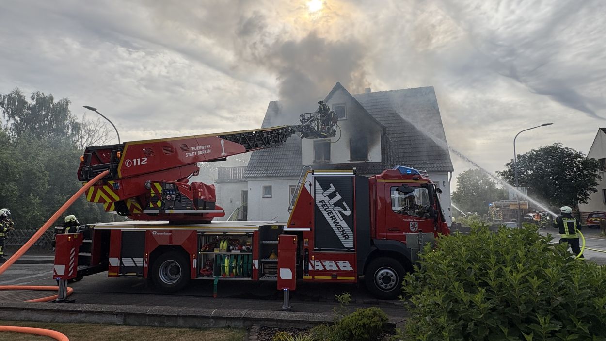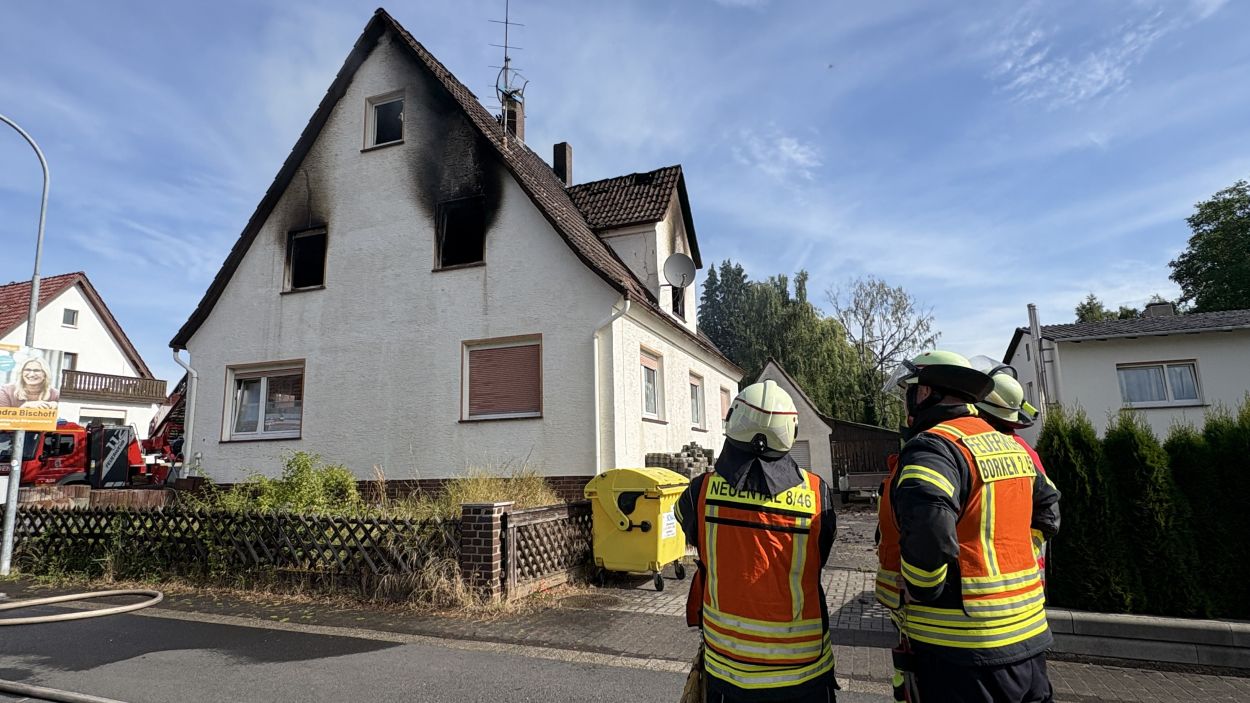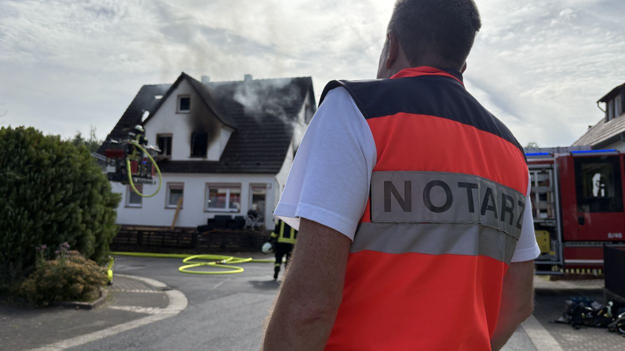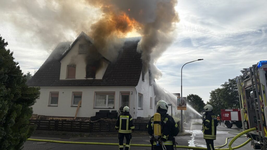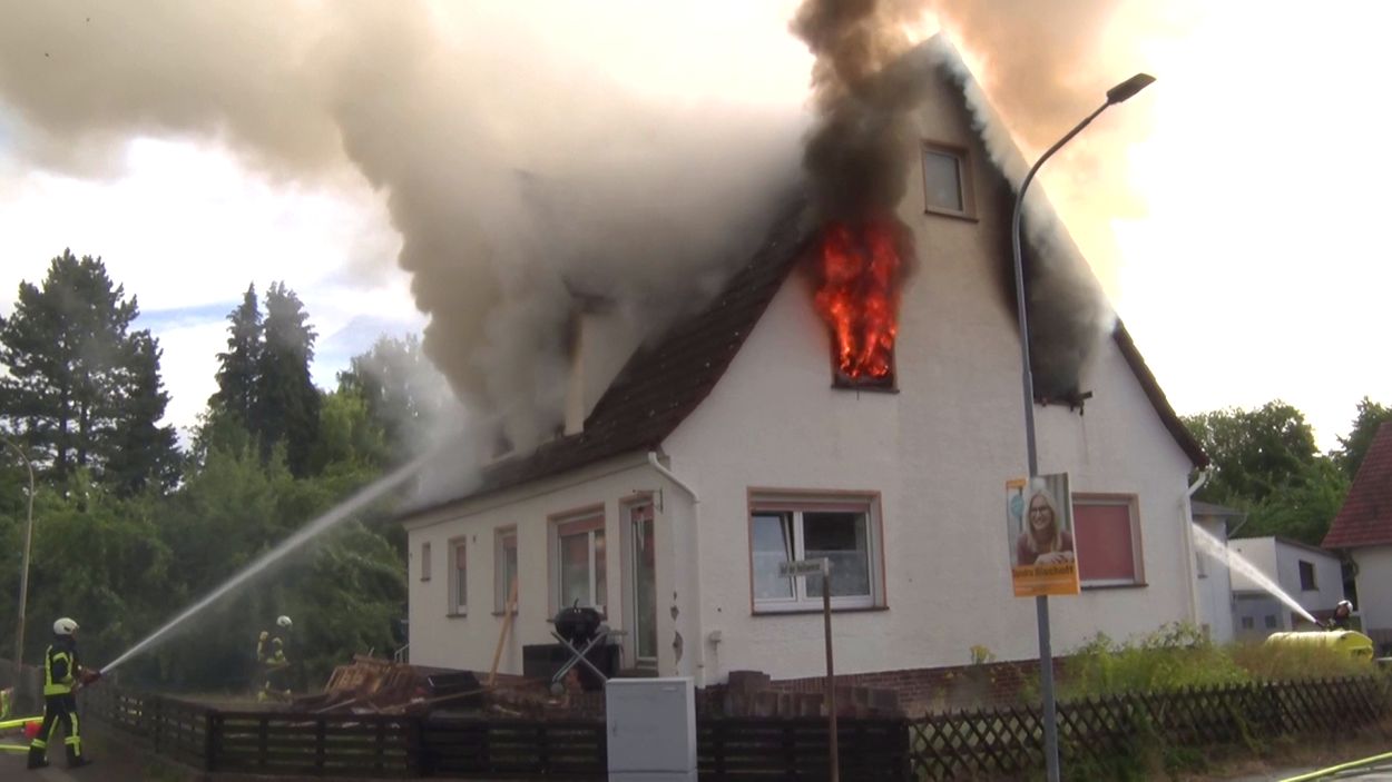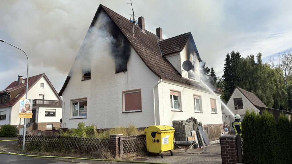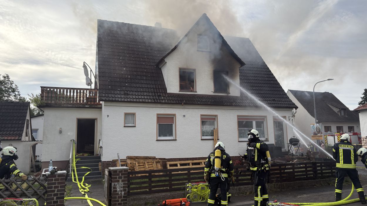 Neuental – Zu einem Wohnhausbrand mit zwei verletzten Person kam es am Samstag Vormittag in Zimmersrode in der Straße „Auf der Heilswiese“. Bei Eintreffen der ersten Einsatzkräfte schlugen bereits die Flammen aus den Fenstern des Obergeschosses. Die Rauchsäule war Kilometerweit zu sehen. Da für die Brandschützer zunächst ein Innenangriff nicht möglich war, gingen man mit fünf C-Strahlrohren von Außen durch die Fenster vor. Erst im Verlauf konnten im mInneren des Gebäudes alle Räume auf weitere Brandherde und Glutnester kontrolliert werden. Später wurde zudem mit Hilfe der Drehleiter das Dach geöffnet und die Löschmaßnahmen intensiviert. Die anfänglichen Schwierigkeiten mit dem Aufbau der Löschwasserversorgung konnte schnell abgestellt werden. In dem Bereich der Einsatzstelle standen mehrere Hydranten zur Verfügung und nach kurzer Zeit waren über 60 Einsatzkräfte der Neuentaler Wehren vor Ort.