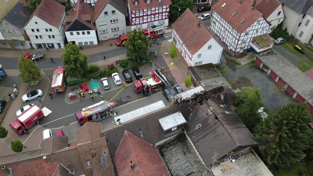 Bei einem Wohnhausbrand in der Altstadt von Borken wurden am späten Freitagvormittag insgesamt sechs Menschen verletzt, darunter zwei Kinder. Das Feuer brach aus bislang ungeklärter Ursache im Dachgeschoss des Gebäudes aus.