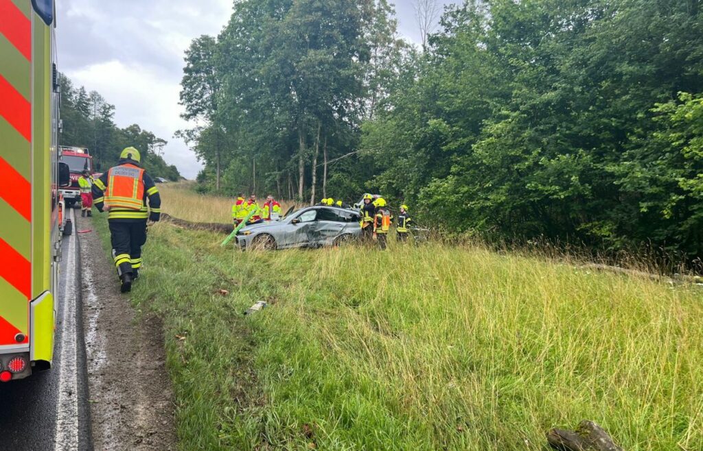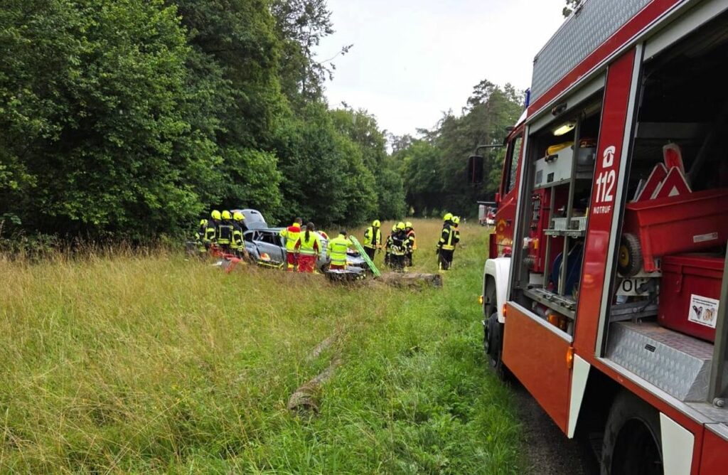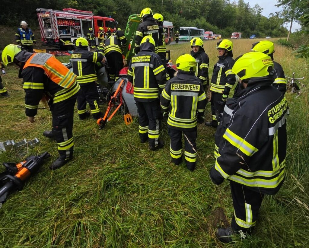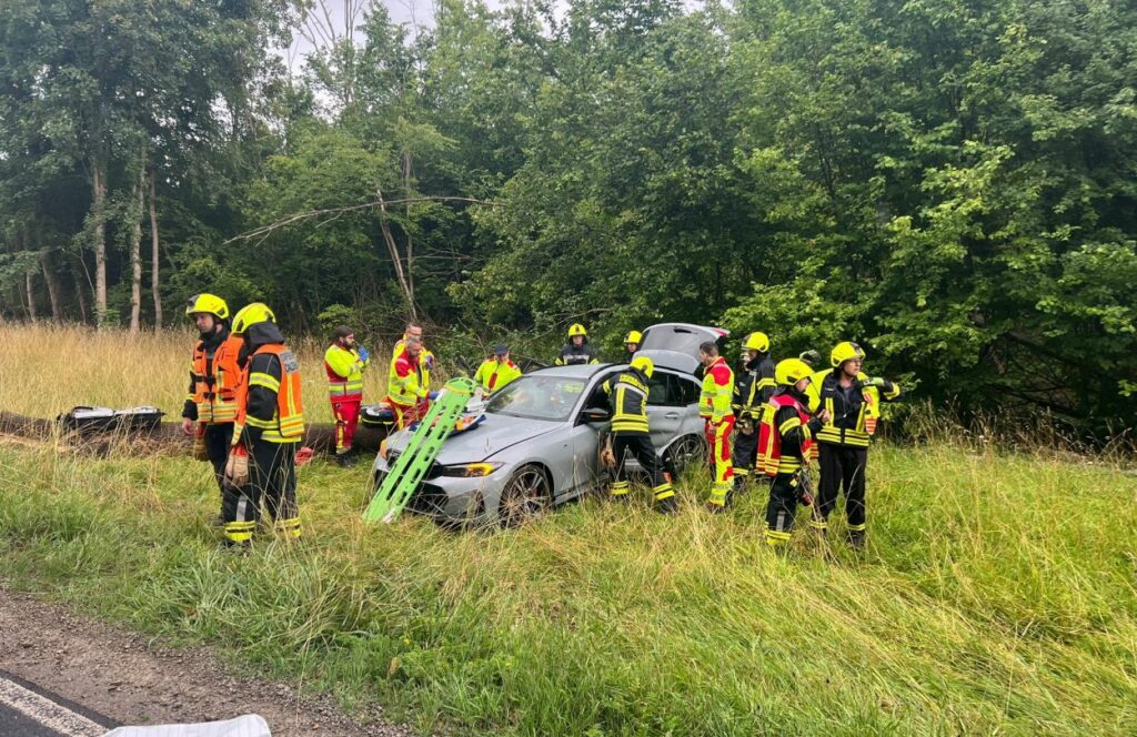 Calden – Am Samstagnachmittag kam es gegen 17:10 Uhr auf der Kreisstraße 32 zwischen Meimbressen und der Bundesstraße 7 zu einem schweren Verkehrsunfall. Ein BMW M340i mit Mild-Hybrid-Antrieb kam aus bislang ungeklärter Ursache alleinbeteiligt nach rechts von der Fahrbahn ab und prallte gegen mehrere am Straßenrand gelagerte Baumstämme. Durch die Wucht des Aufpralls wurde die Fahrerseite des Fahrzeugs massiv deformiert, wodurch der Fahrer im Bereich der Hüfte und Beine eingeklemmt wurde. In enger Abstimmung mit dem Rettungsdienst leitete die Feuerwehr der Gemeinde Calden eine patientenschonende Rettung ein.