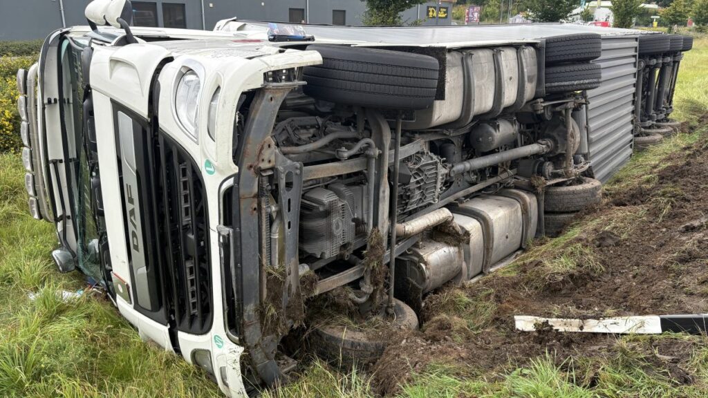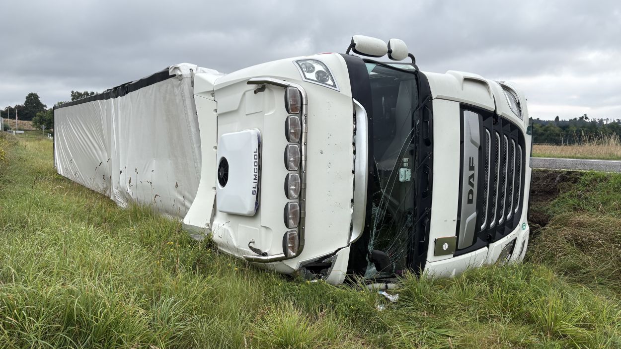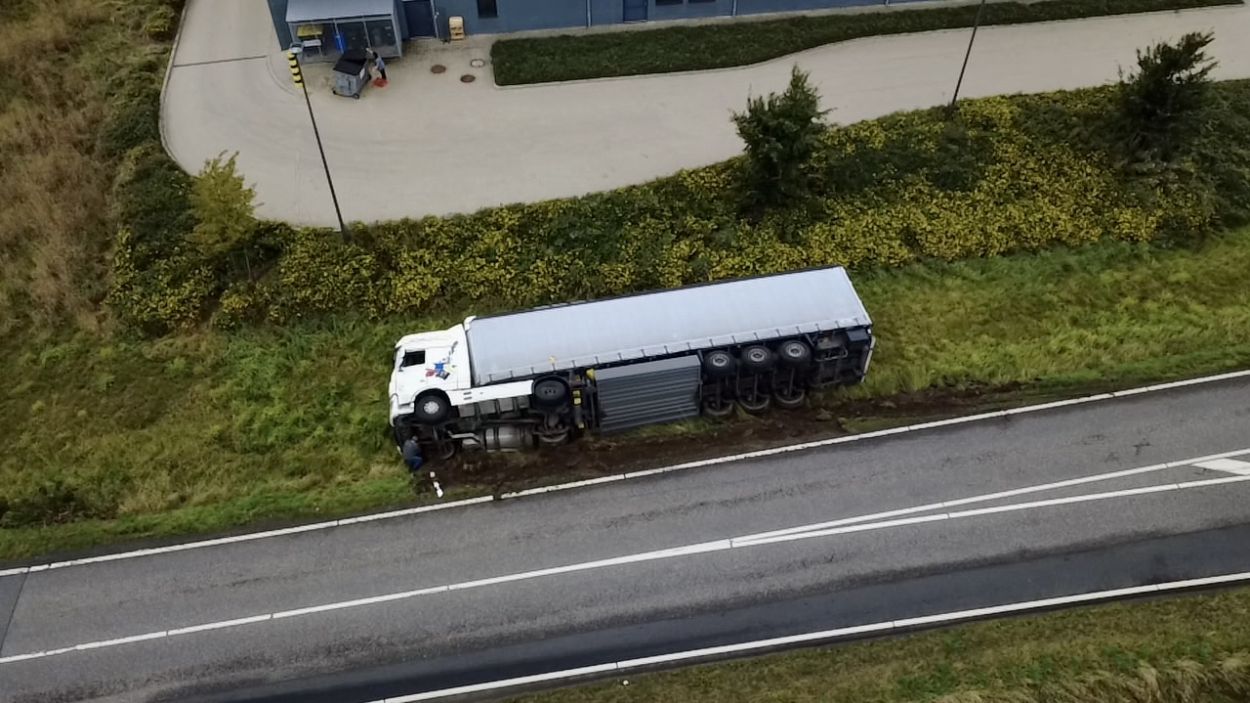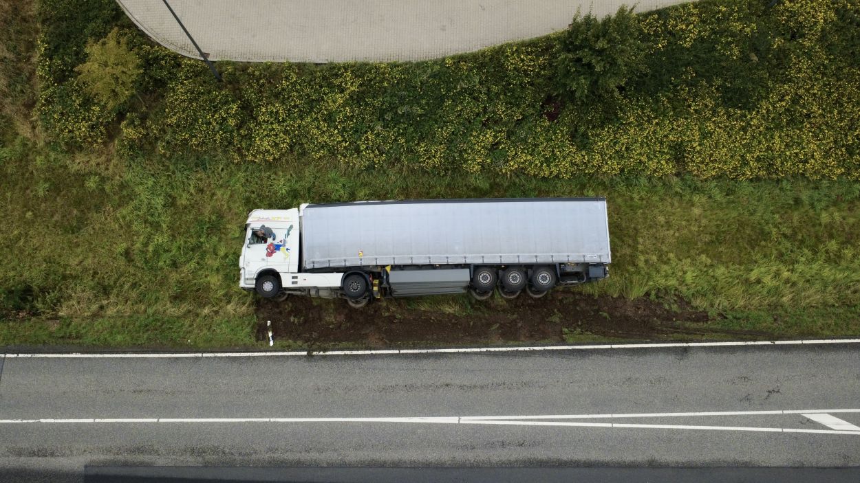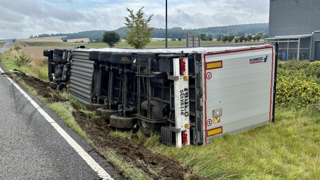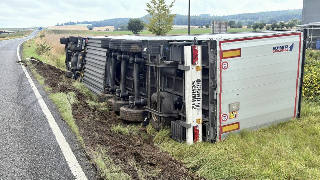 Neuental – In Neuental Bischhausen geriet am Montagvormittag ein Sattelzug von der Fahrbahn ab und landete in Höhe des dortigen REWE Marktes im Straßengraben. Der Fahrer blieb glücklicherweise unverletzt. Beladen ist der LKW mit Papier. Eine Gefahr für die Umwelt besteht derzeit nicht. Der Fahrer eines ungarischen Sattelzuges befuhr zunächst die Landstraße von Bischhausen in Richtung A49, als er vermutlich aufgrund eines Fahrfehlers nach rechts auf die Bankette geriet. Der 57-jährige Fahrer schaffte es nicht sein tonnenschweres Gerät zurück auf die Fahrbahn zu steuern, so dass der gesamte Sattelzug einen kleinen Abhang hinunter rutschte und sich auf die Seite legte.